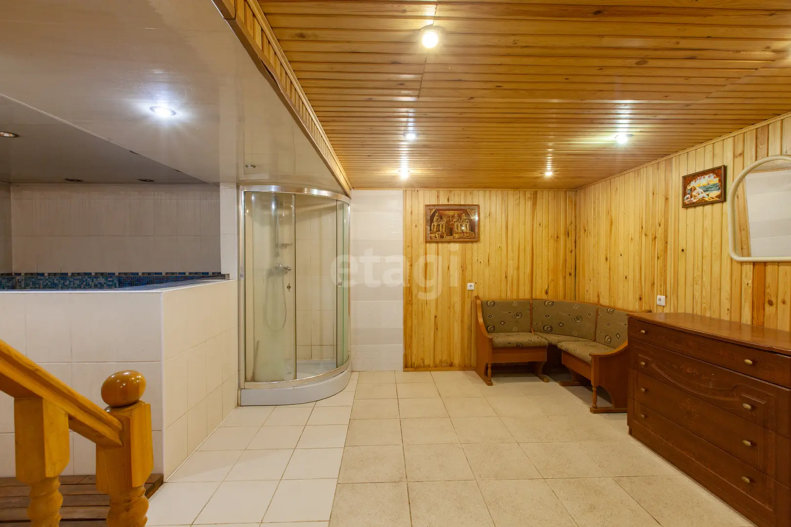 В холодные зимние вечера сможете согреться в бане, находящейся в цокольном этаже и искупнуться в бассейне, который находится здесь же.