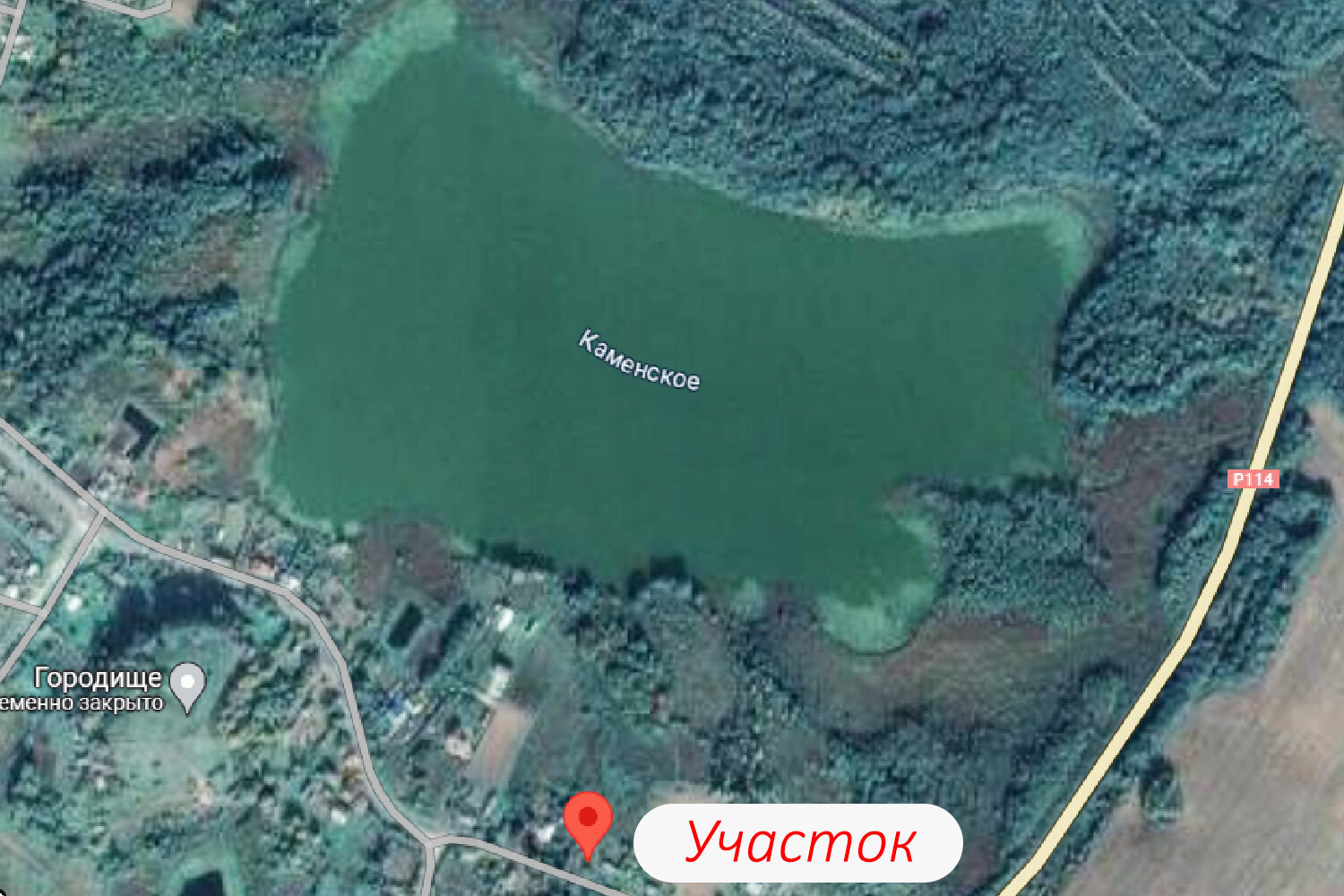 Участок 20 соток – первая береговая линия – до озера ≈ 350 м. Между участком и озером цветущий луг.