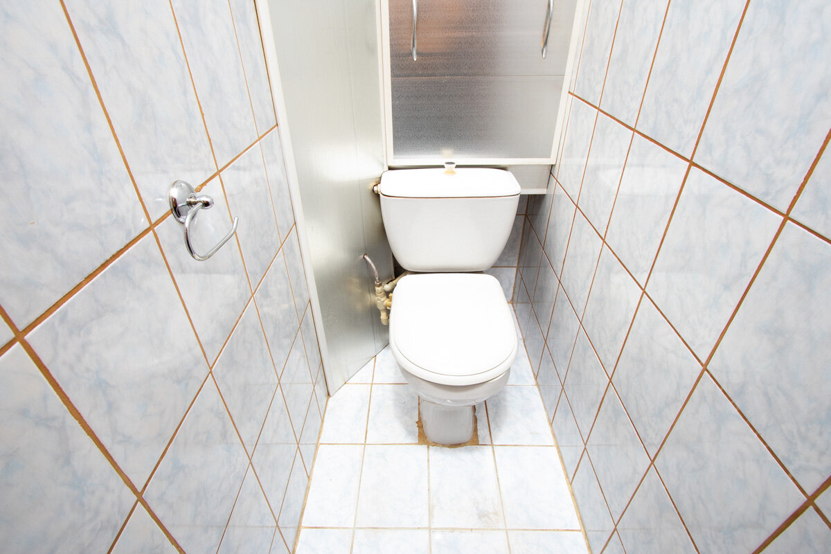 Санузел раздельный, облицован плиткой. Установлены счетчики воды.