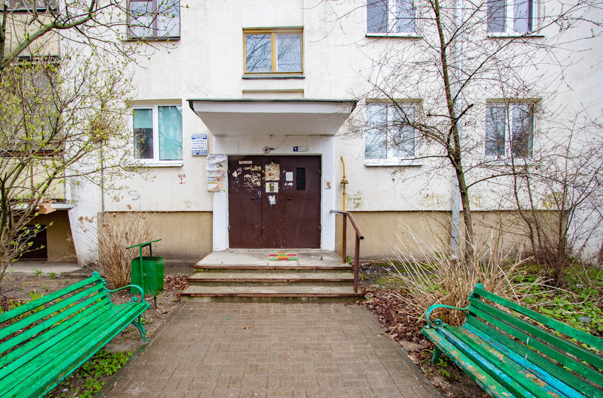 Вход в подъезд оборудован металлической дверью с домофоном.
