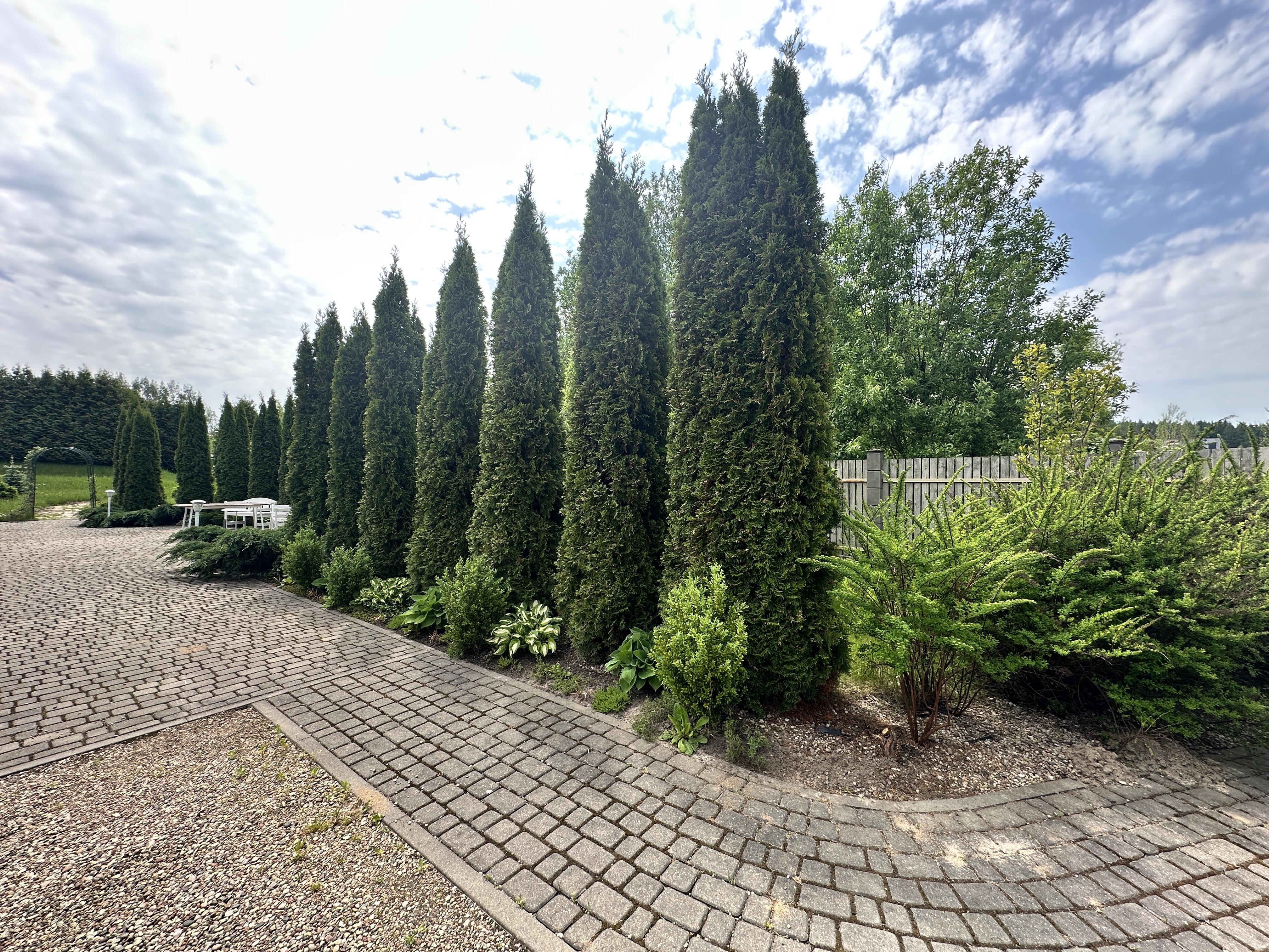 Большой, хороший, ровный ухоженный участок, огорожен, въездные ворота с электроприводом.