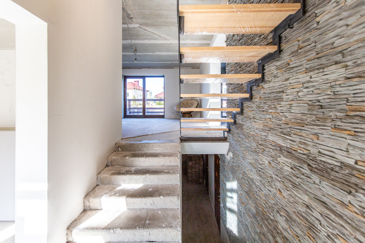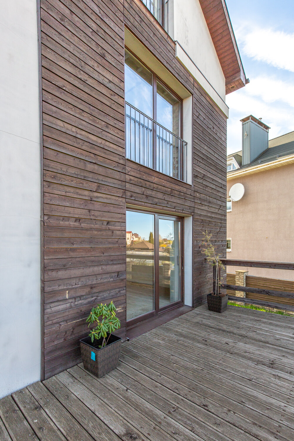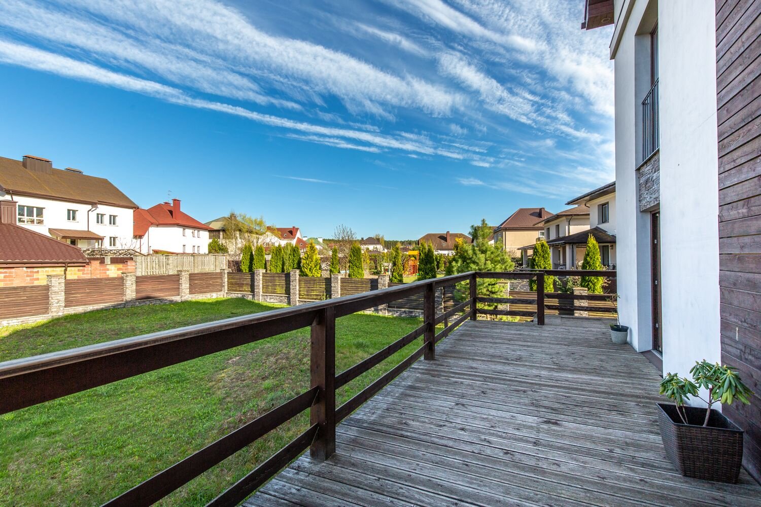 Современный проект, на каждом жилом этаже предусмотрен санузел. Высокие потолки и европейские окна в пол наполняют дом лёгкостью и светом. В строительстве и отделке использованы только экологически чистые материалы.