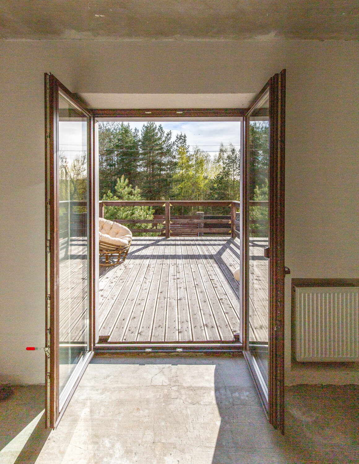 Первый жилой этаж состоит из кухни, гостиной, прихожей, санузла. Из каждой комнаты первого этажа можно выйти на роскошную террасу, которая окаймляет дом с трёх сторон, что позволит утром выпить на свежем воздухе чашку кофе или чая под пение птиц, а вечером, обсуждая проведённый день, готовить барбекю и наслаждаться закатом.