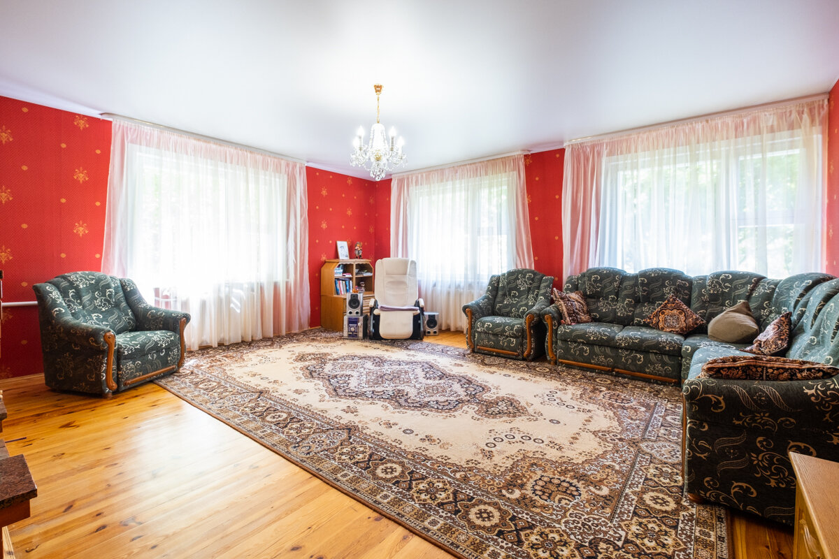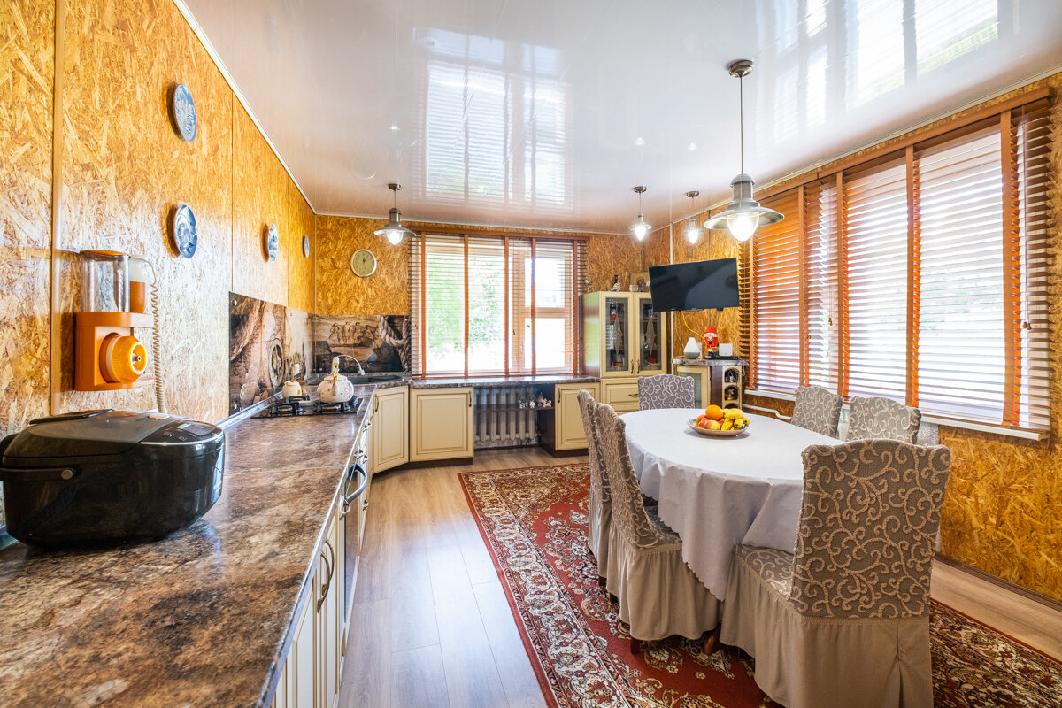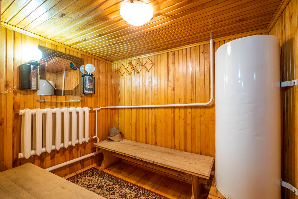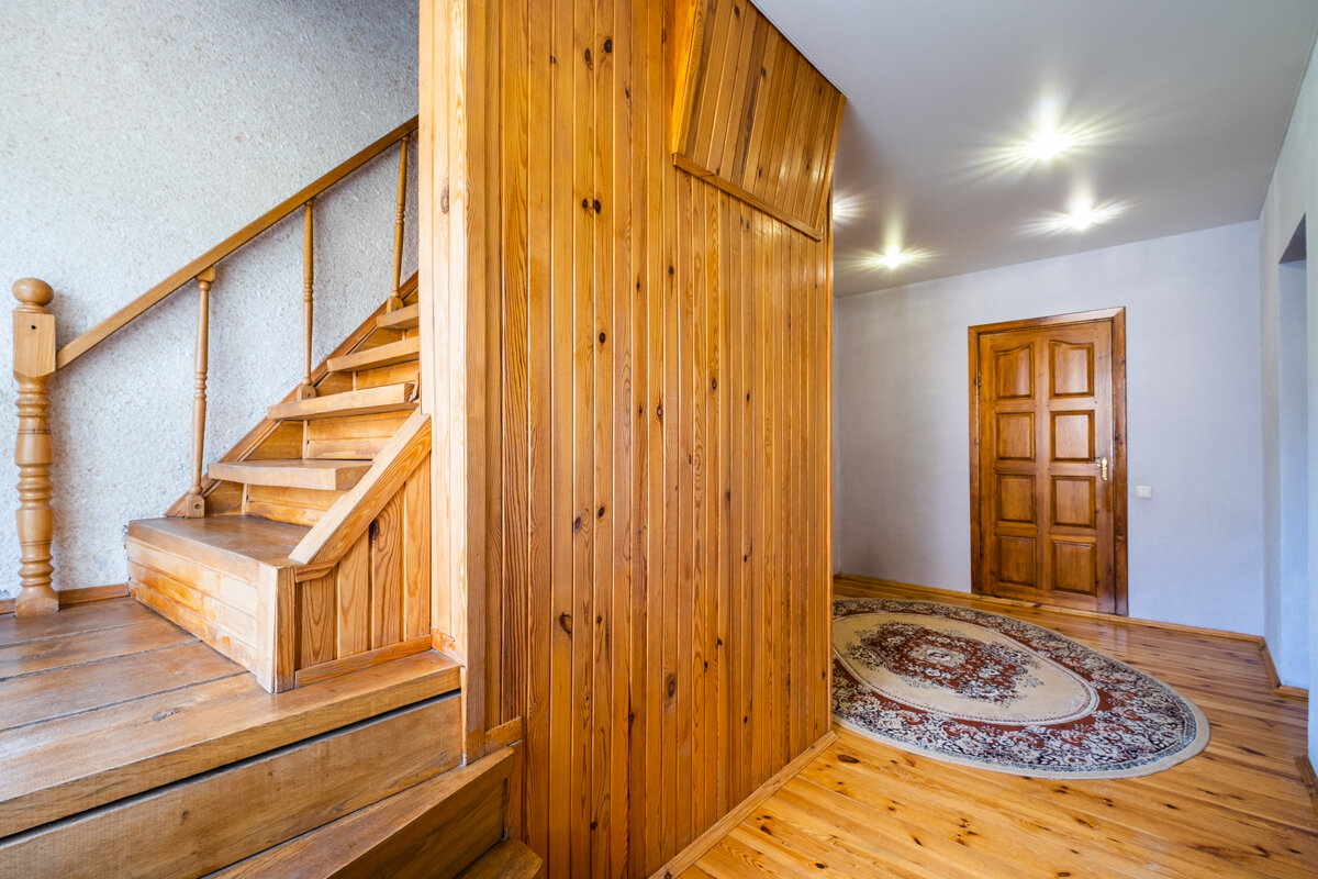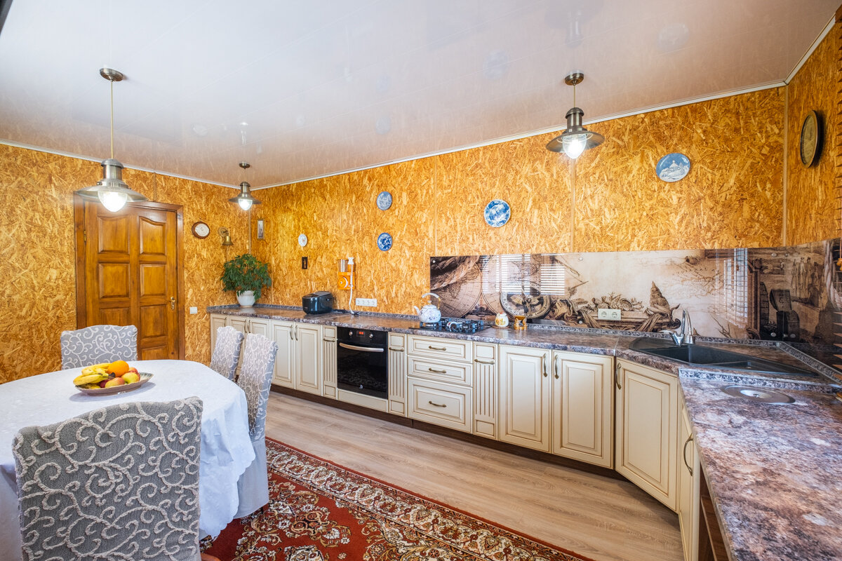 Общая площадь: 285 м2 – достаточно места для семьи и гостей. Строение: Качественный сруб, облицованный кирпичом, с утеплением для создания теплой атмосферы в любое время года. Интерьер: Внутри вас ждут 4 светлых спальни, просторная гостиная с камином, функциональная кухня (20 м2) и 3 санузла. Изящные дубовые лестницы и высококачественная мебель подчеркнут утончённость интерьера. Баня: Традиционная баня на дровах с дубовыми полками и отделкой из ольхи – идеальное место для восстановления сил. Дополнительное пространство: На цокольном этаже оборудован гараж, обеспечивающий дополнительное удобство. Современные коммуникации: