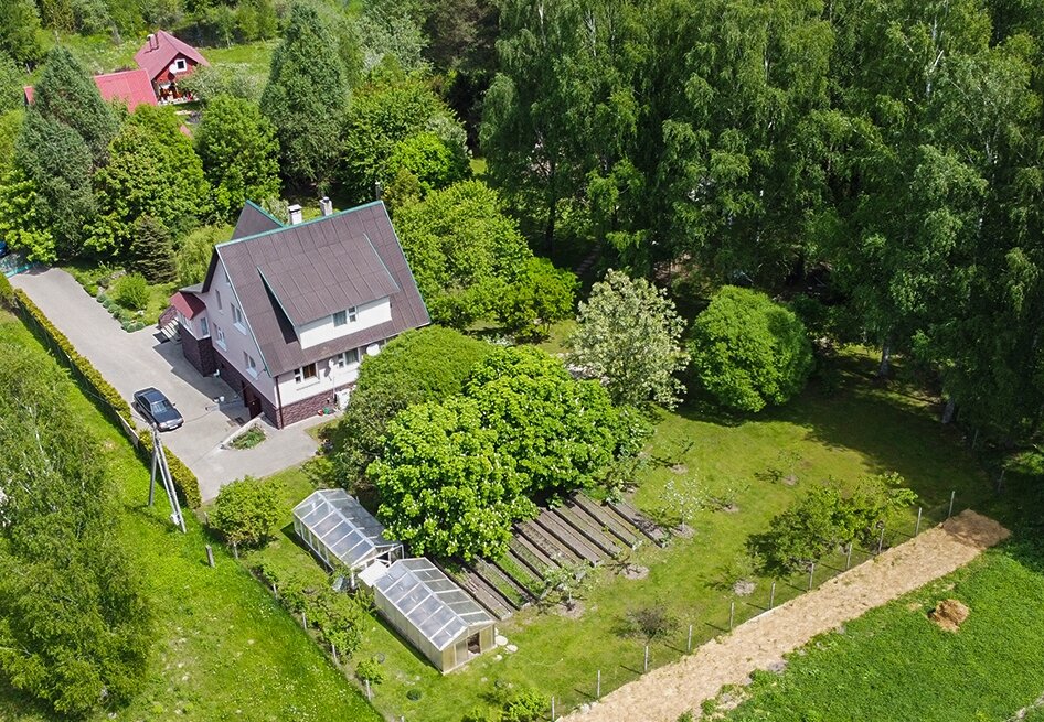 Площадь: 26 соток с перспективой увеличения до 52 соток. Ландшафт: Ухоженный, ровный и просторный участок с продуманным дизайном, украшенный разнообразными растениями. Строения и удобства на участке: Закрытый сарай с камином, погреб, две теплицы, фундамент под летний бассейн или иное строение, коптильня для холодного копчения, теплые грядки и сад. Природа: Дом окружен густым лесом, где можно собирать свежие грибы и ягоды, а также наслаждаться наблюдением за дикой природой. Удобное расположение и развитая инфраструктура: