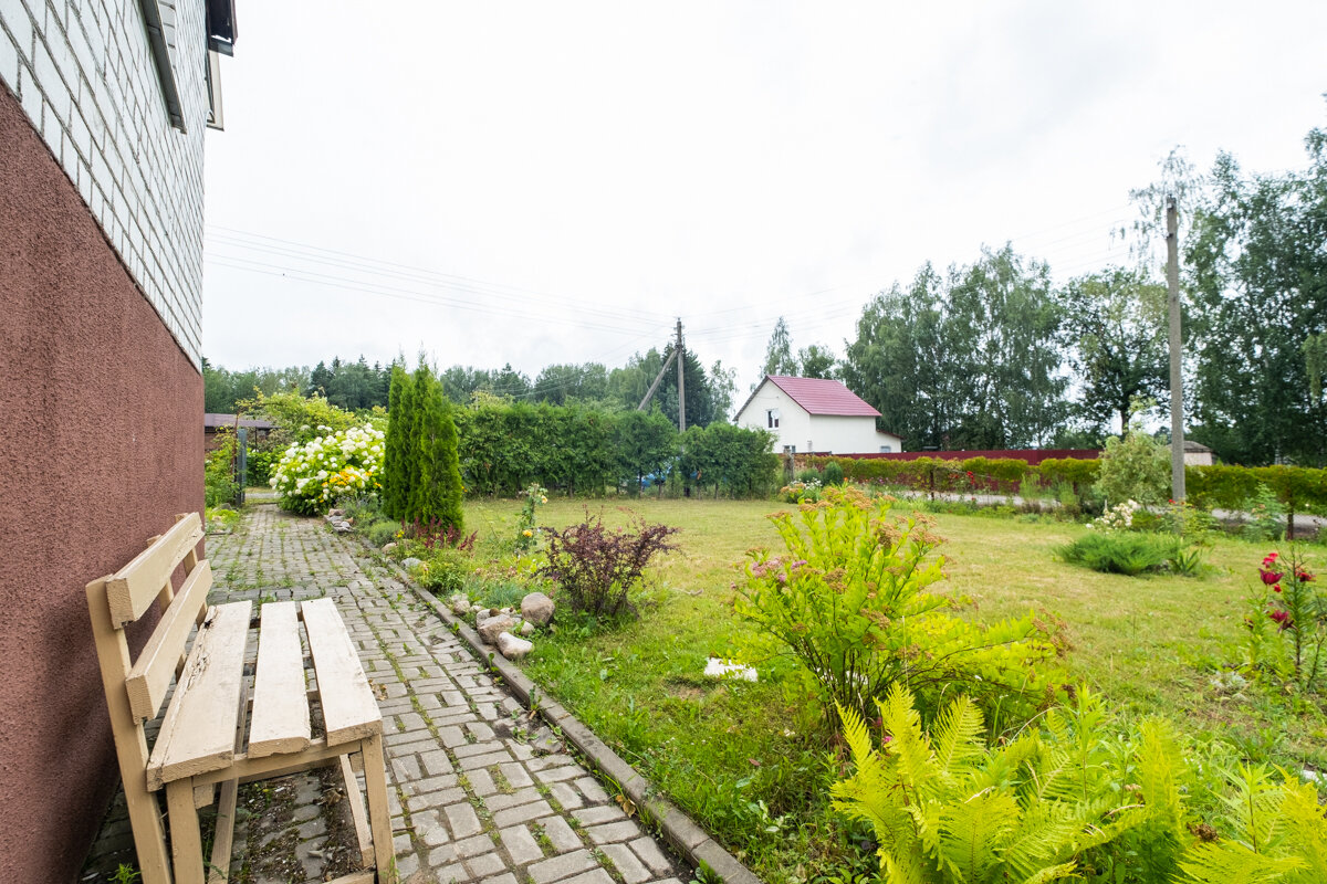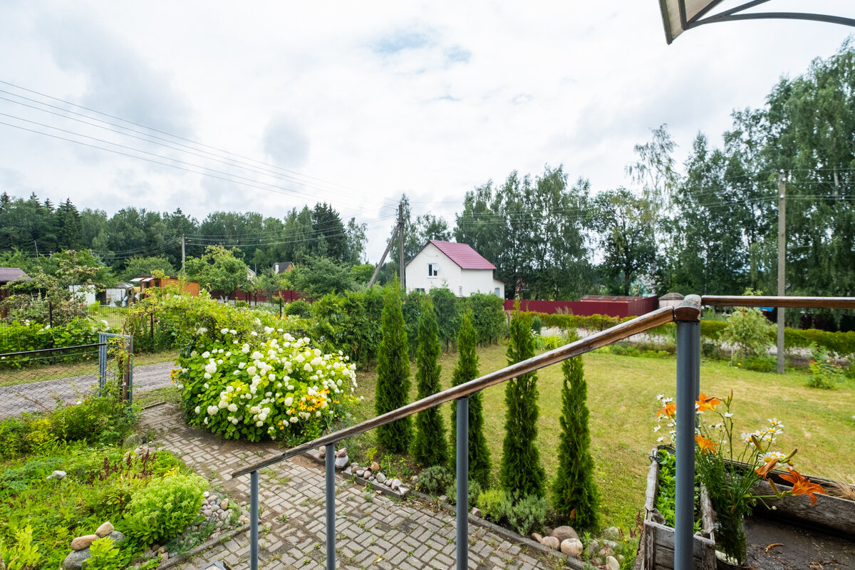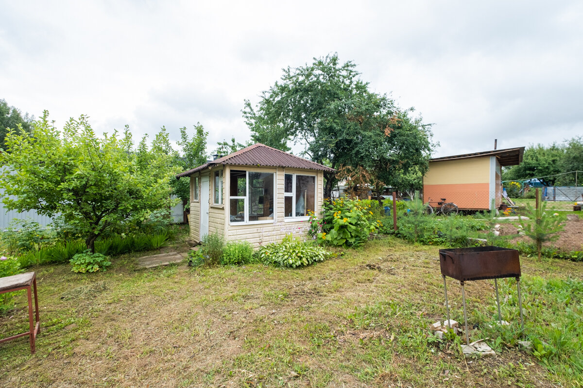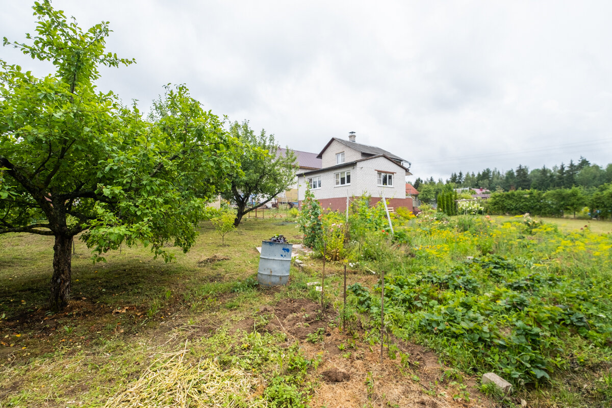 Дом расположен на просторном огороженном угловом участке площадью 10 соток в частной собственности, благодаря чему можно создать комфортную придомовую территорию. Здесь уже растут садовые деревья, есть розарий. На участке беседка, есть место для небольшого огорода. На территории участка также имеется хозяйственная постройка. Предусмотрена площадка для авто.