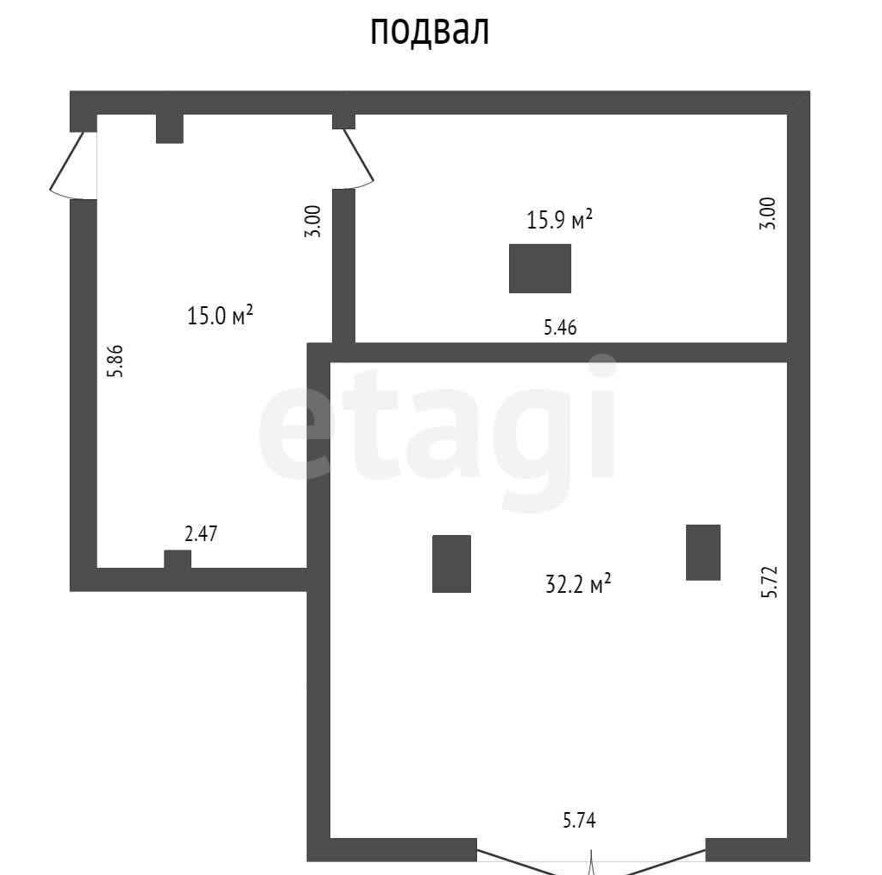 - На нижнем уровне расположен большой гараж (32 м2) и подвальные помещения (15 и 16 м2.)