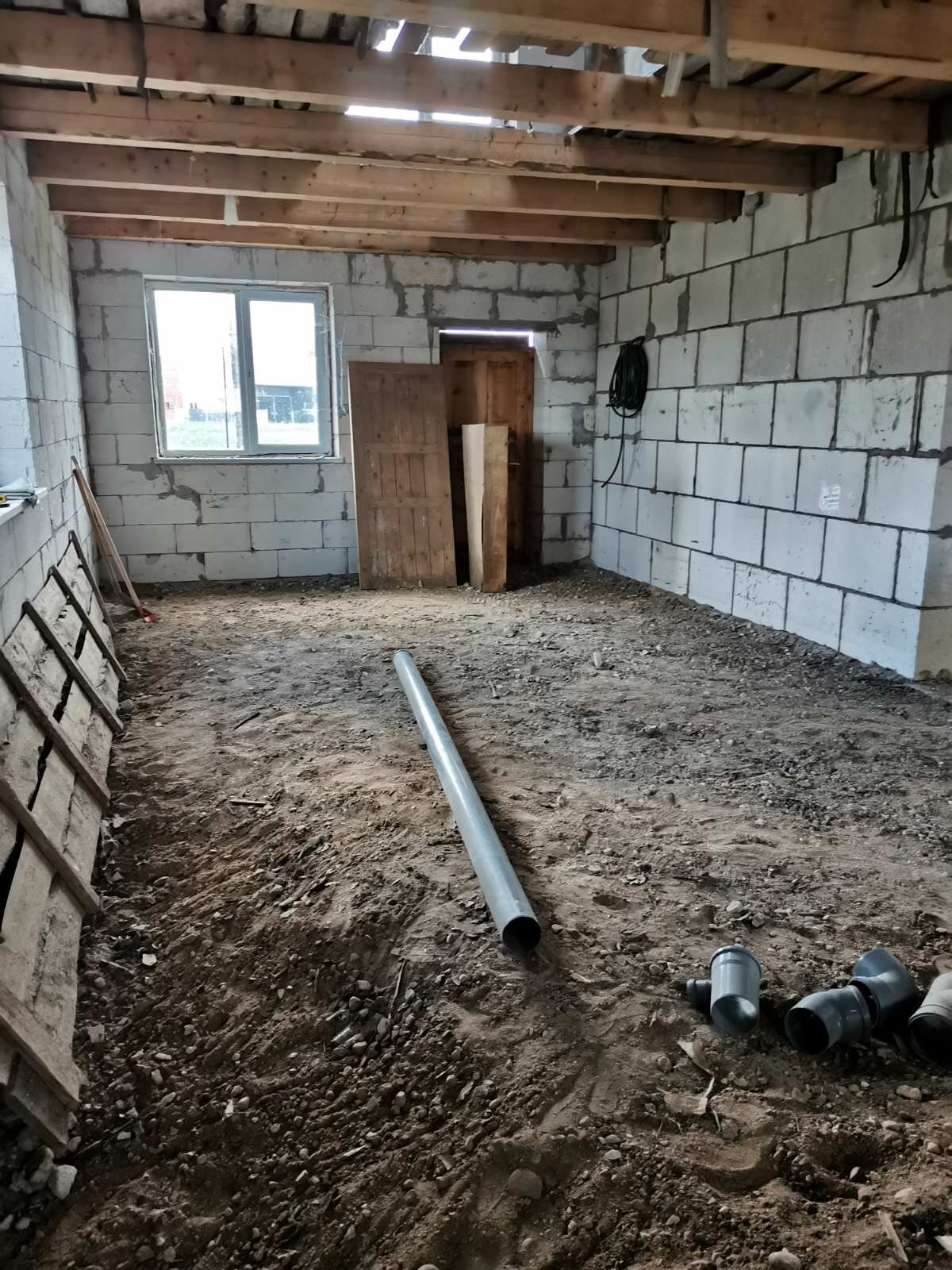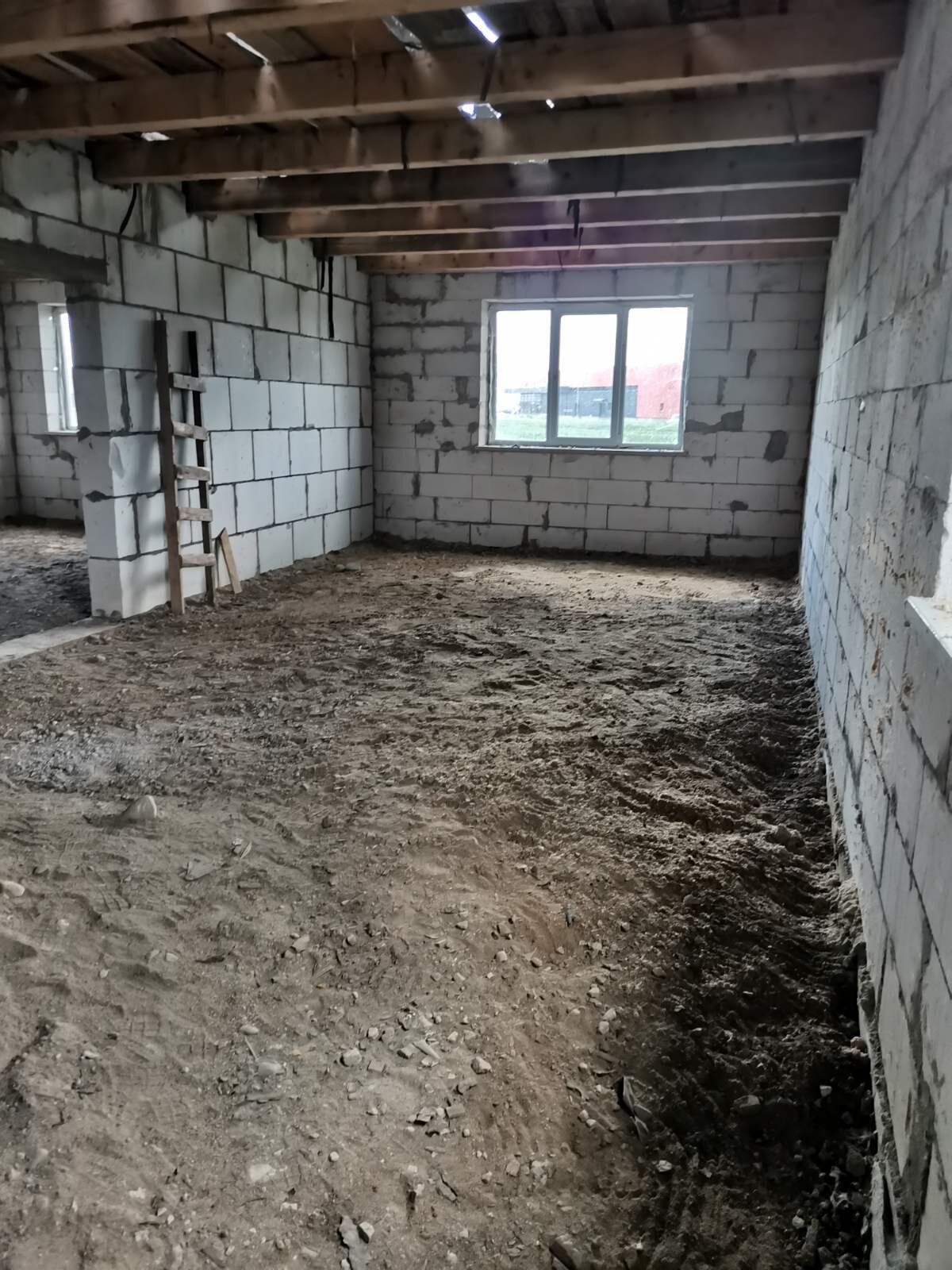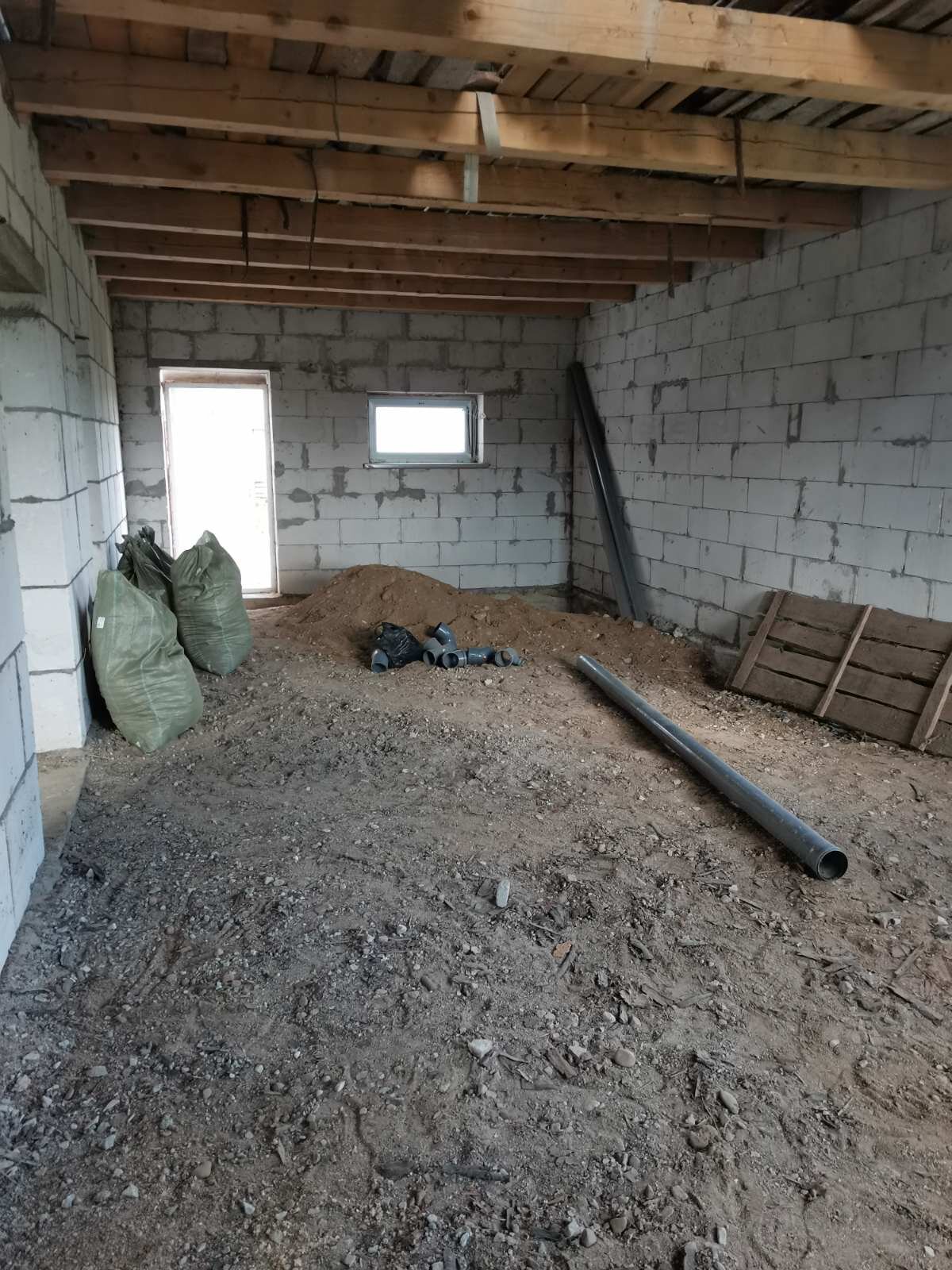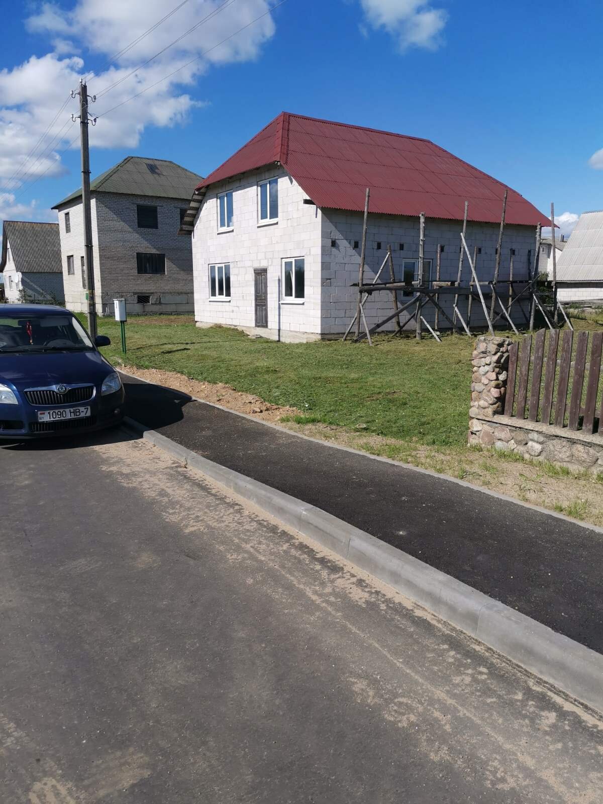 Материал стен - газосиликатные блоки, перекрытия - деревянные балки, крыша - ондулин. Большой мансардный этаж.