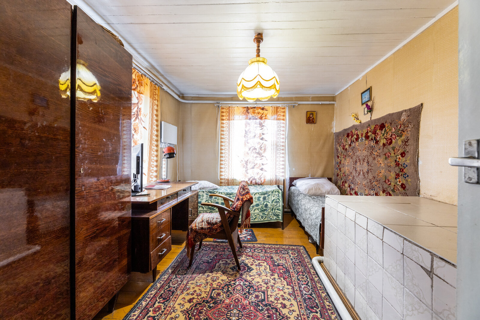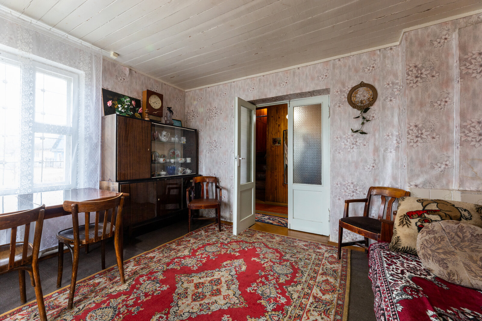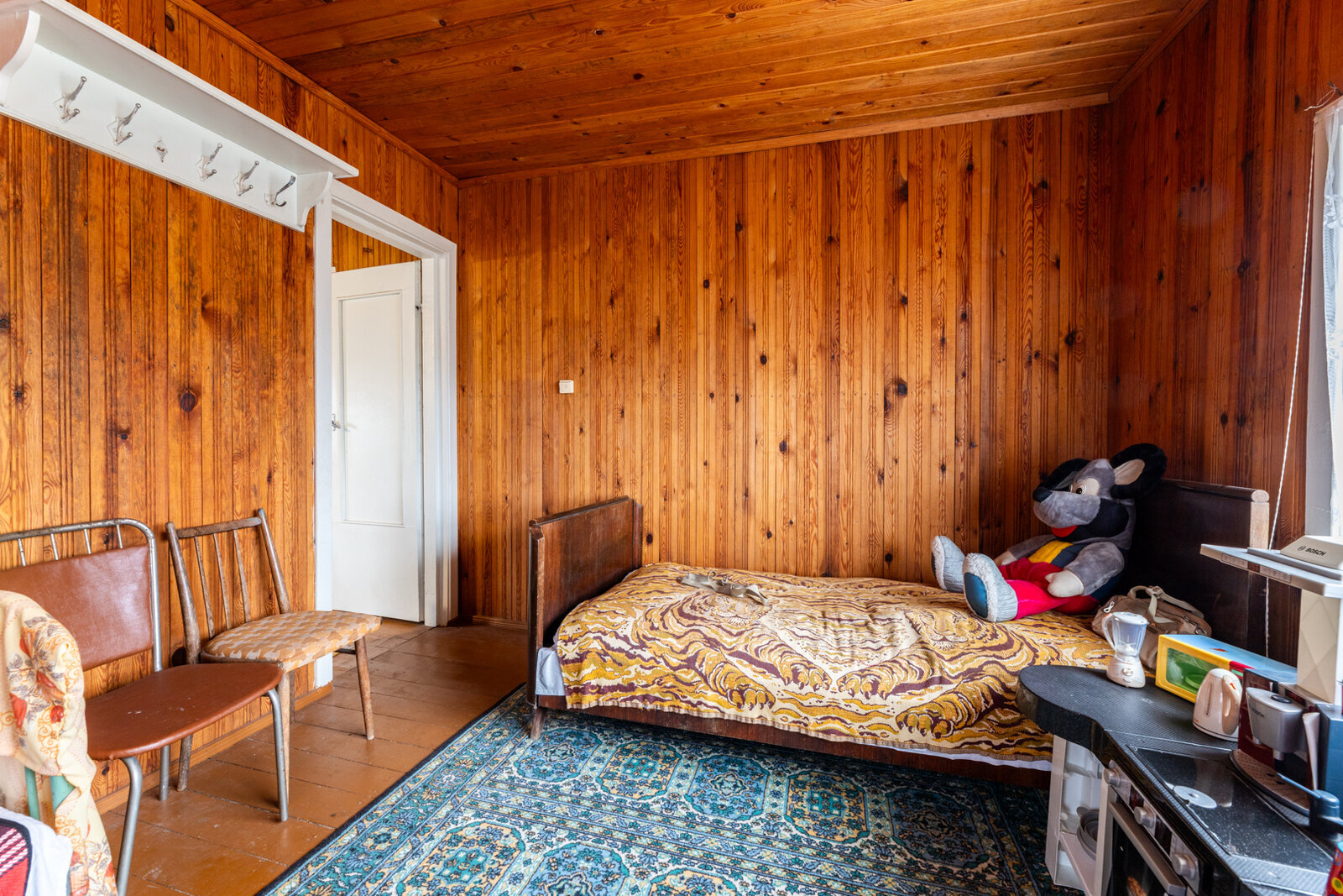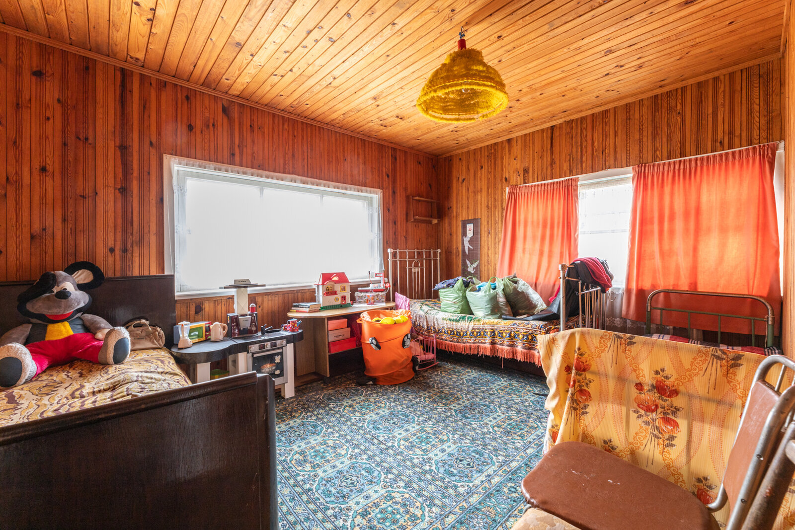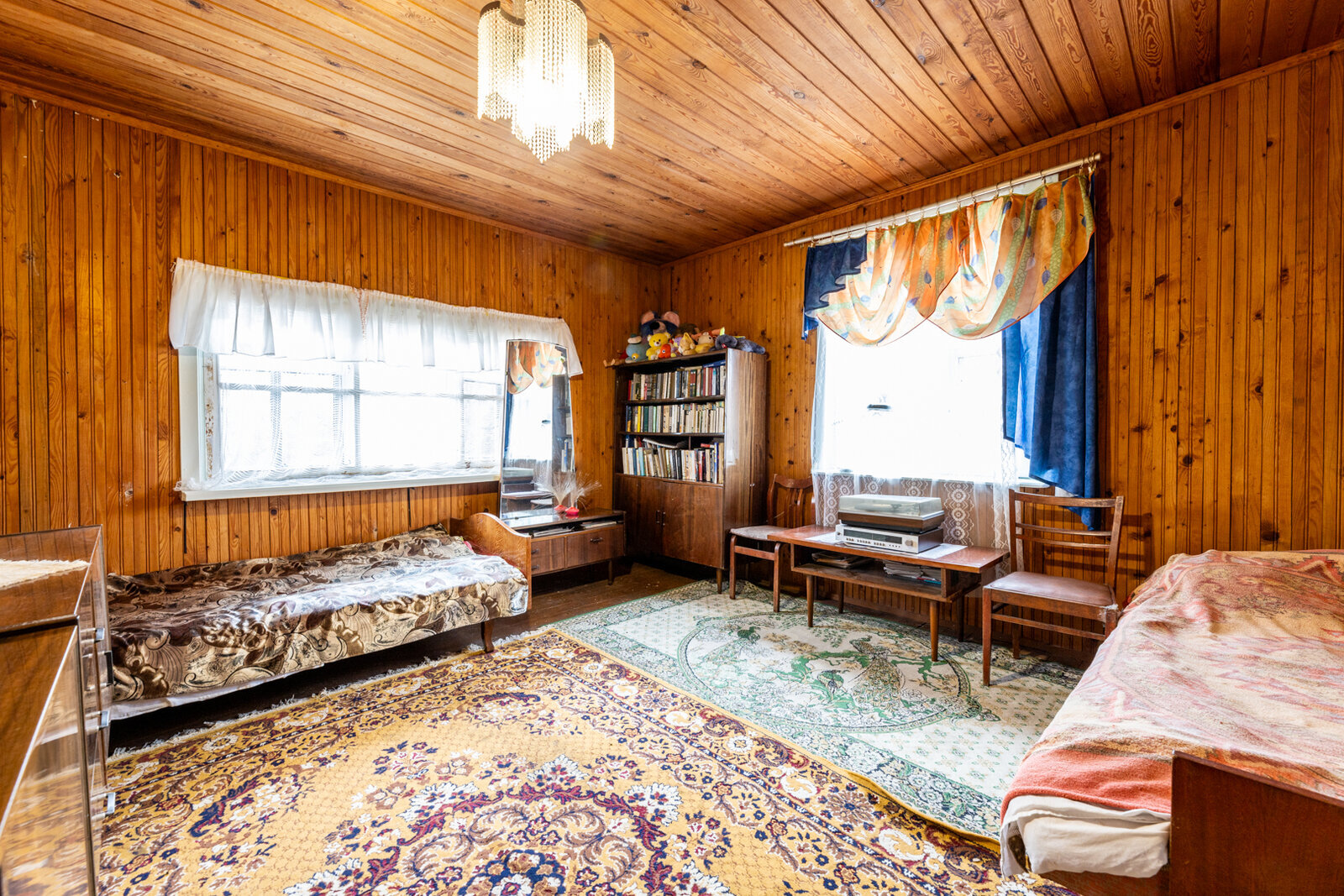 Дом блочный, утеплен и обложен кирпичом. В доме шесть жилых комнат, кухня, туалет с душевой и гараж.