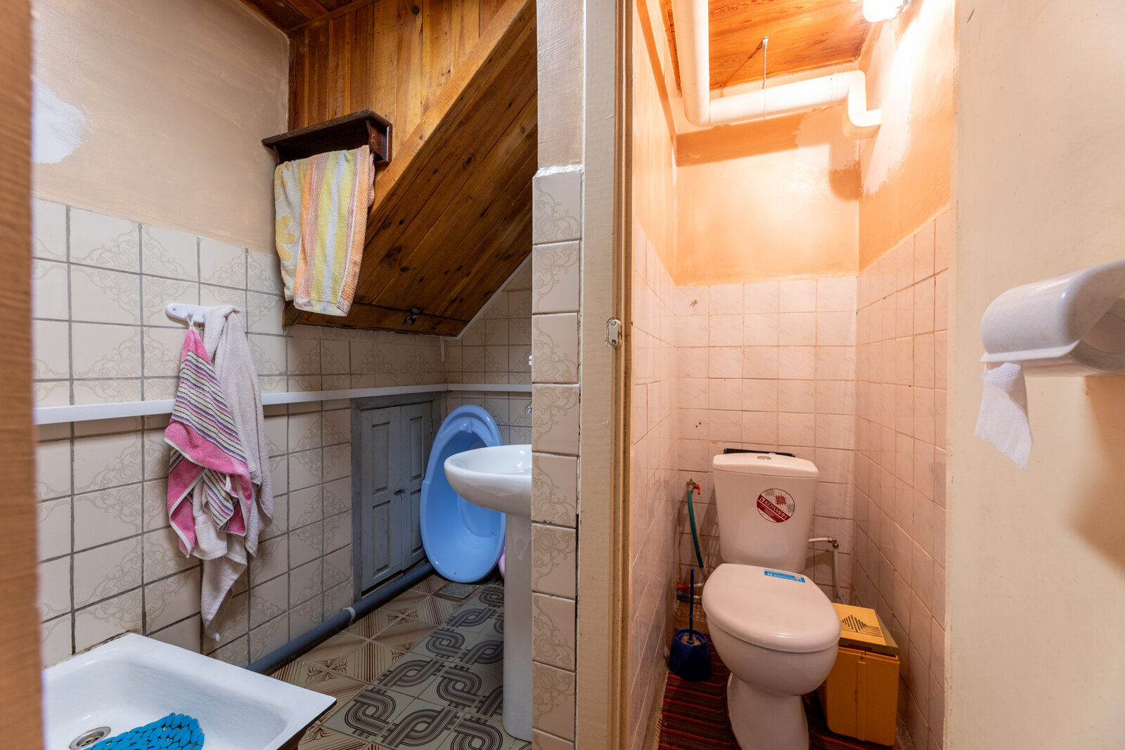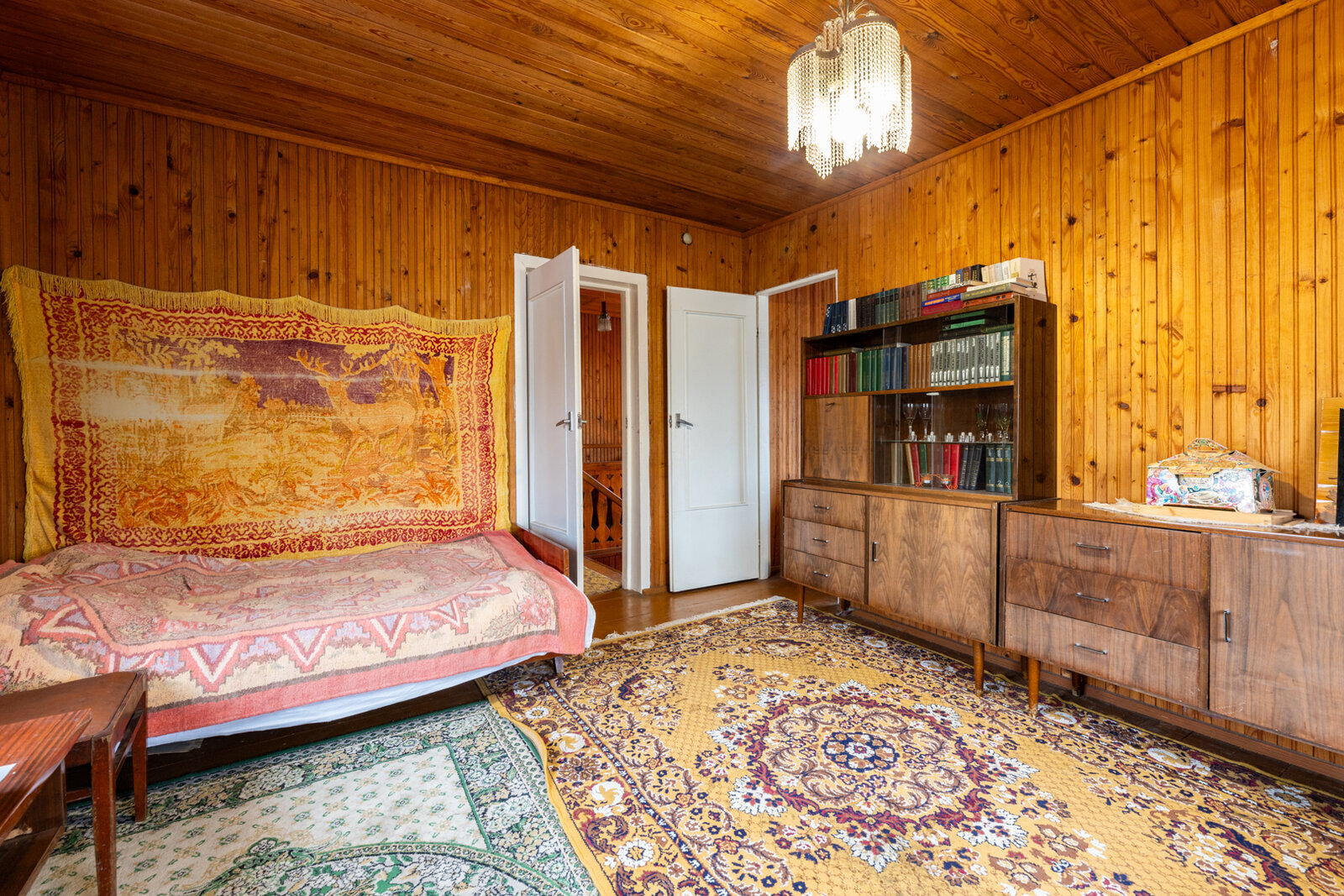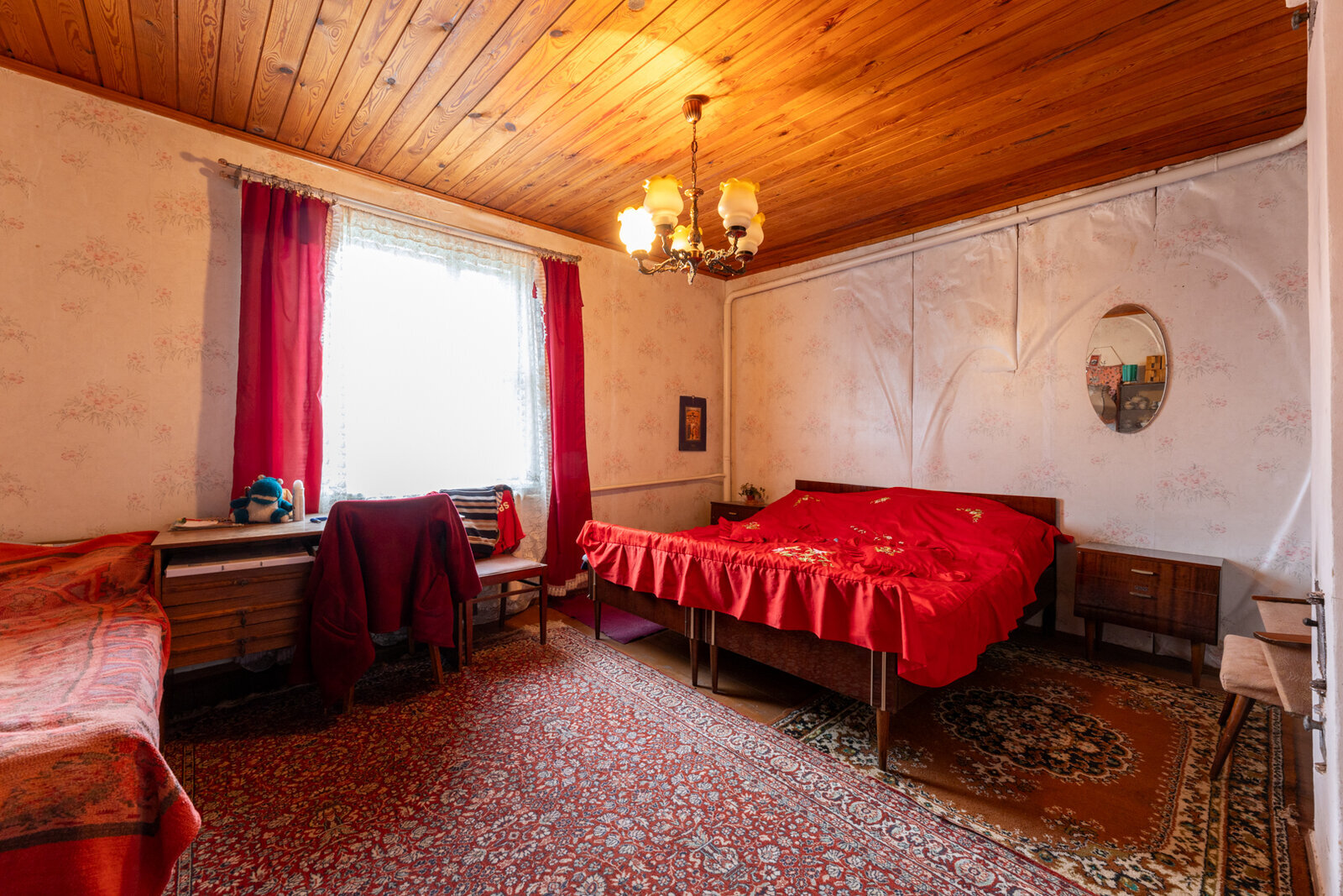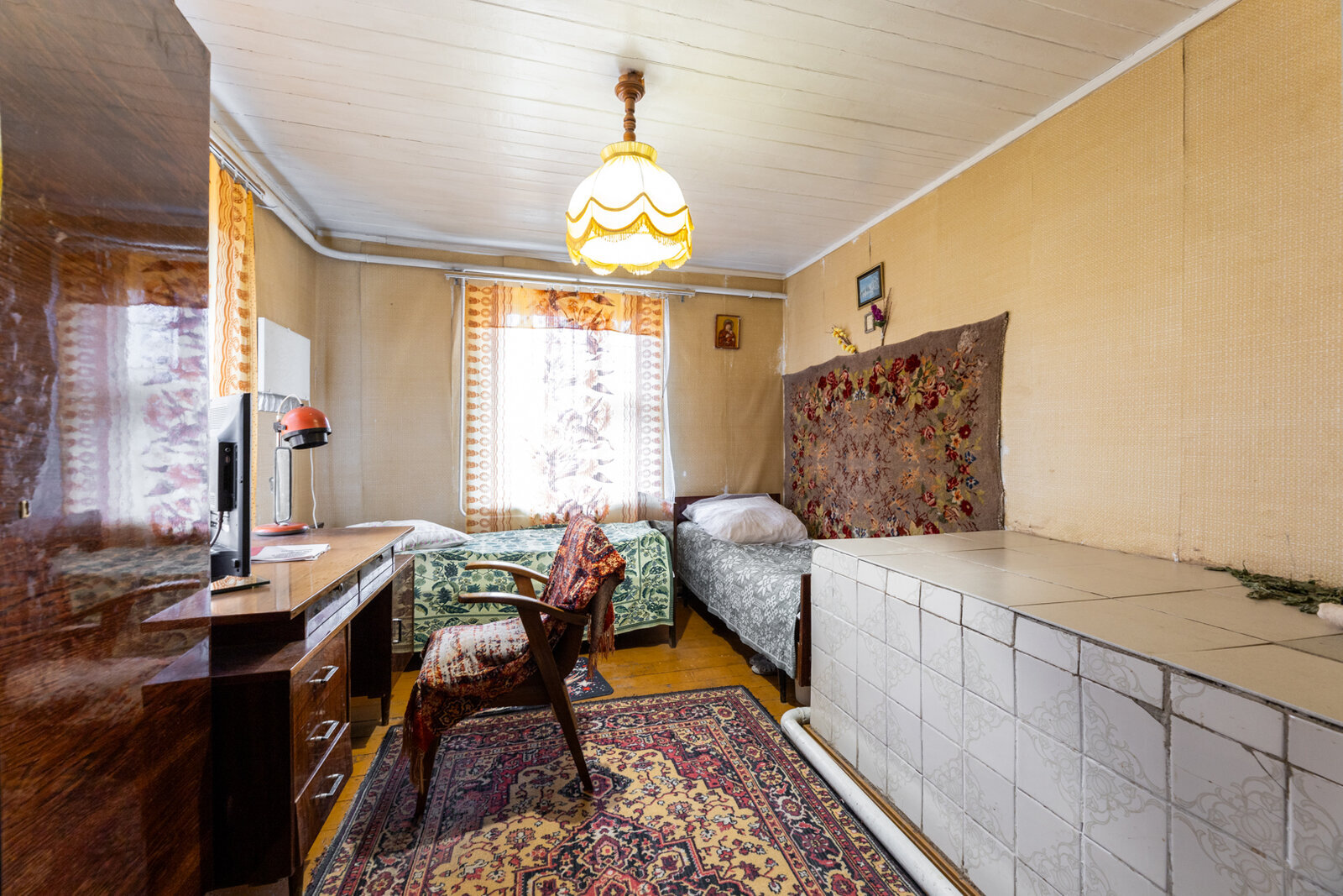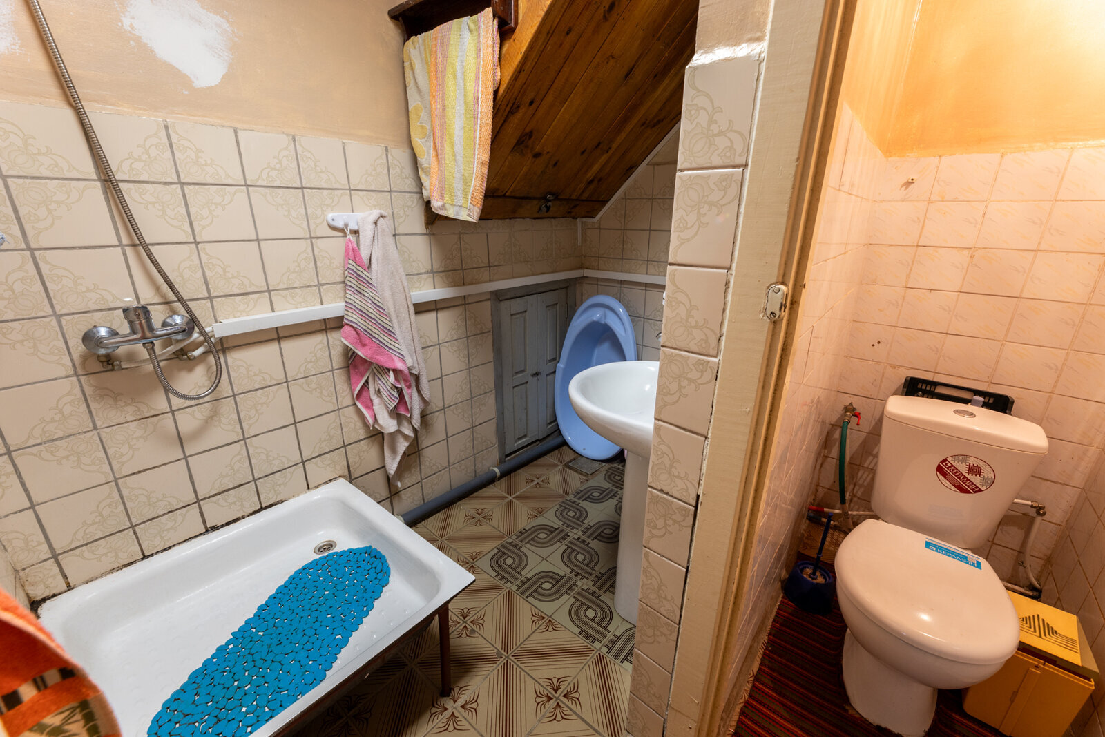 Дом блочный, утеплен и обложен кирпичом. В доме шесть жилых комнат, кухня, туалет с душевой и гараж.
