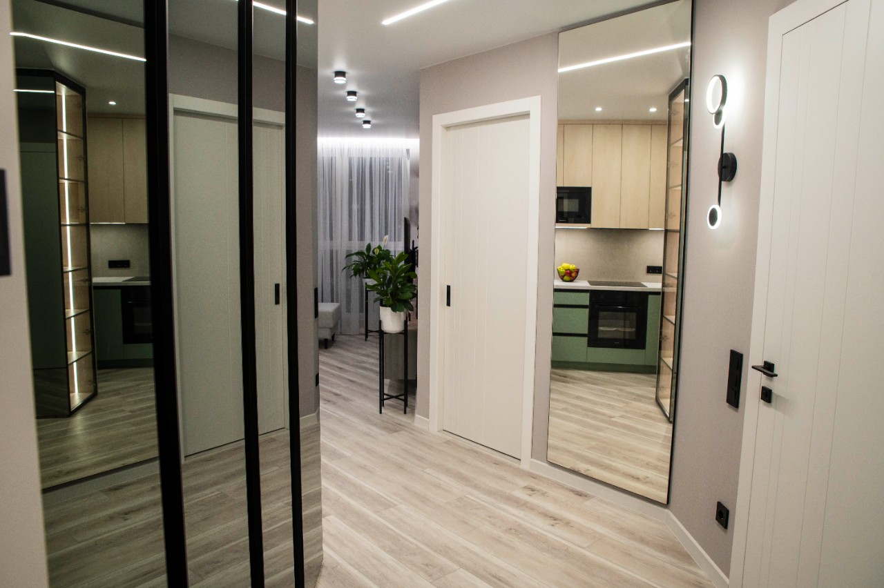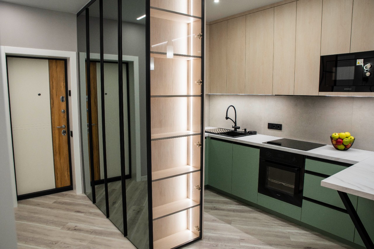 Продается квартира от собственника. Узаконенная перепланировка. В квартире никто не жил. Ремонт, мебель и бытовая техника абсолютно новые и на гарантии. Квартира продается со всей бытовой техникой и всей мебелью, что представлены на фотографиях. Очень грамотная и качественная разводка электрики, для максимального удобства пользования. Различные проходные и перекрестные выключатели, позволяют управлять освещением с комфортом. Есть мастер-клавиша выключения всего электричества, за исключением холодильника и роутера. Есть возможность отключения электричества в квартире удаленно, через приложение в телефоне. Много разных интересных вариантов подсветок, для создания комфорта и уюта. На стенах в гостиной и спальне в сочетании с обоями наклеены пано, которые делают стены акцентными. На полу по всей квартире и на балконе уложен кварц-винил. Это материал, который не боится влаги и долговечный. В сан узле на полу и стенах керамогранит. Вся мебель выполнена исключительно качественно, с использованием дорогой фурнитуры и хороших материалов. На кухне есть все необходимое для хозяйки. Это большая мойка с органайзерами, в том числе и с функцией мытья стаканов и кружек, встроенные холодильник, посудомойка, микроволновка, вытяжка, индукционная плита и духовой шкаф. Установлен фильтр воды.