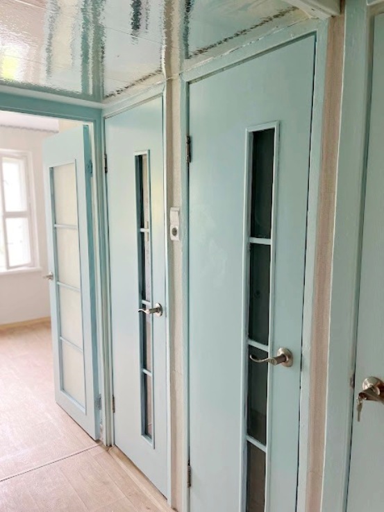 Просторная прихожая , 2 больших коридора. Кладовая комната. Можно сделать второй санузел (канализационная труба подведена).