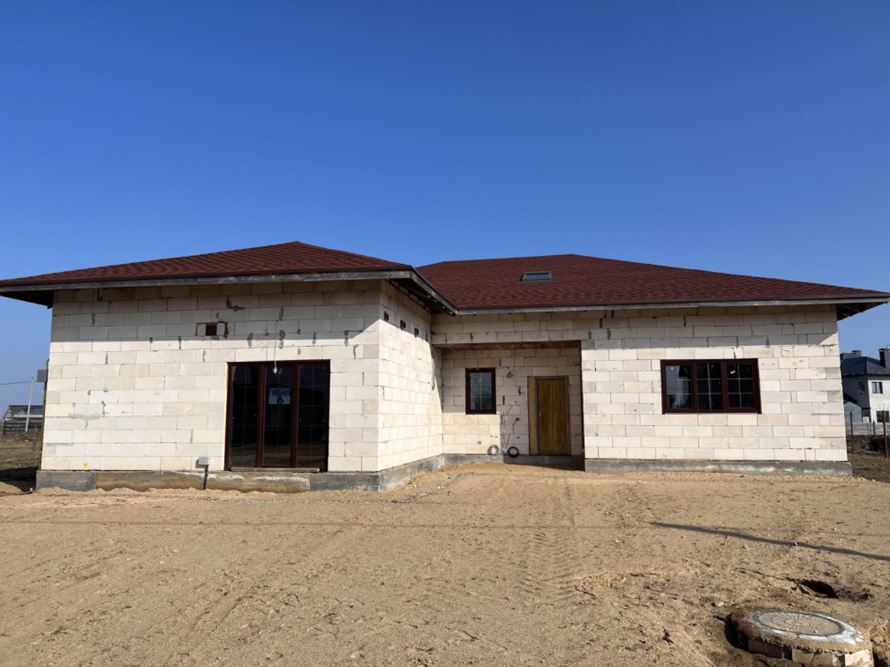 Если мобильная сеть недоступна, звоните или пишите в вайбер, телеграмм (подолгу нахожусь в РФ) доме все коммуникации, разводка электрики, черновая отделка стен, теплые полы, просторный высокий мансардный этаж с четырьмя мансардными окнами, терраса, в доме предусмотрена комната отдыха с баней (со всеми необходимыми входами/выходами), во дворе летняя деревянная кухня 26 кв.м. Ровный подсыпанный участок 15 соток в частной собственности.