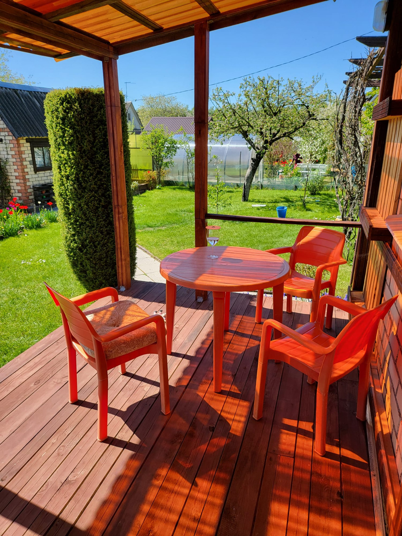 Ровный ухоженный участок. Терраса 12м2. На участке посажены плодовые деревья (яблони, черешня, вишни, груша) Большое количество цветов и декоративные кустарники. По периметру участка забор и живая изгородь. Просторный гараж. Вода сезонная, есть бойлер, стиральная машина. По улице проведен газ. Удобный подъезд к дому. Большое количество соседей, проживающих круглогодично, на домах которых установлено видеонаблюдение. Недалеко находится стационарный магазин и автобусная остановка, работает «Е-Доставка».