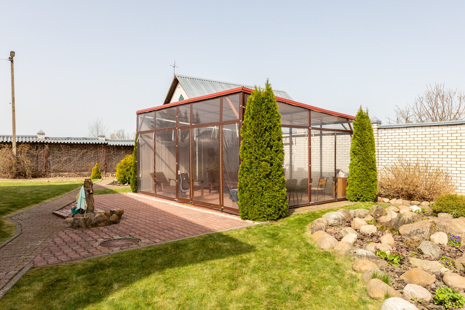 Размер участка: 25 соток под обслуживание дома + 18 соток засажены садом + 4,2 сотки перед домом.