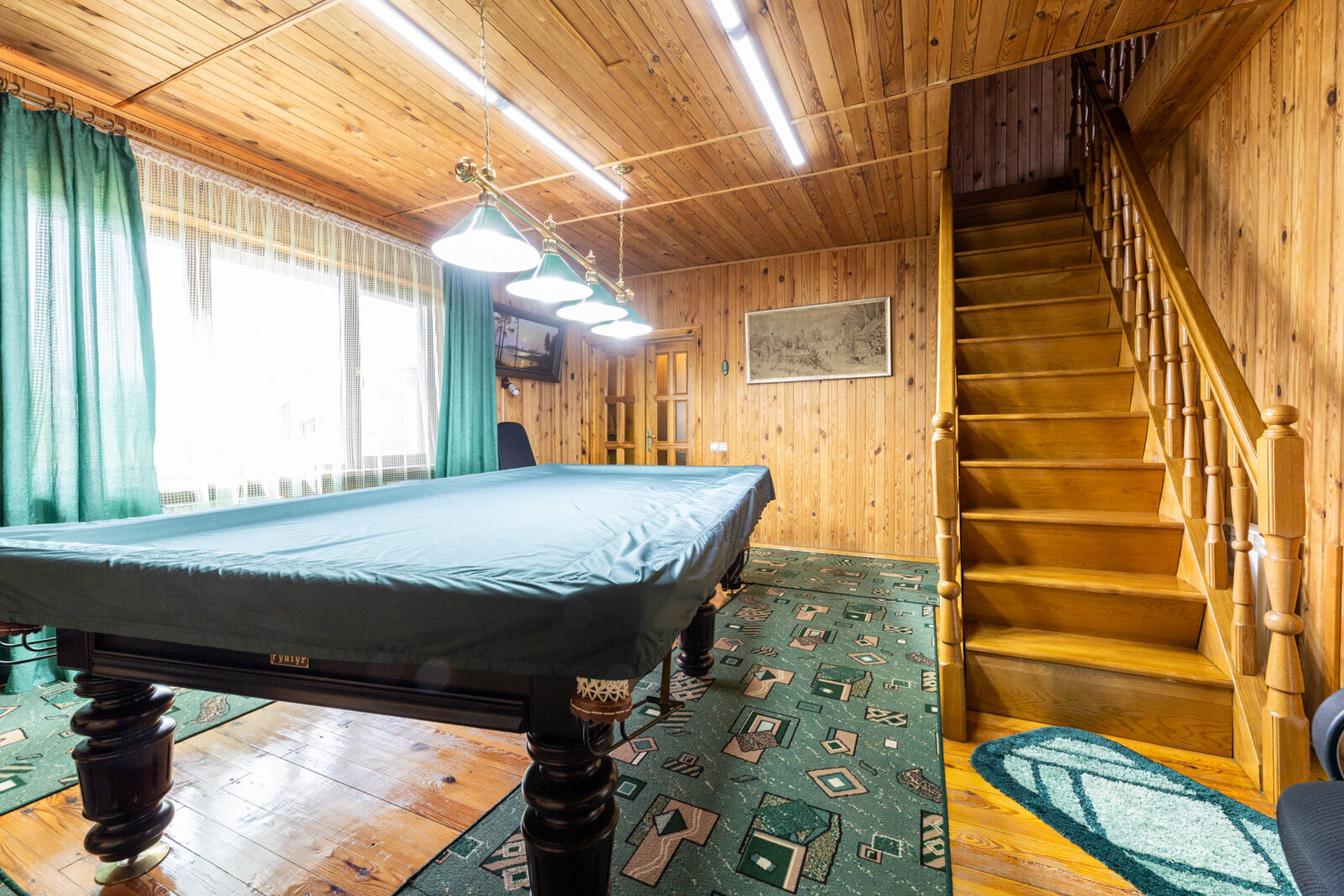 Беседка с возможностью отопления в холодную или морозную погоду. Мебель в беседке - натуральный дуб. Дюралайт (праздничная подсветка) на доме и на беседке гарантируют Вам и Вашим гостям хорошее настроение. Детская площадка, батут. Камин. Бильярд.