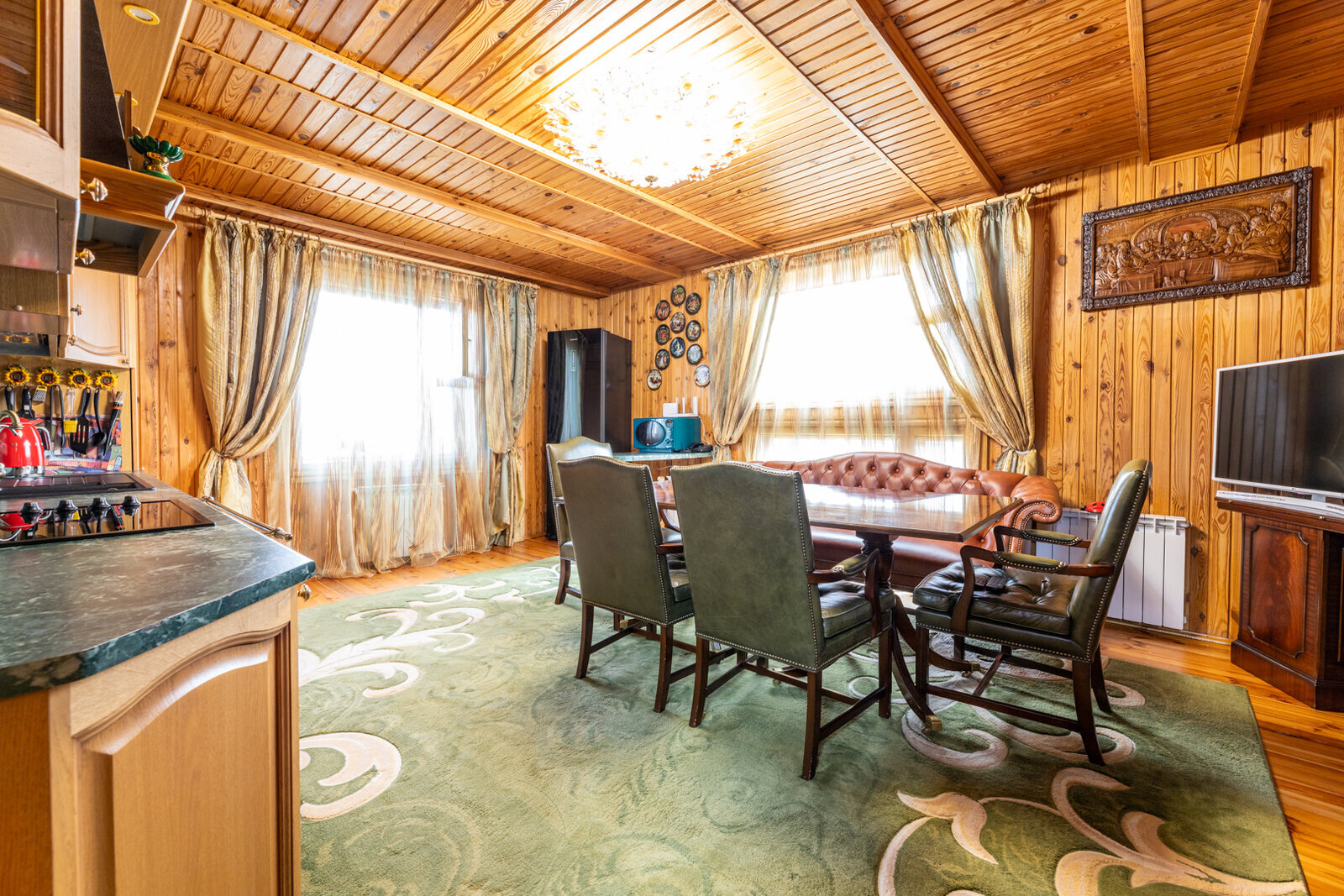 Окна – стеклопакеты из дуба;