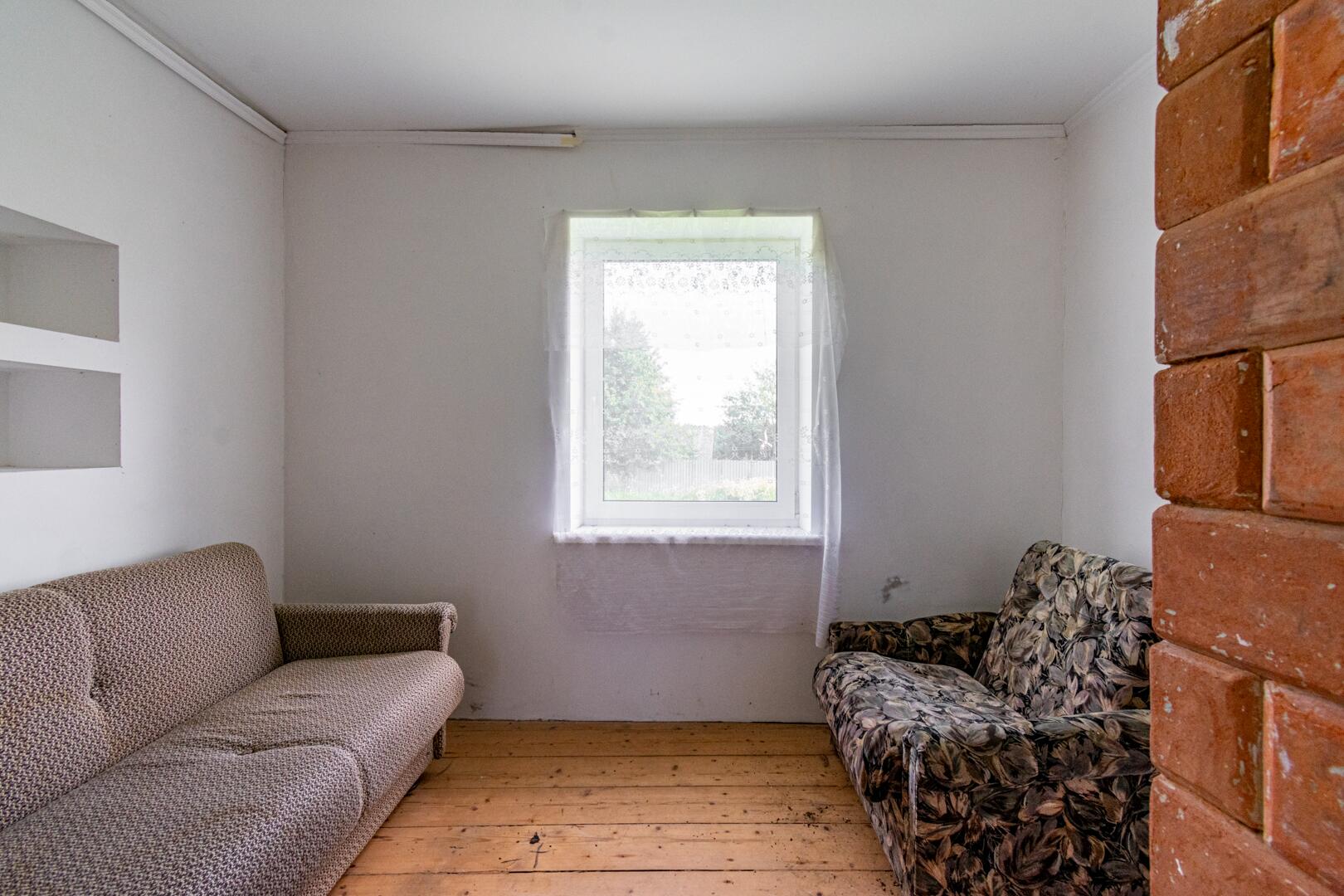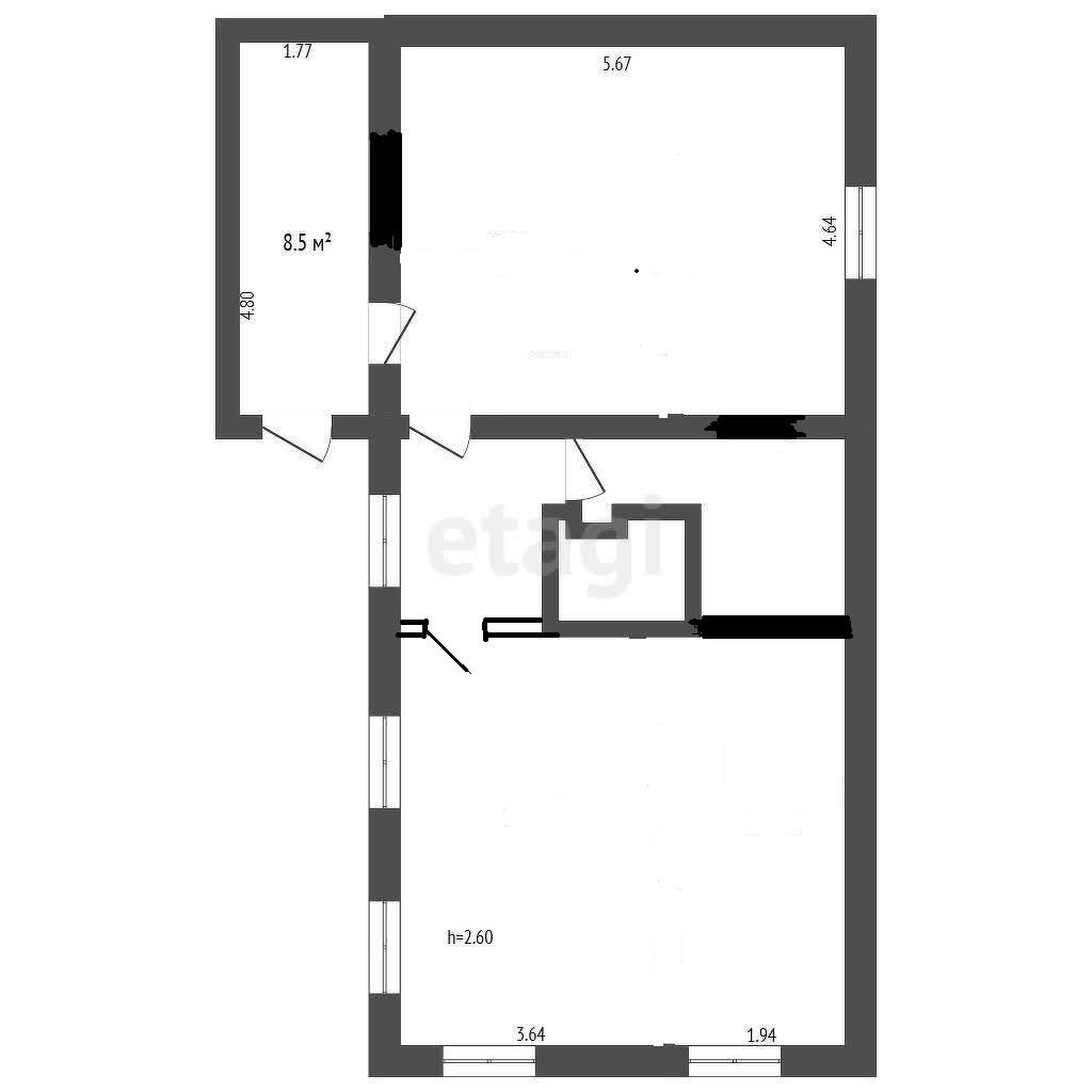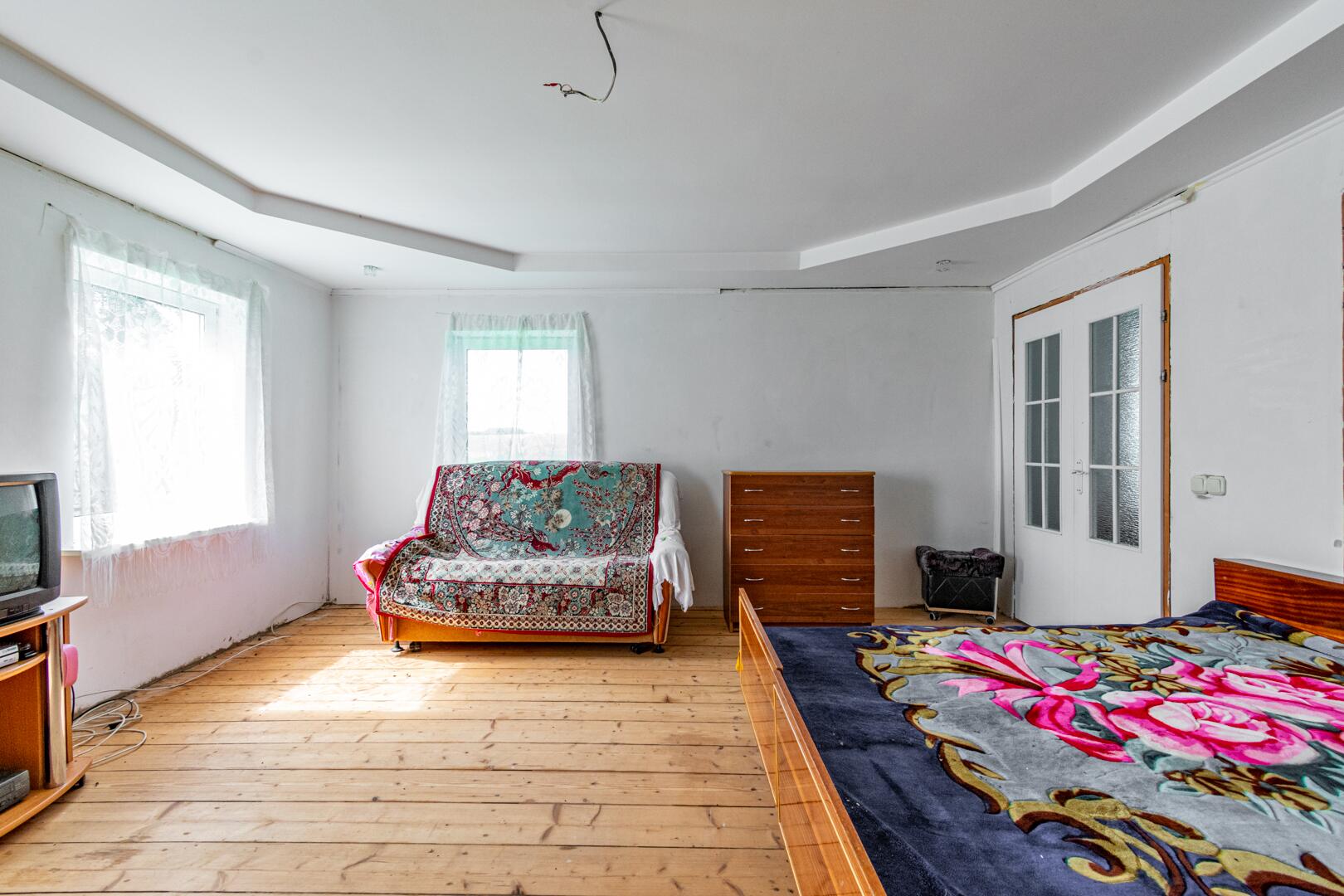 - Окна ПВХ, внутренние стены и потолок обшиты гипсокартонном.