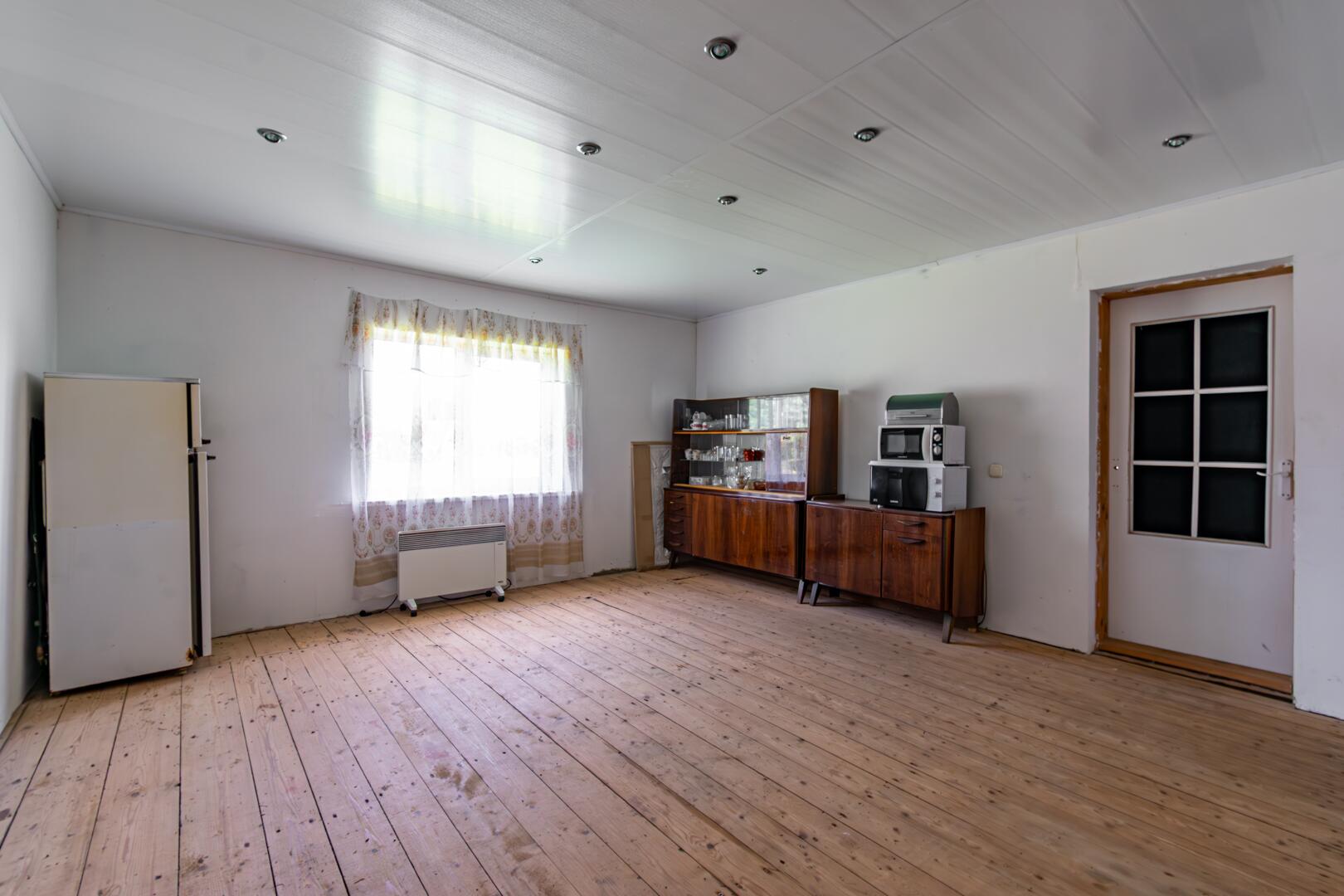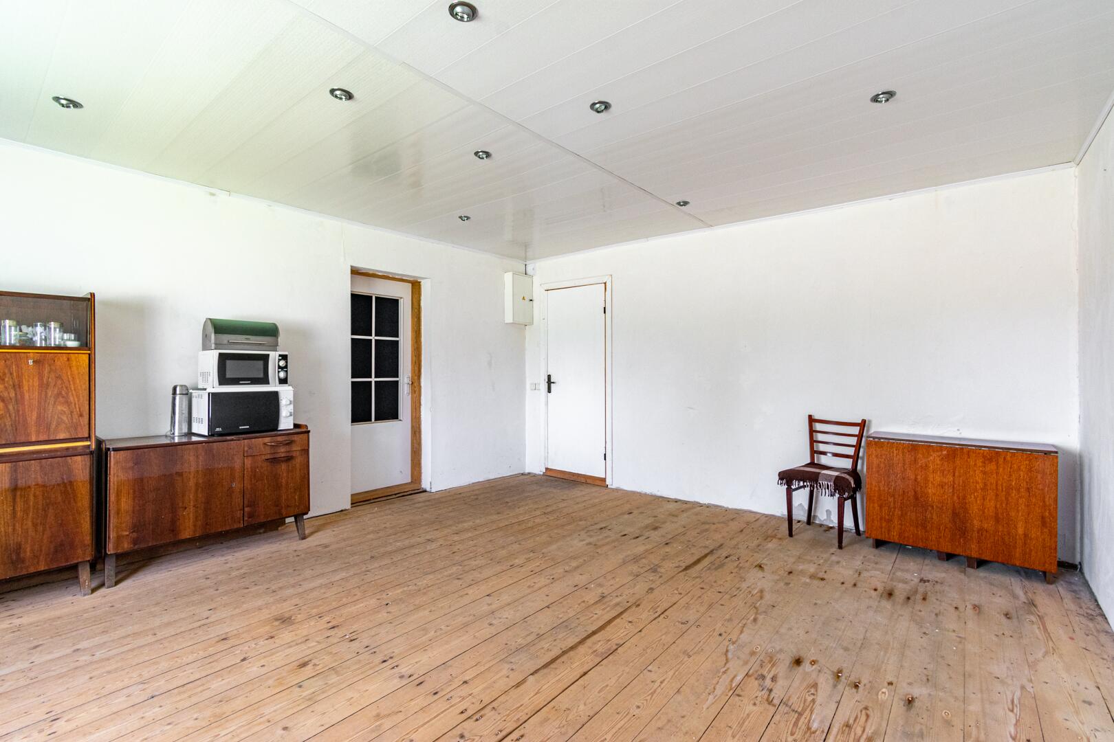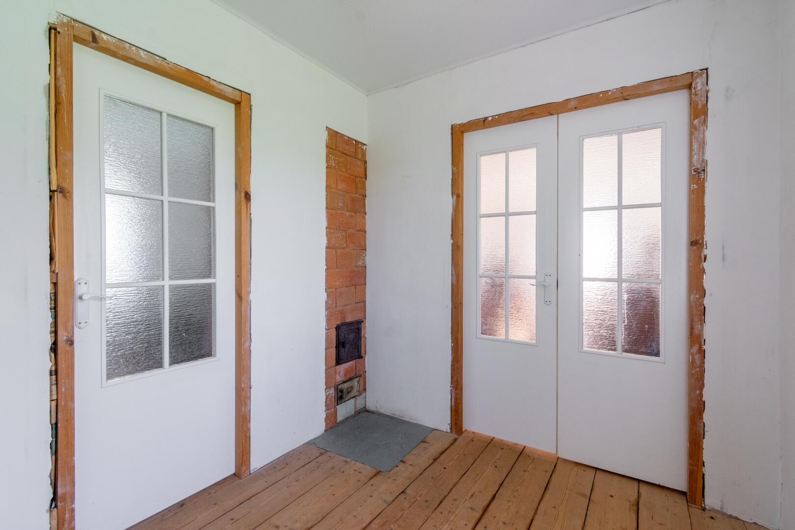 - Окна ПВХ, внутренние стены и потолок обшиты гипсокартонном.