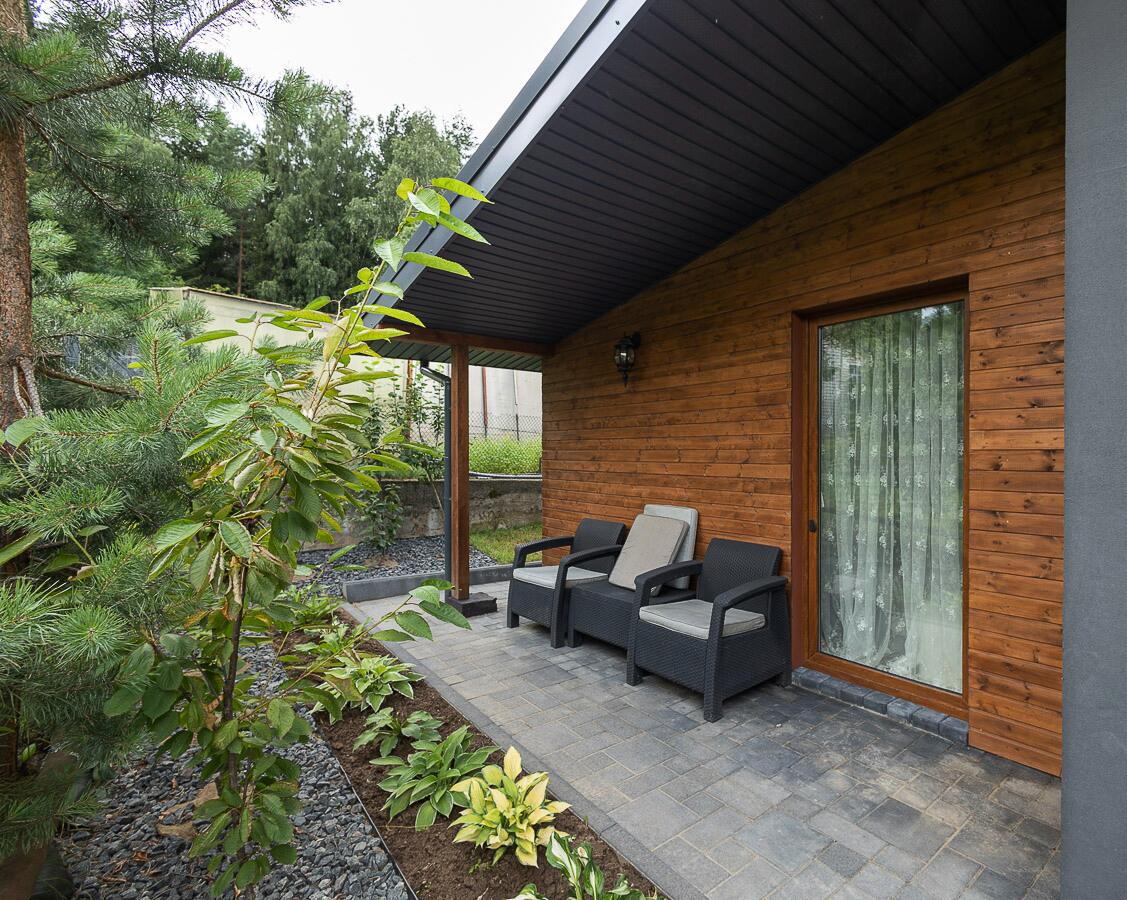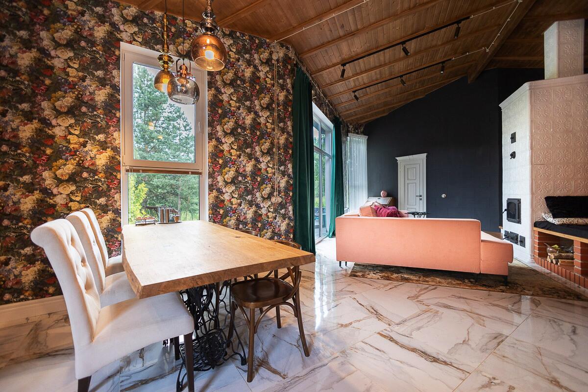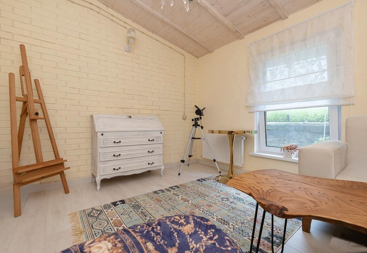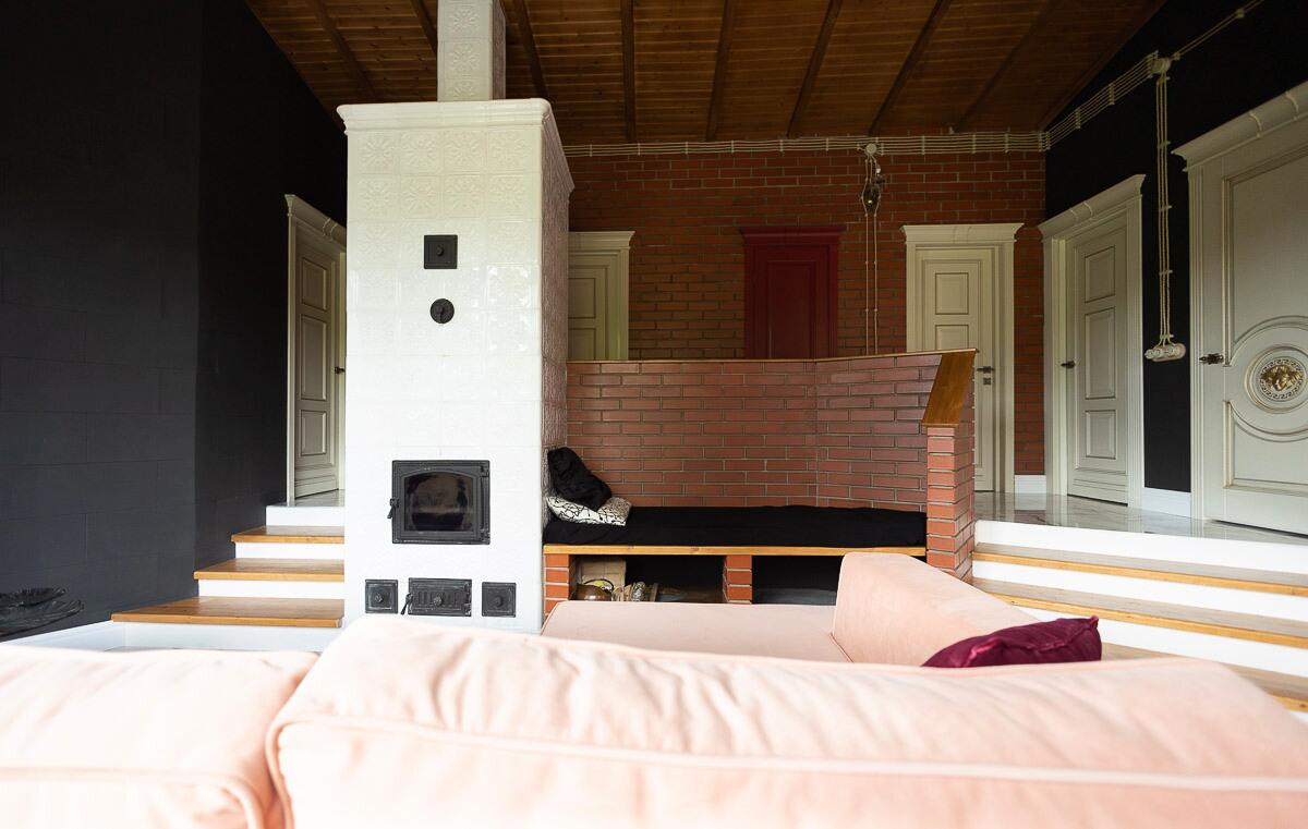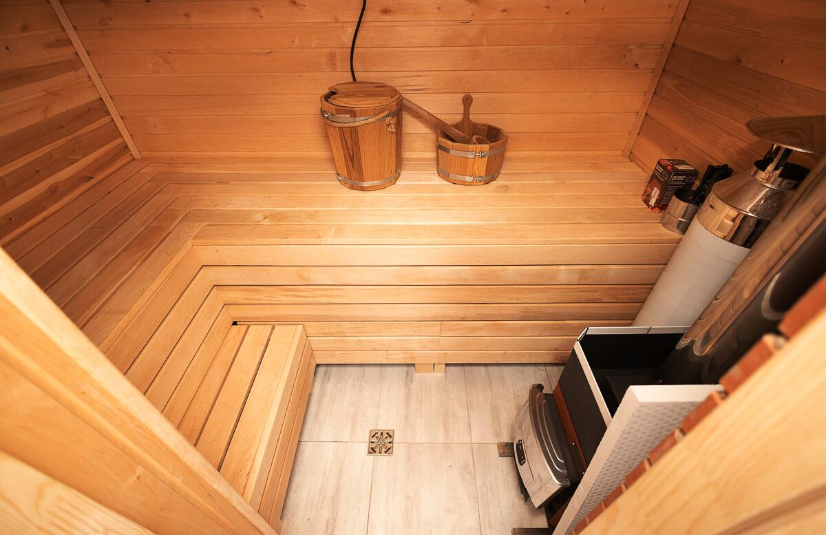 4 жилые комнаты и гостинную 2 санузла, кухню-столовую, котельную и прихожую На участке сауна с комнатой отдыха и выходом на террасуСантехника, керамика, мебель, освещение, бытовая техника - все известных европейских производителей