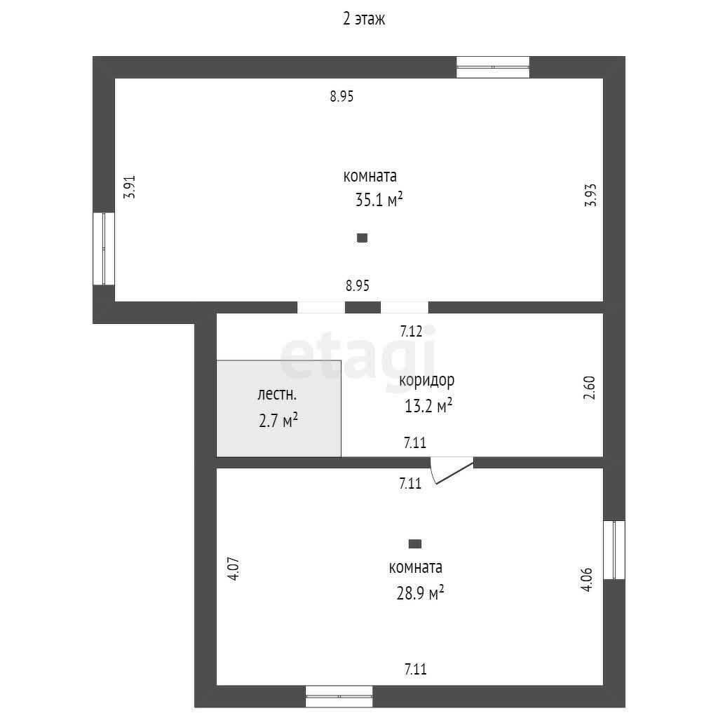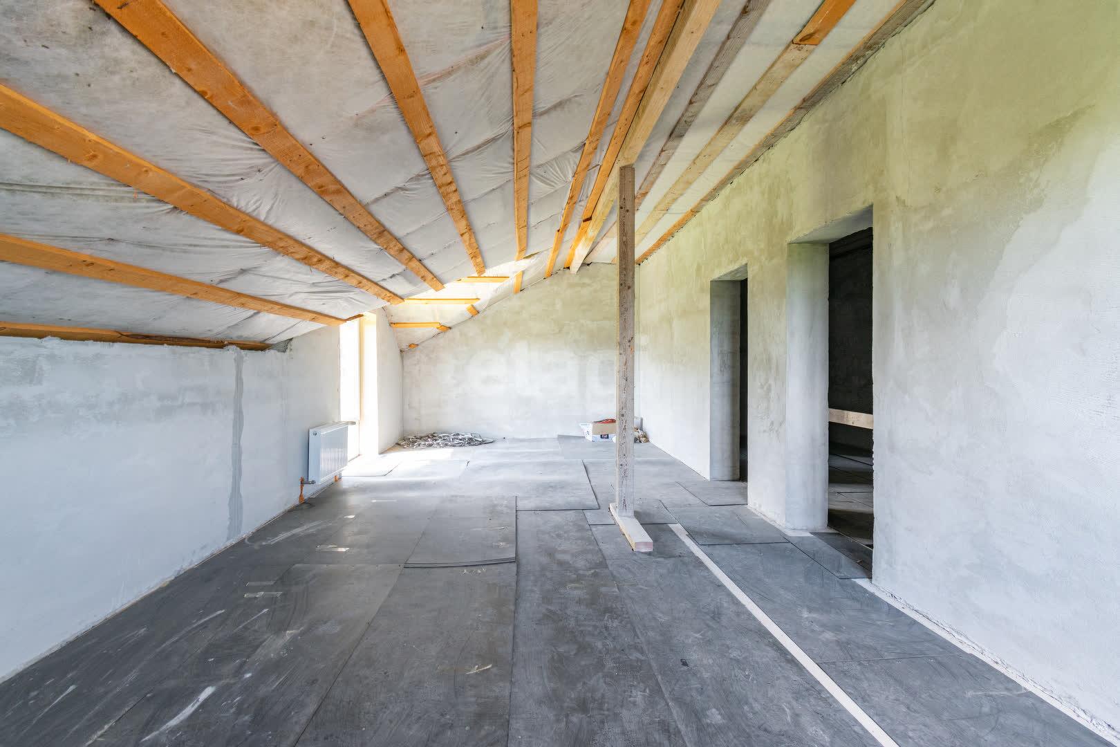 На втором мансардном этаже размещены 2 спальни 35 м2 и 29,9 м2, а также коридор 13,2 м2. Отопление от батарей.