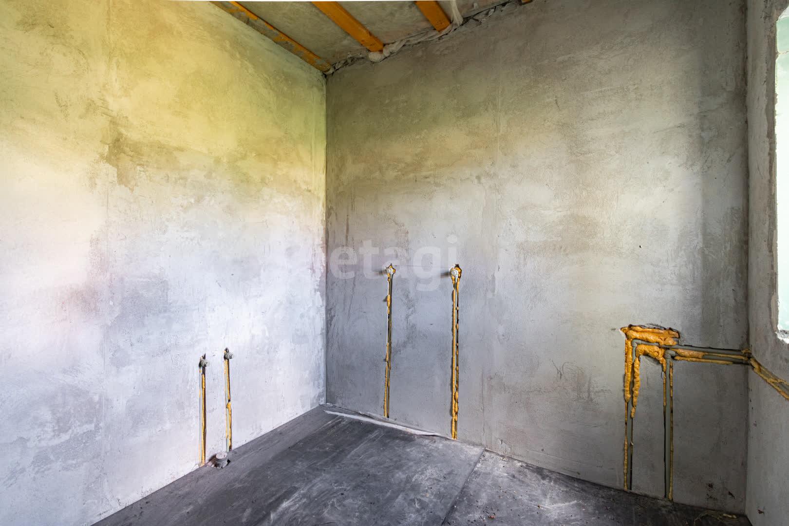 Трубы канализации разведены по дому, нужно устанавливать септик, станцию биологической очистки или выгребную яму на 3-4 бетонных кольца по желанию будущего владельца.