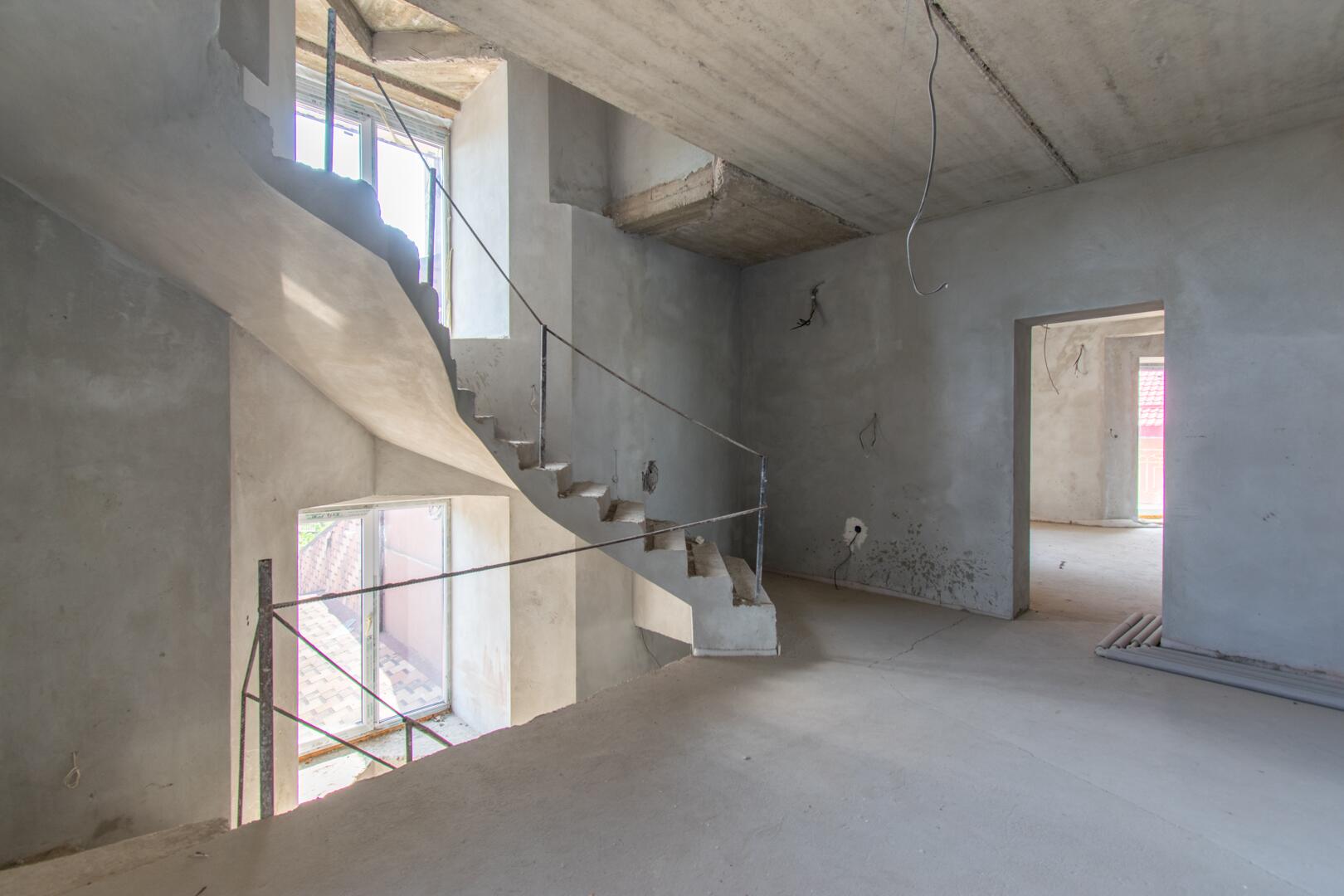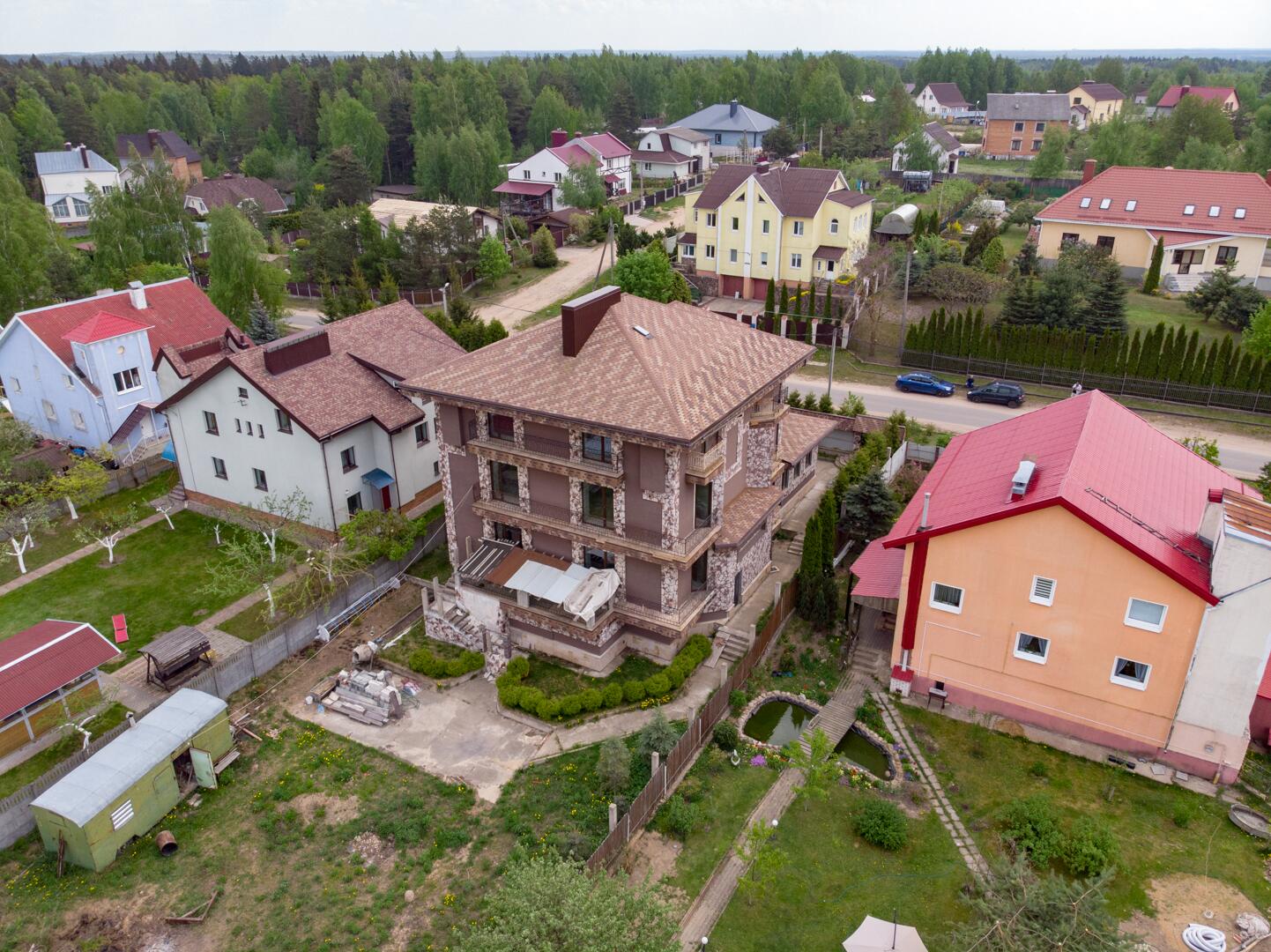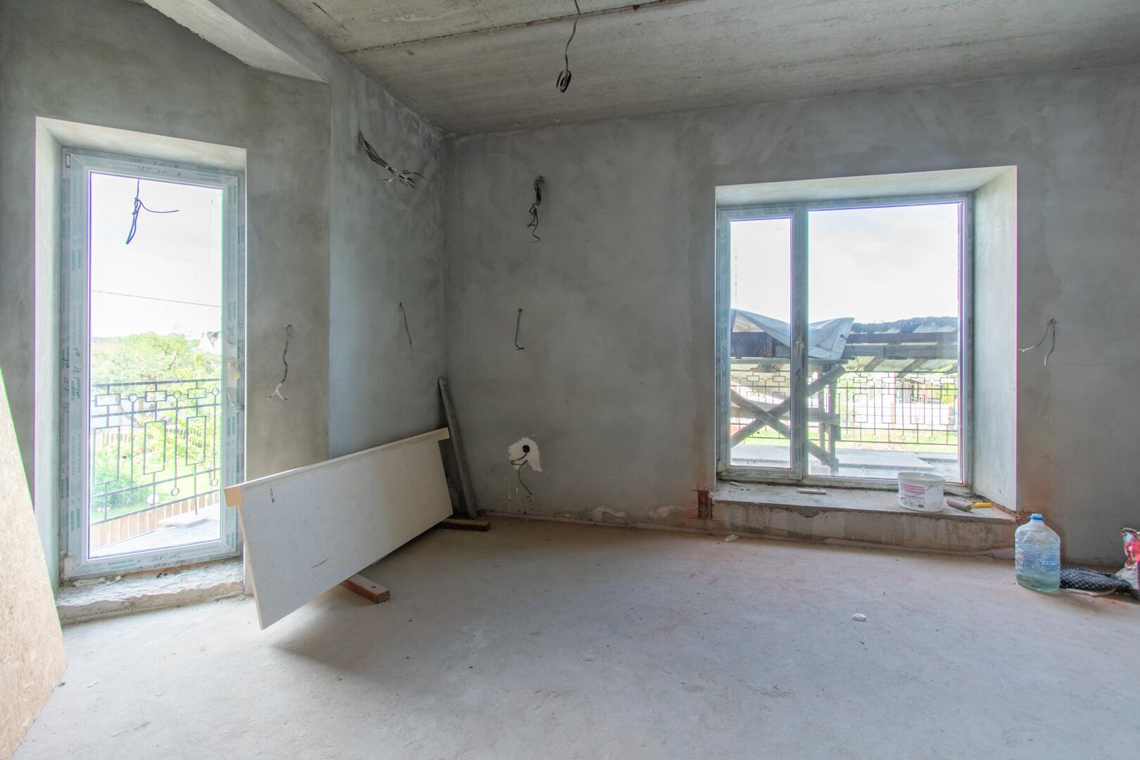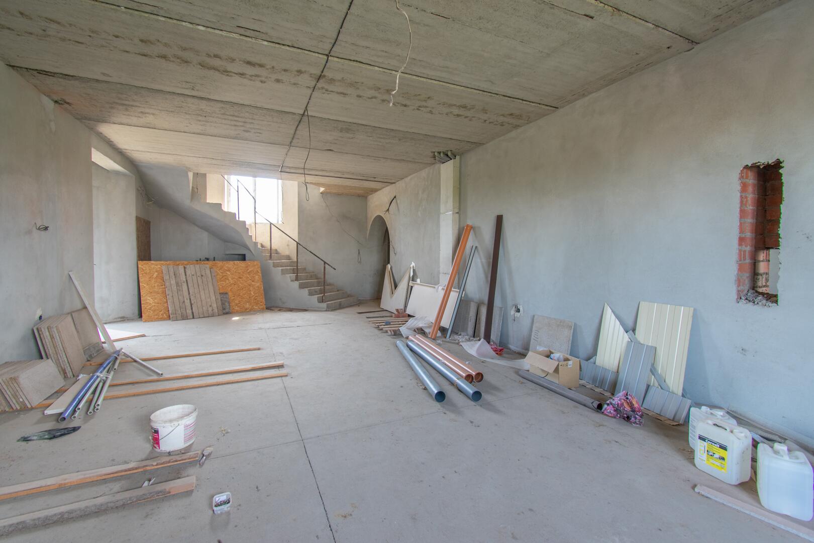 Дом кирпичный, что обеспечивает отличную тепло- и шумоизоляцию, построен в 2021 году. Снаружи стены (600мм) утеплены (100мм) и отделаны декоративным камнем. Общая площадь здания 630,4 м2. Фундамент – ФБС, перекрытия железобетонные, крыша – битумная черепица. На окнах ПВХ-профиль (почти все эркерные и французские), подоконники из натурального камня, полы залиты черновой стяжкой. Входная дверь металлическая. Межкомнатные двери отсутствуют. Высота потолков 1,2 этажи и подвал составляет 3,2 м2, 3 этаж 3м2. На первом этаже установлен камин, дымоход проведен на каждом этаже. Вентиляция с естественным побуждением.