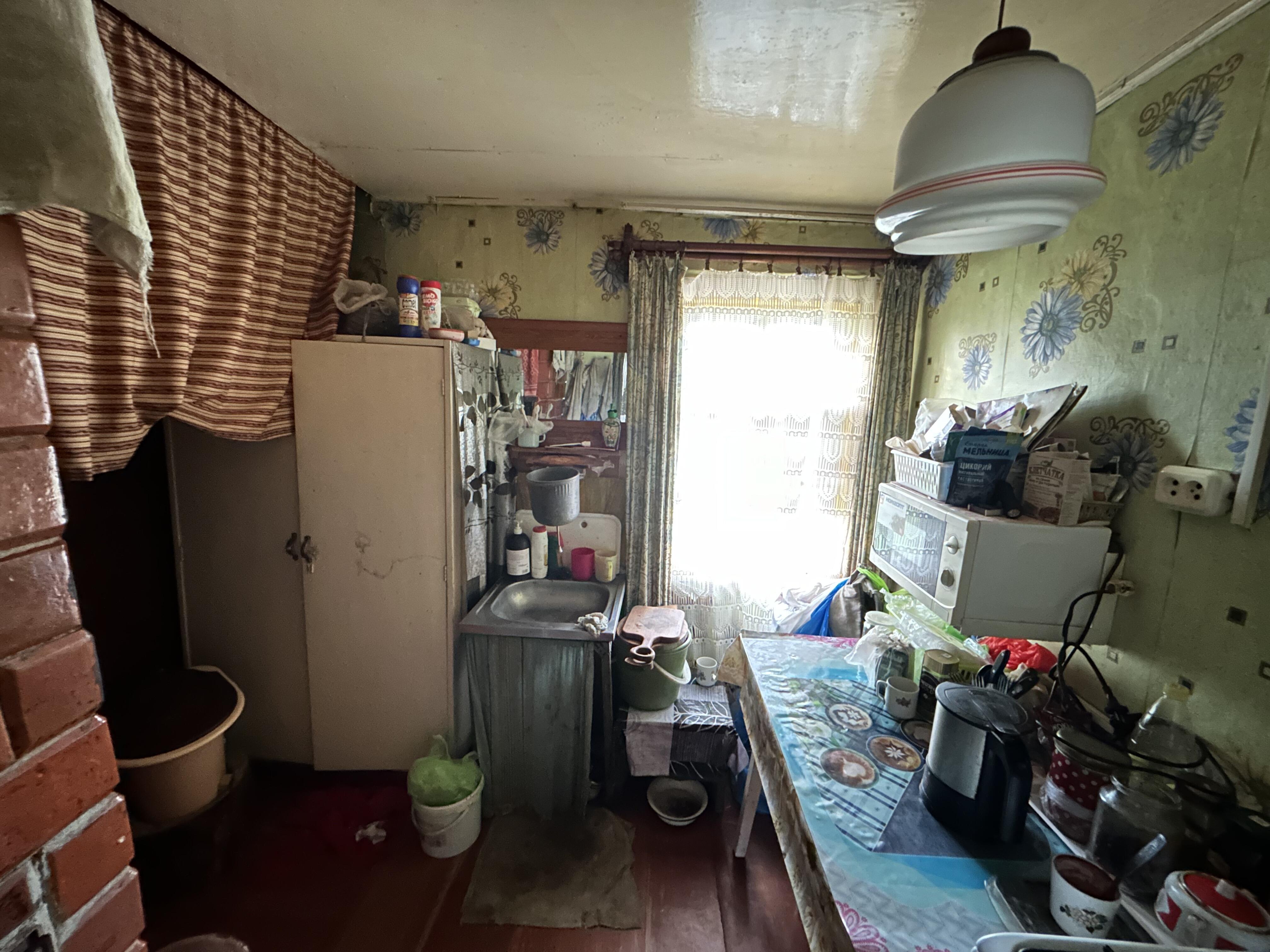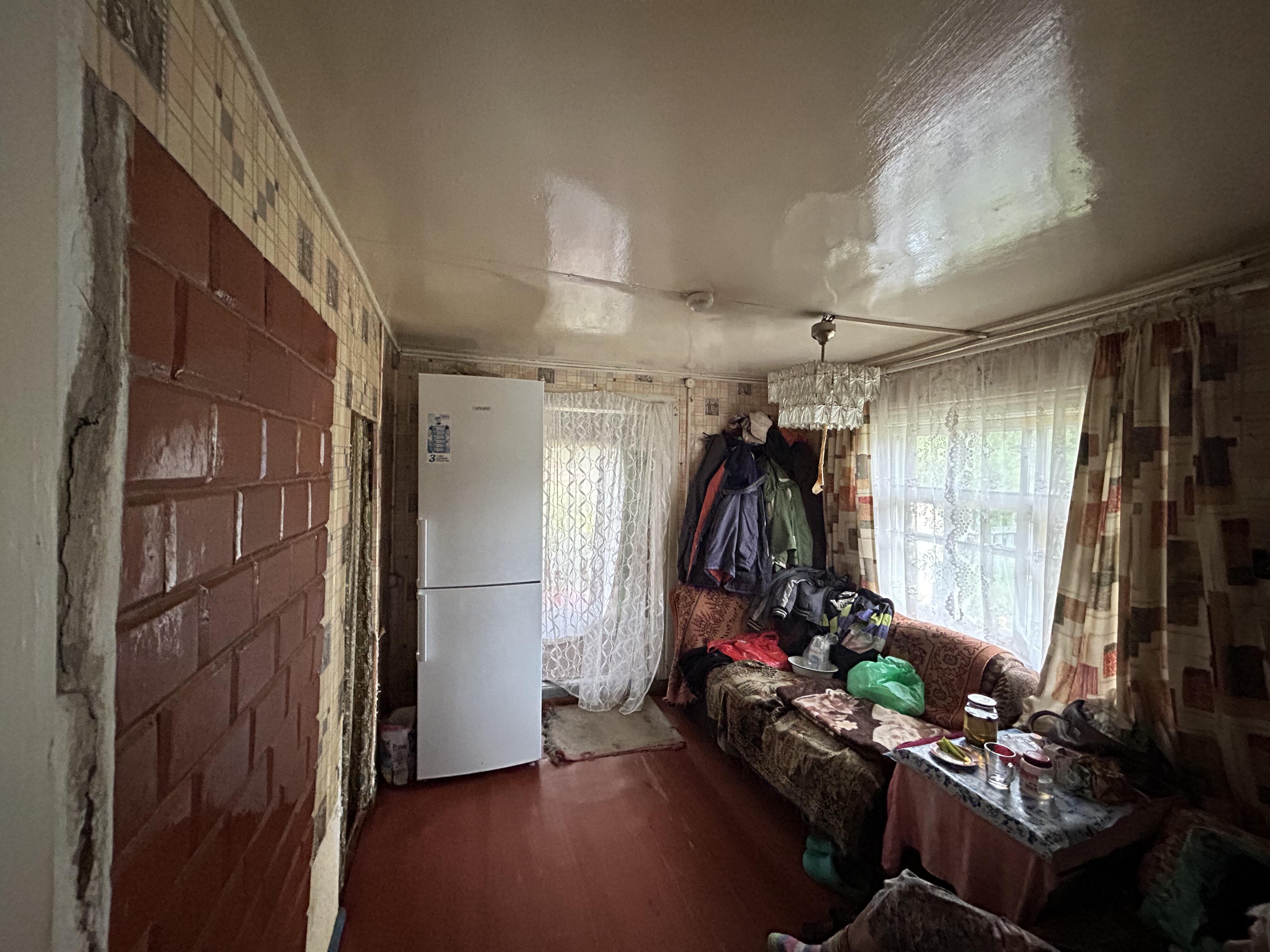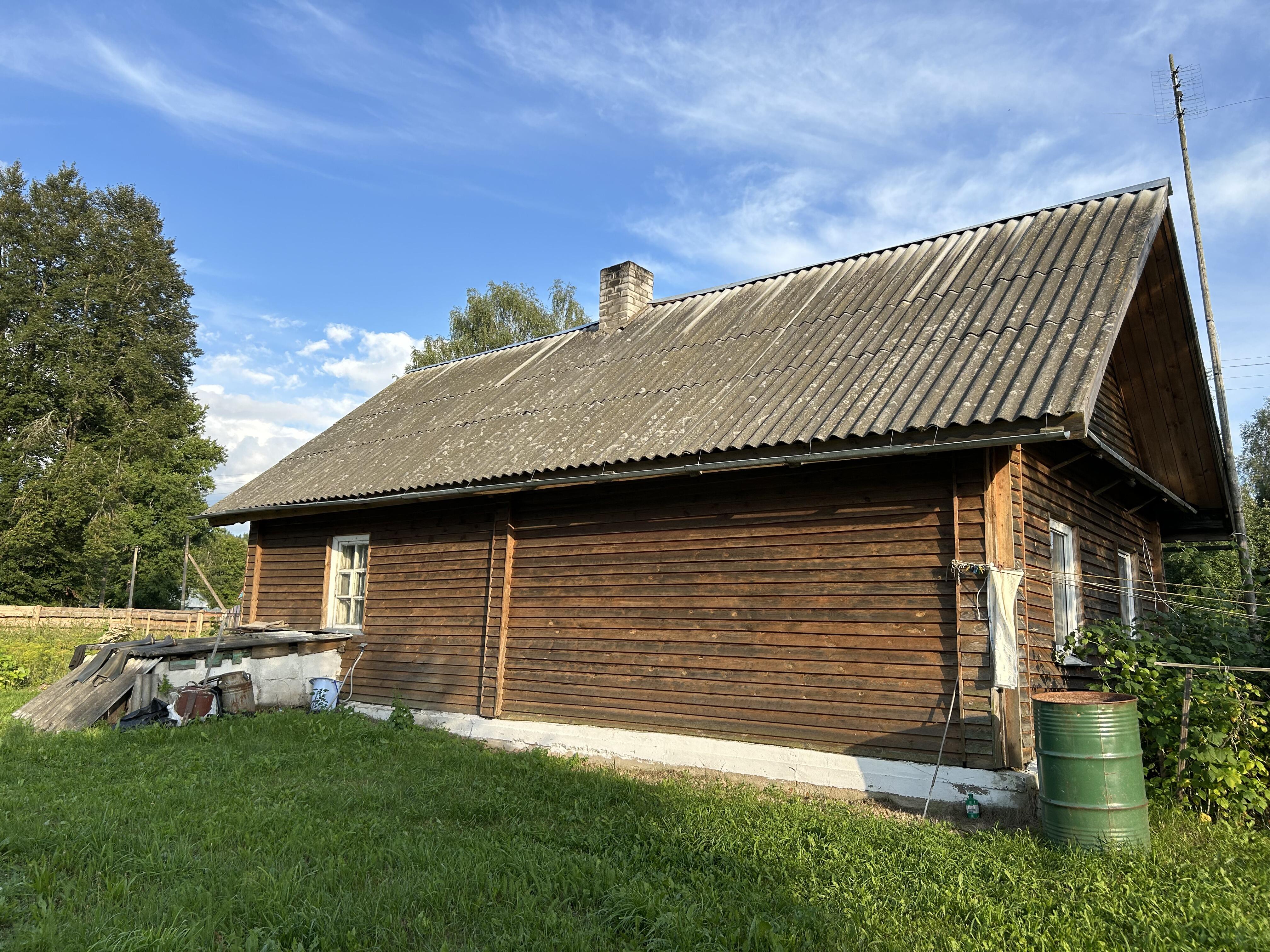 Продается хороший деревянный дом, обшит доской, выглядит достойно. 41.6 СНБ. Бревна крепкие, не гнилые, обработаны. Крыша из шифера, не требующая ремонта, ровная, не течет. Окна в жилой комнате заменены на ПВХ стеклопакеты. В доме имеется печь и газовая плита работающая от баллона. Дом электрифицирован, имеется холодильник и телевизор, которые остаются новому владельцу. Вся мебель и техника также остается. В доме большая и просторная жилая комната, обеденная комната с диваном, кухня, прихожая и кладовая, а также большой и высокий погреб.