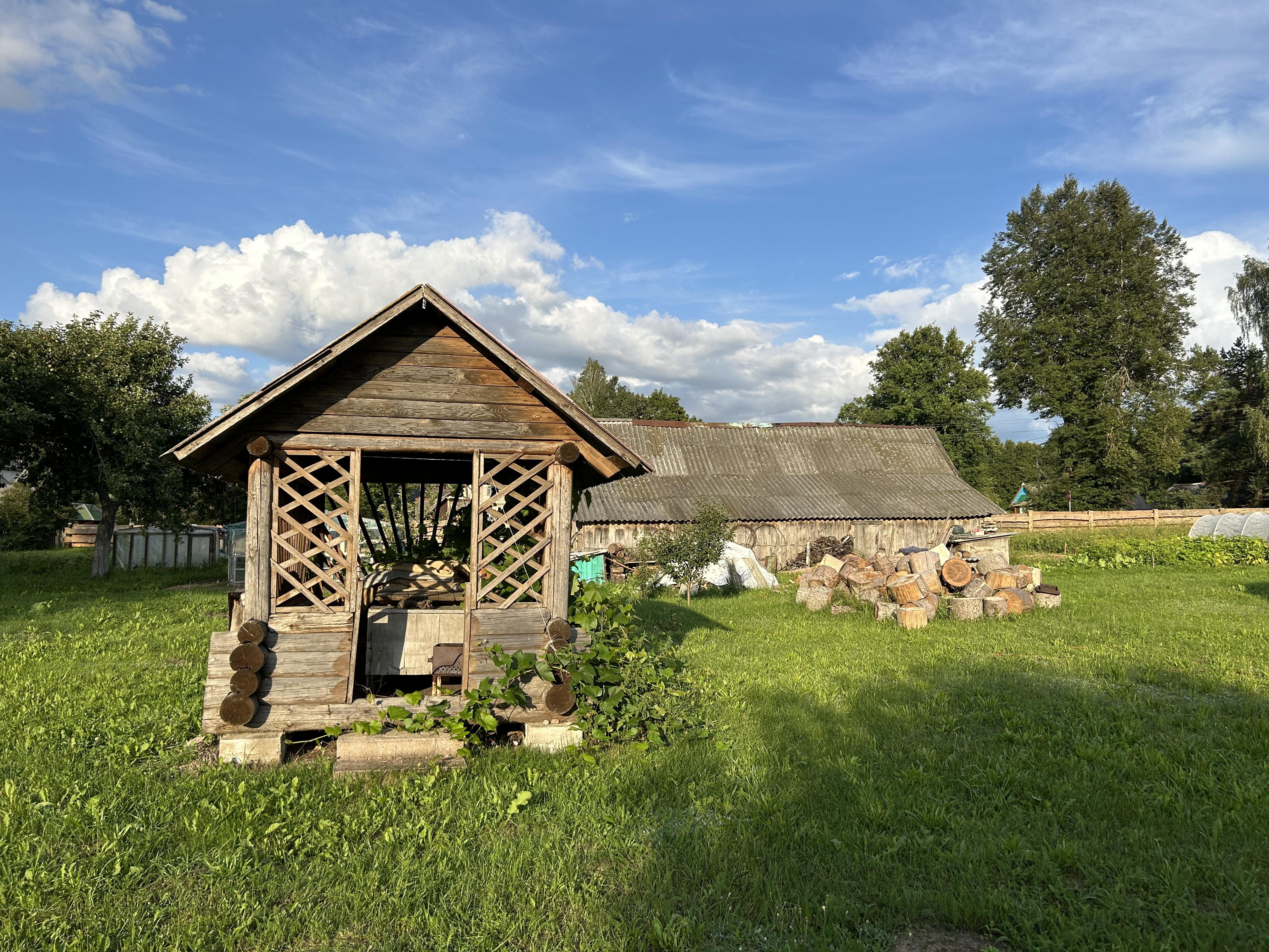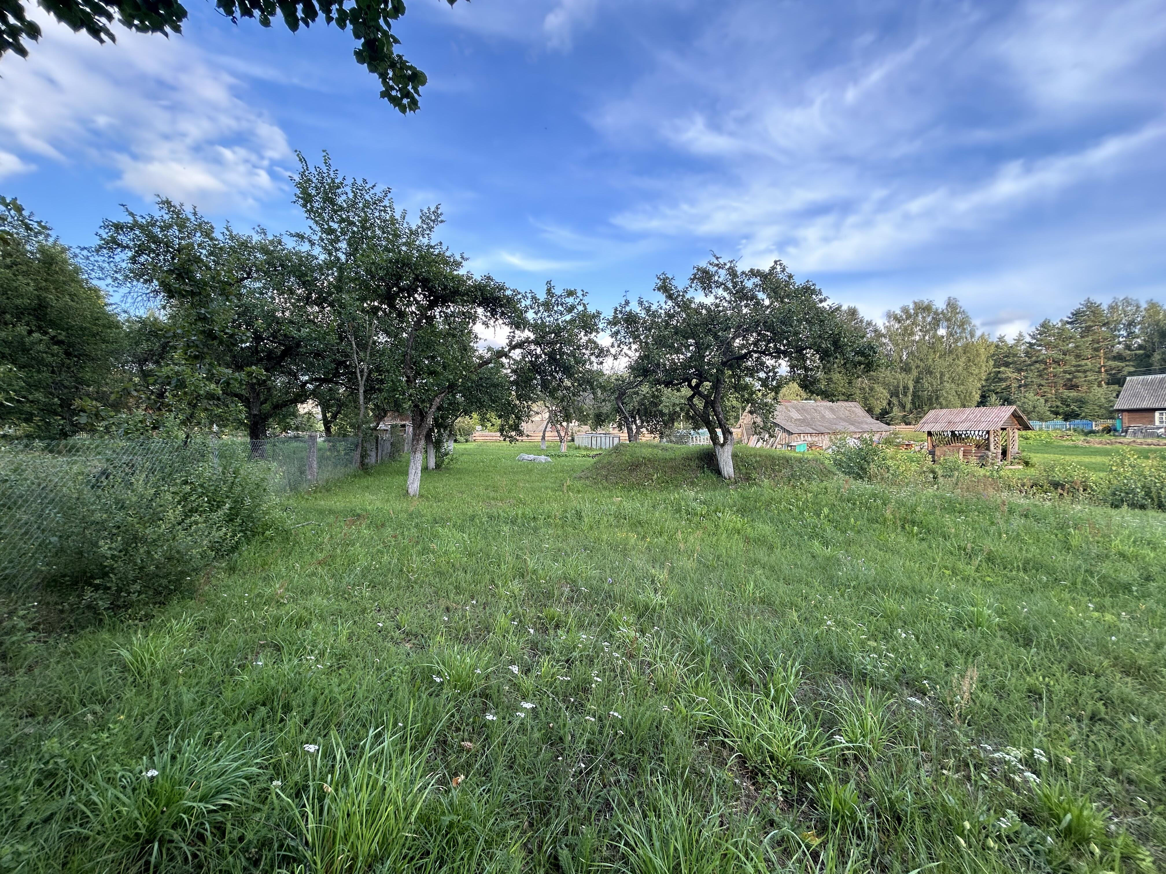 На участке располагаются баня, сарай, беседка, 2 парника, пруд, 2 колодца, второй погреб, плодовые деревья яблонь и слив, огород. Баня построена 10 лет назад, небольшая и уютная. Возле бани располагается беседка для отдыха. Есть 2 парника и большой сарай. Новый и крепкий забор со стороны улицы. Большая территория в 24 сотки позволяет реализовать множество возможностей. Участок чистый и аккуратный. Земля в частной собственности.