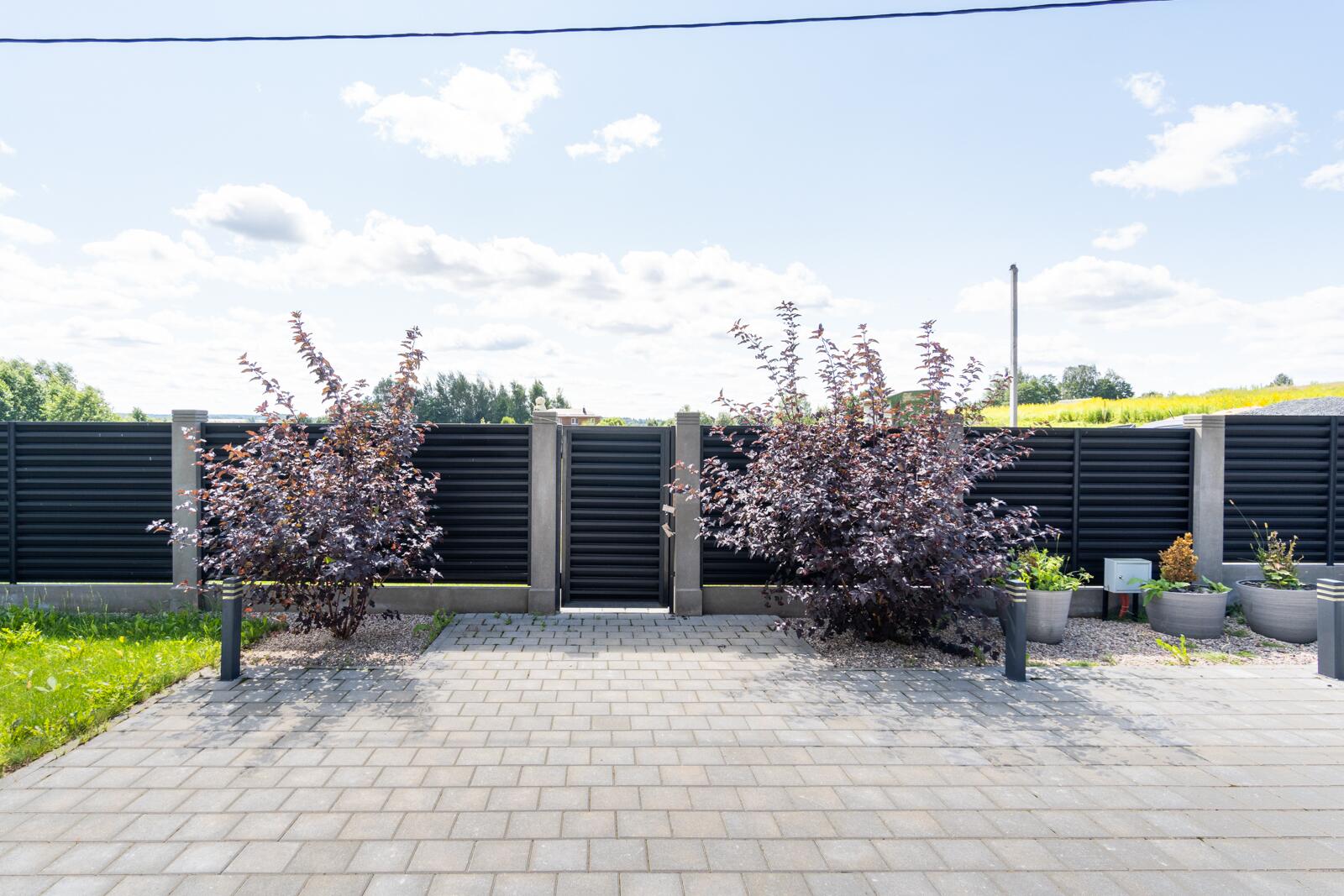 Впереди дома мощение плиткой.