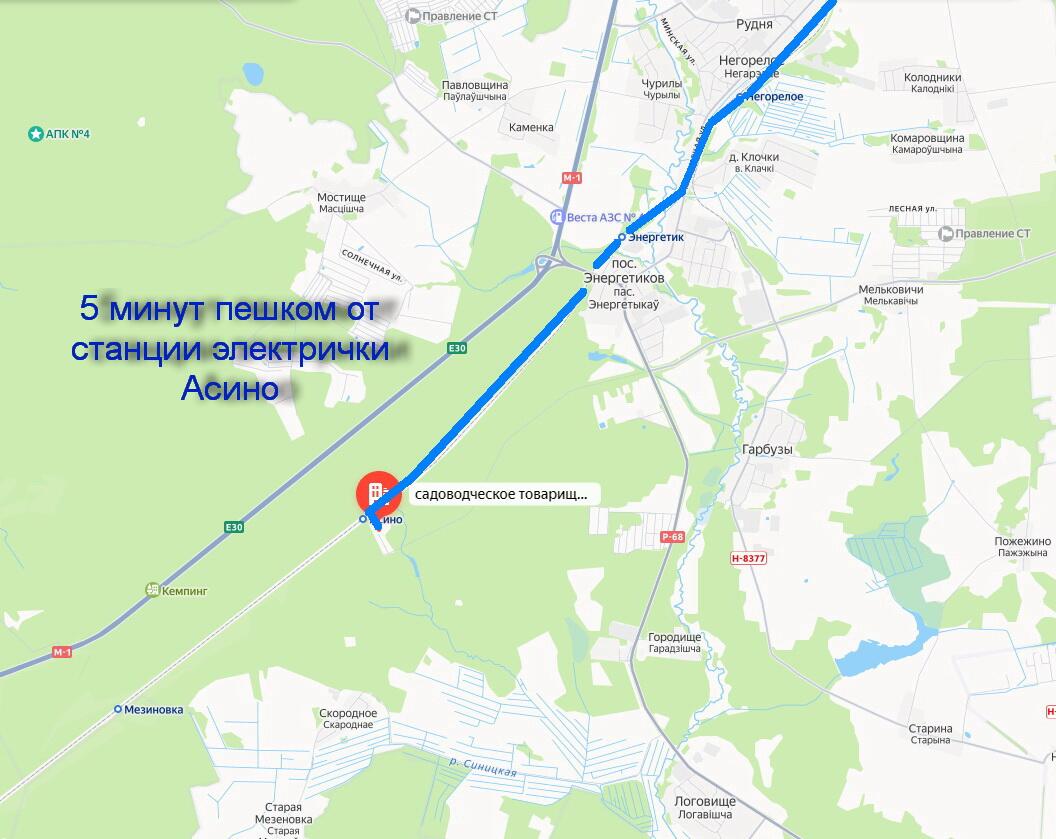 Отличное транспортное сообщение с Минском – 5 минут пешком до остановки Асино. На машине можно добраться по асфальтированной дороге до поселка, далее несколько километров по лесной грунтовой дороге.