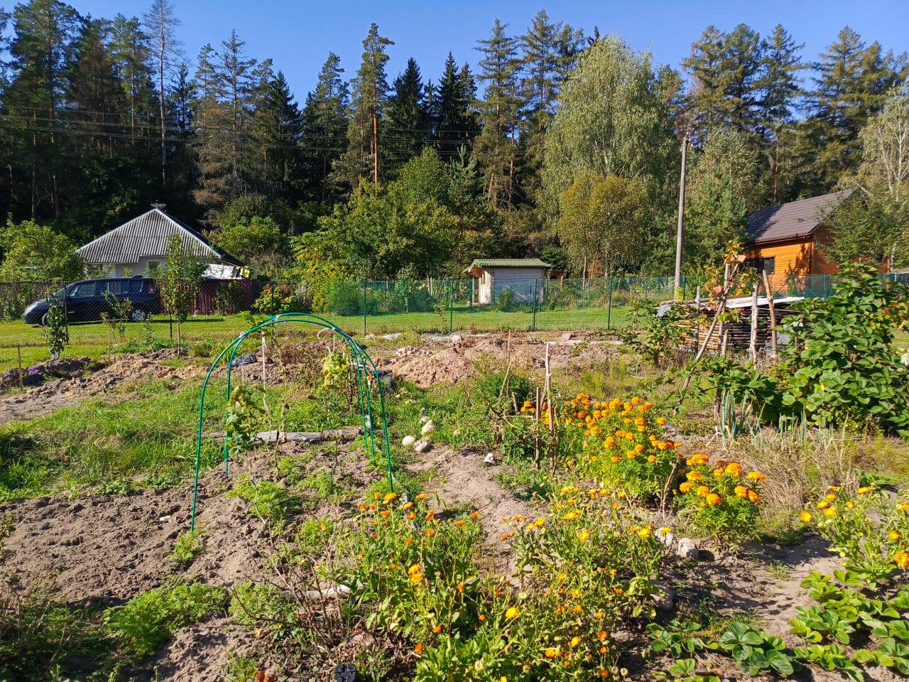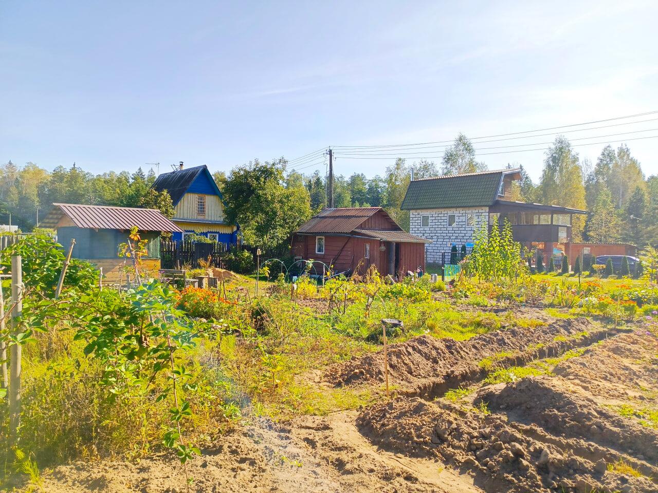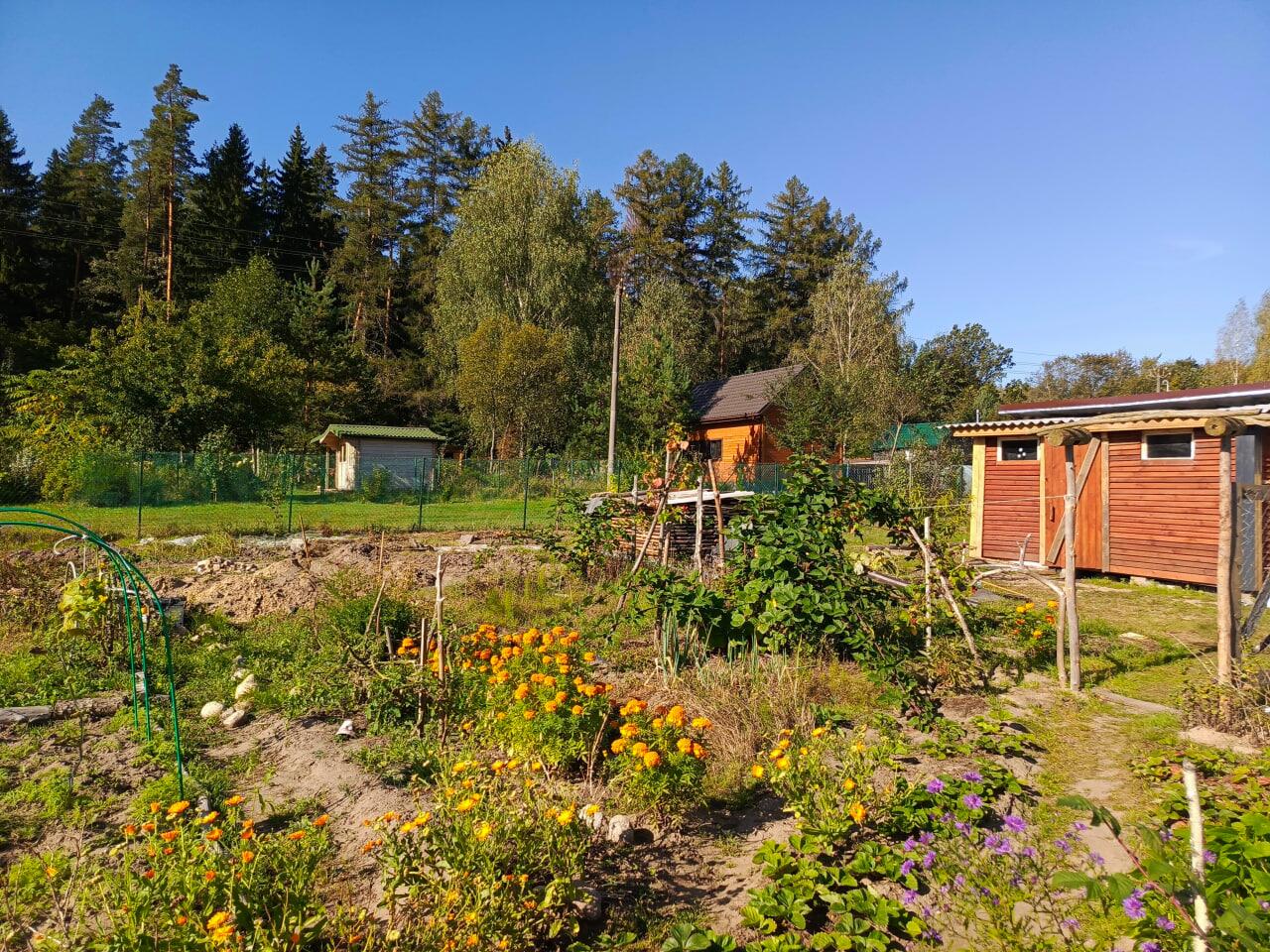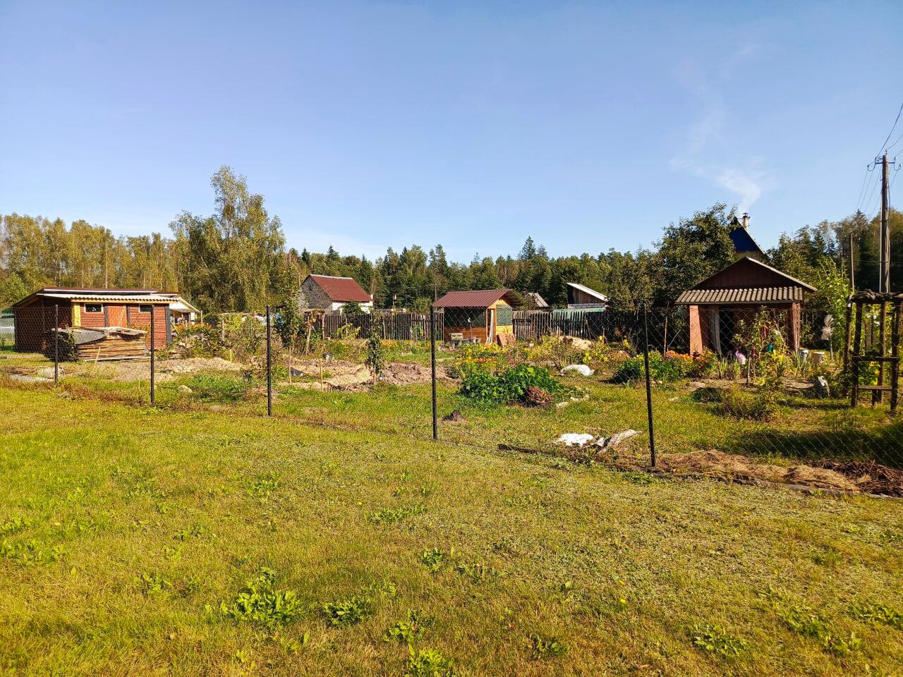 Участок (8 соток) угловой, ровный, солнечный, огорожен сеткой-рабицей, растут плодово-ягодные растения (три яблони, груша, абрикос, алыча, слива, грецкий орех, голубика, ежевика, калина, шелковица). Земля частично разработана и удобрена.