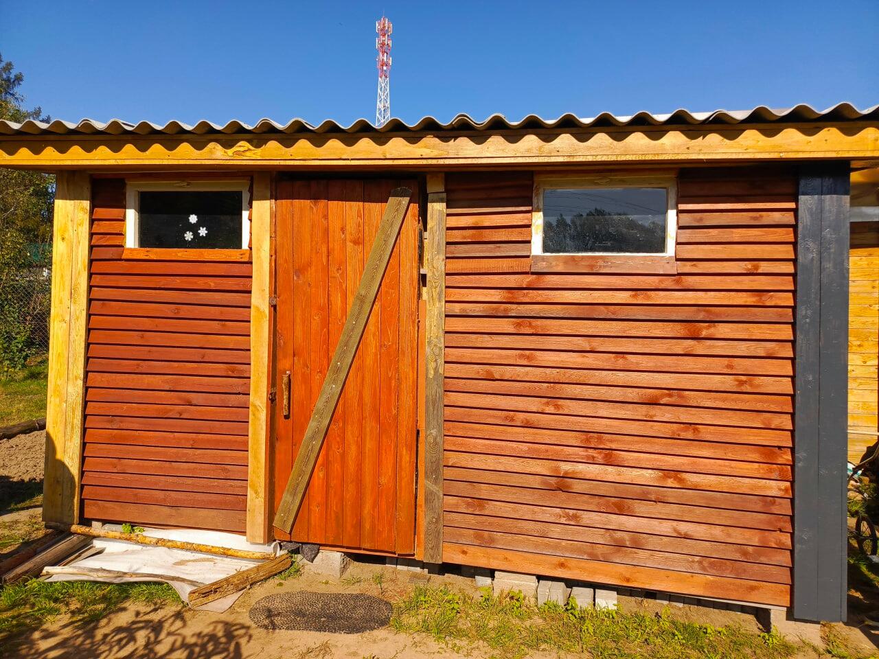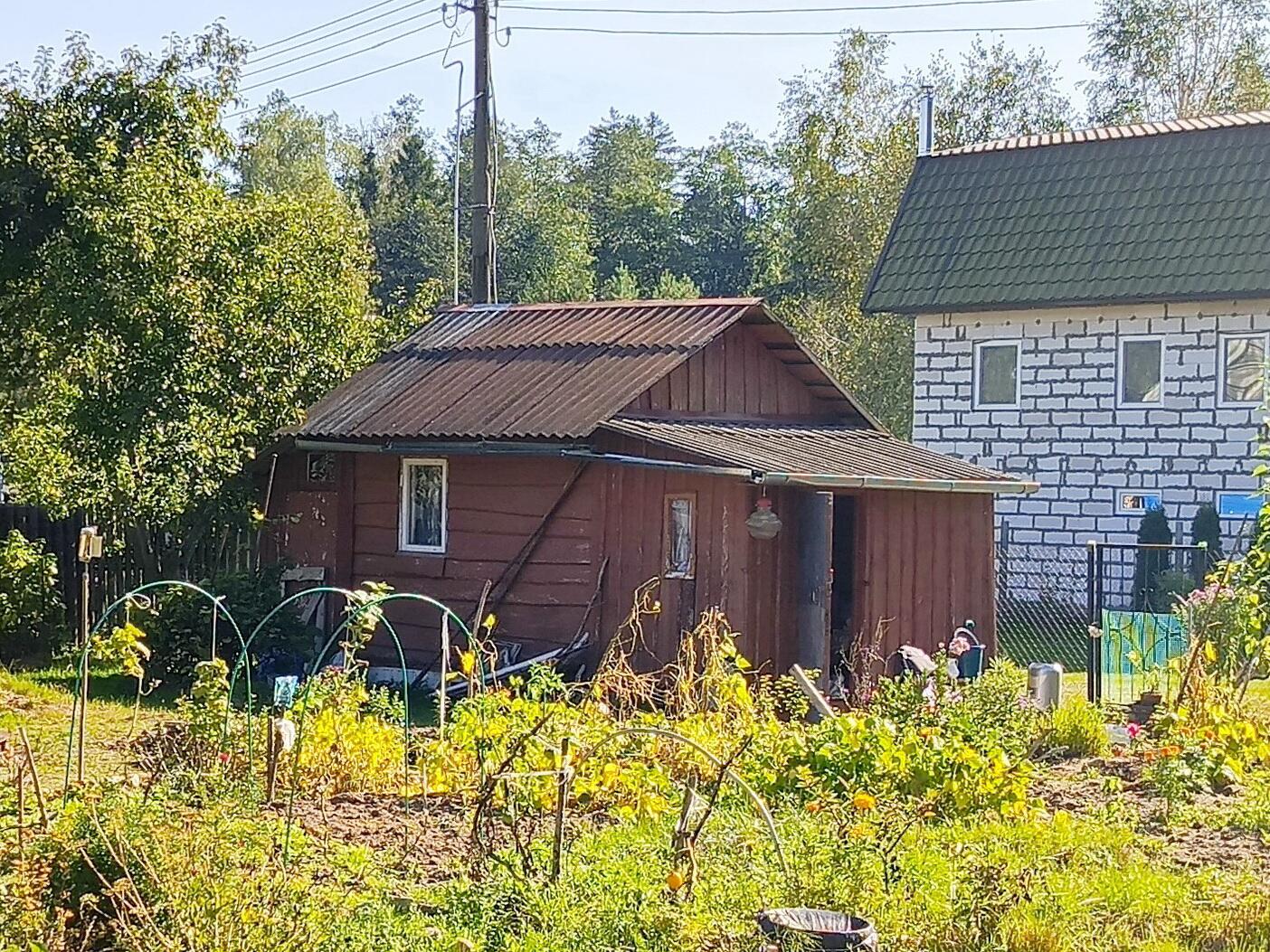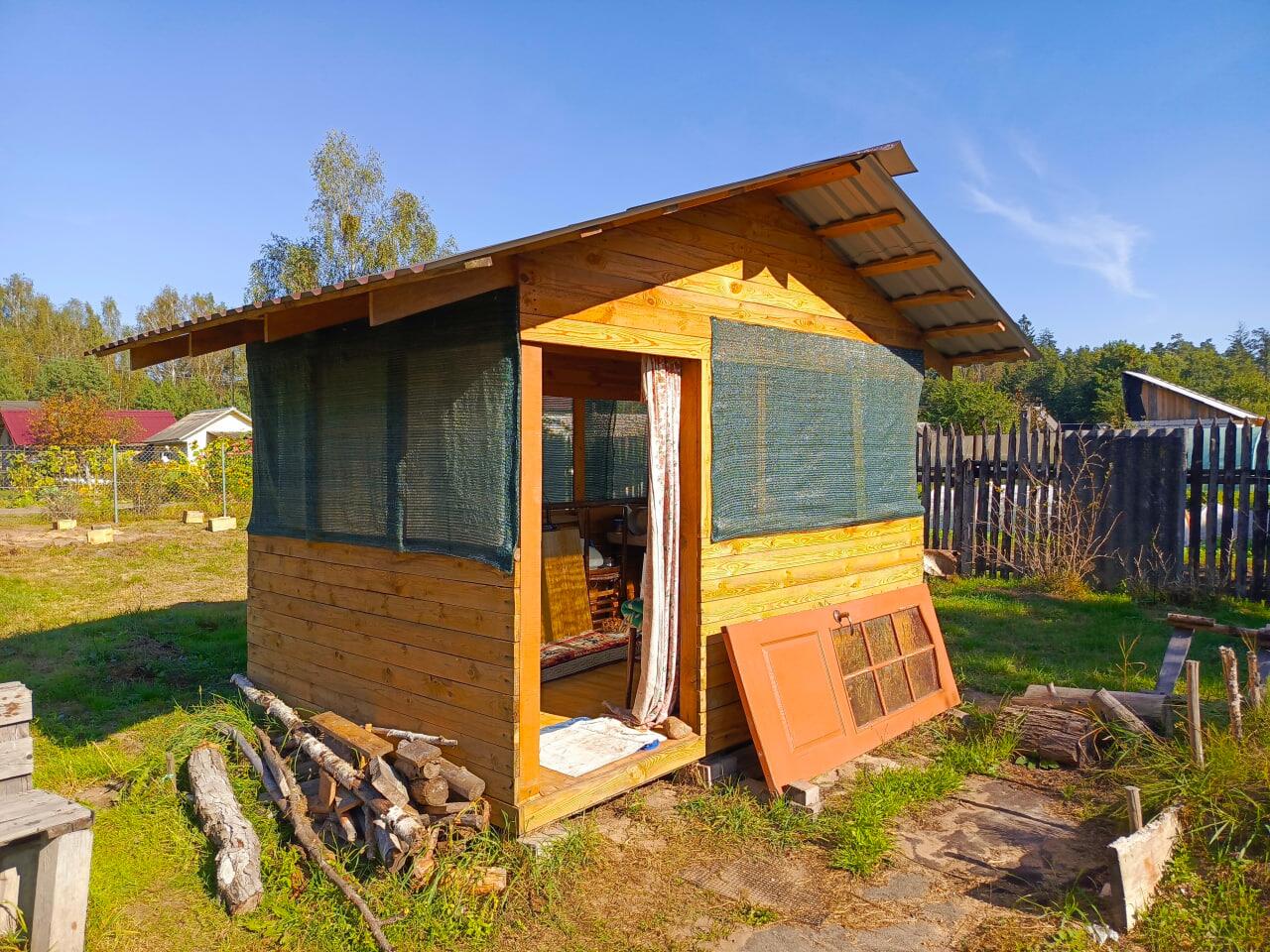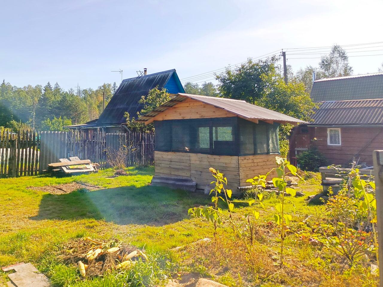 Есть сарай с туалетом (2мх4м) и беседка (2мх3м), все постройки обработаны спецсоставом для дерева. Много стройматериалов (доски, цемент, ламинат, утеплитель, двери). В половине сарая есть утепленный курятник.