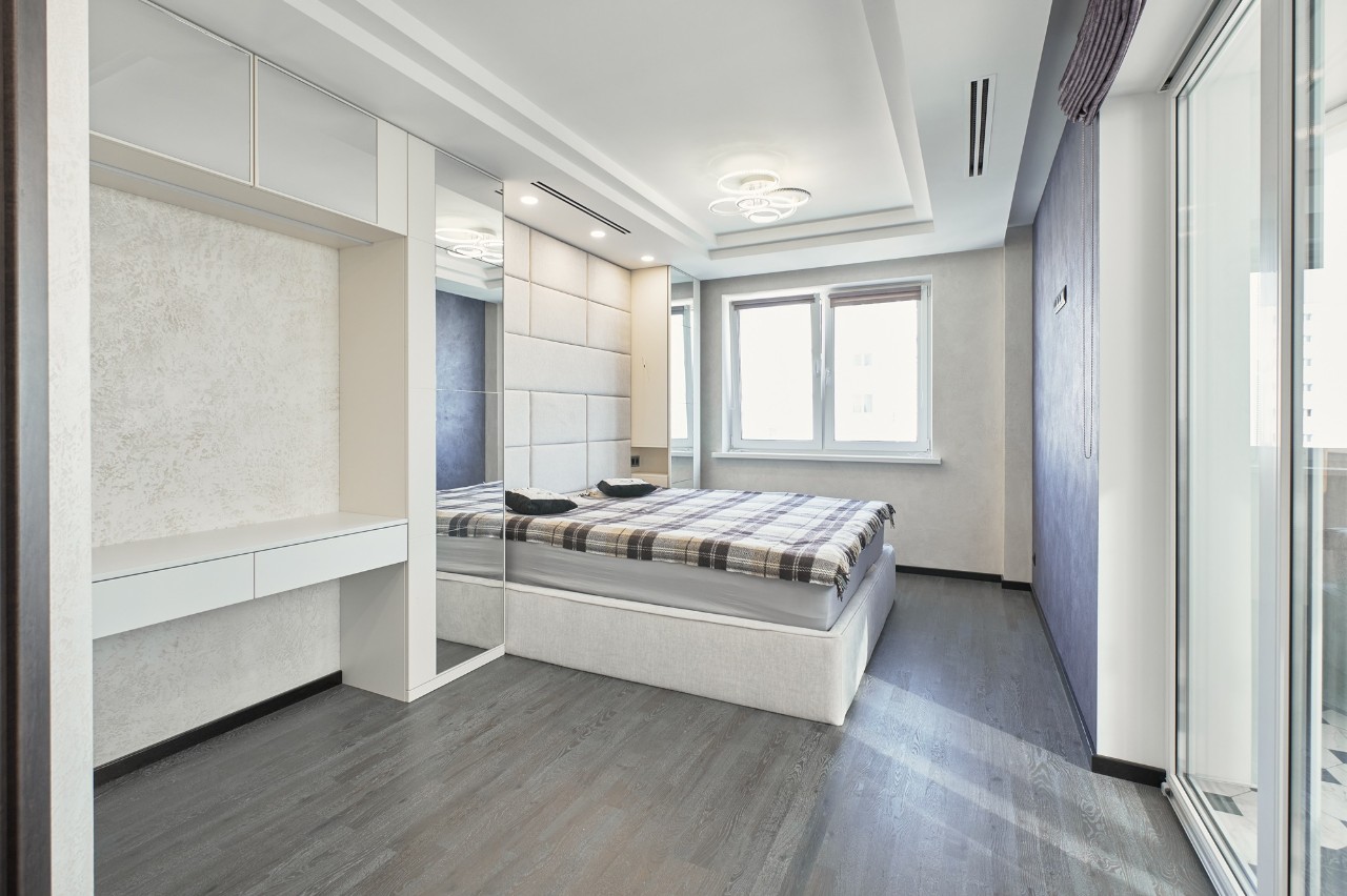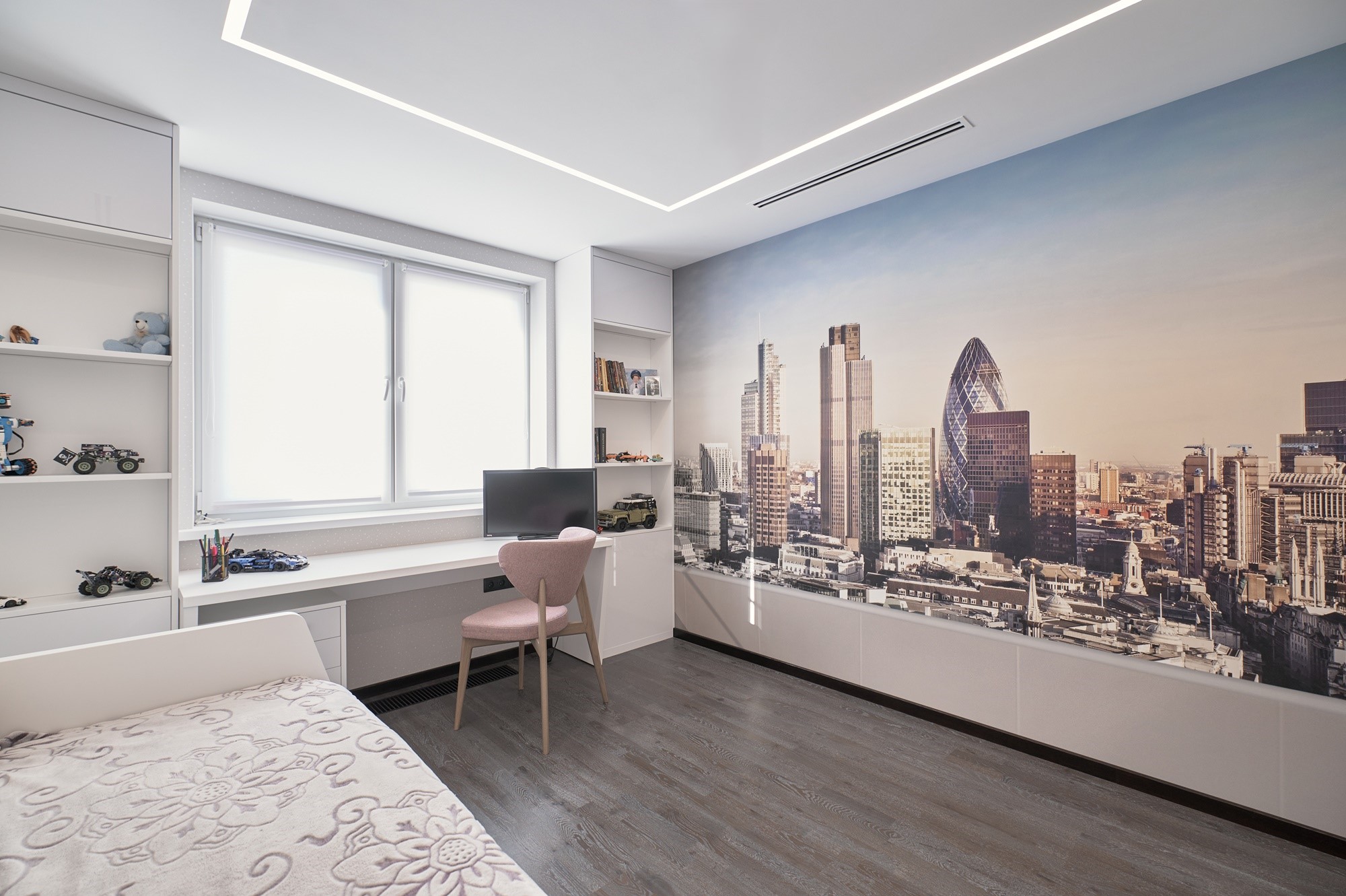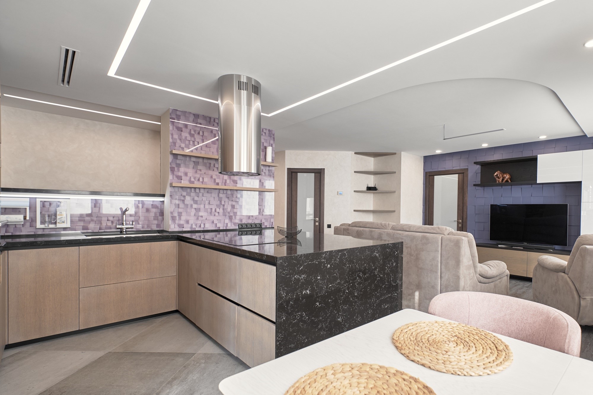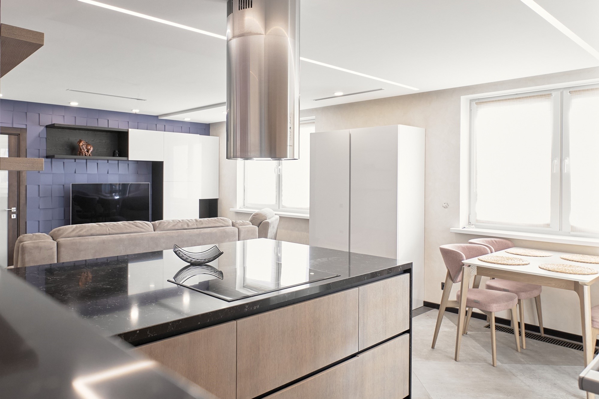 Современный ремонт, выполненный по дизайн-проекту с использованием качественных строительных материалов и оборудования. Все элементы изготовлены по индивидуальному заказу.