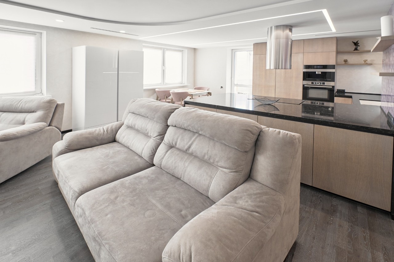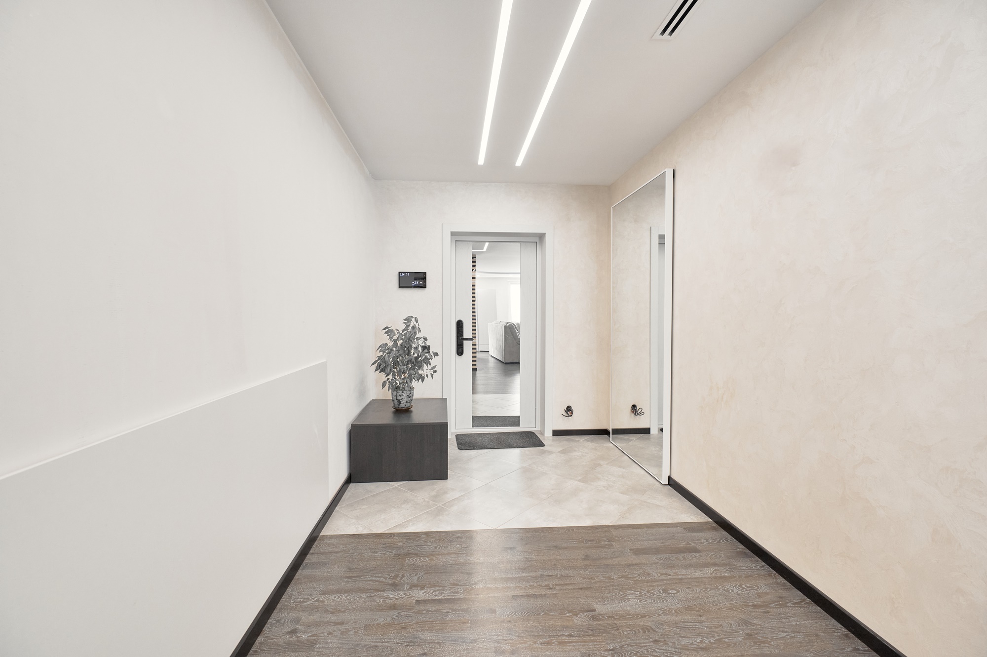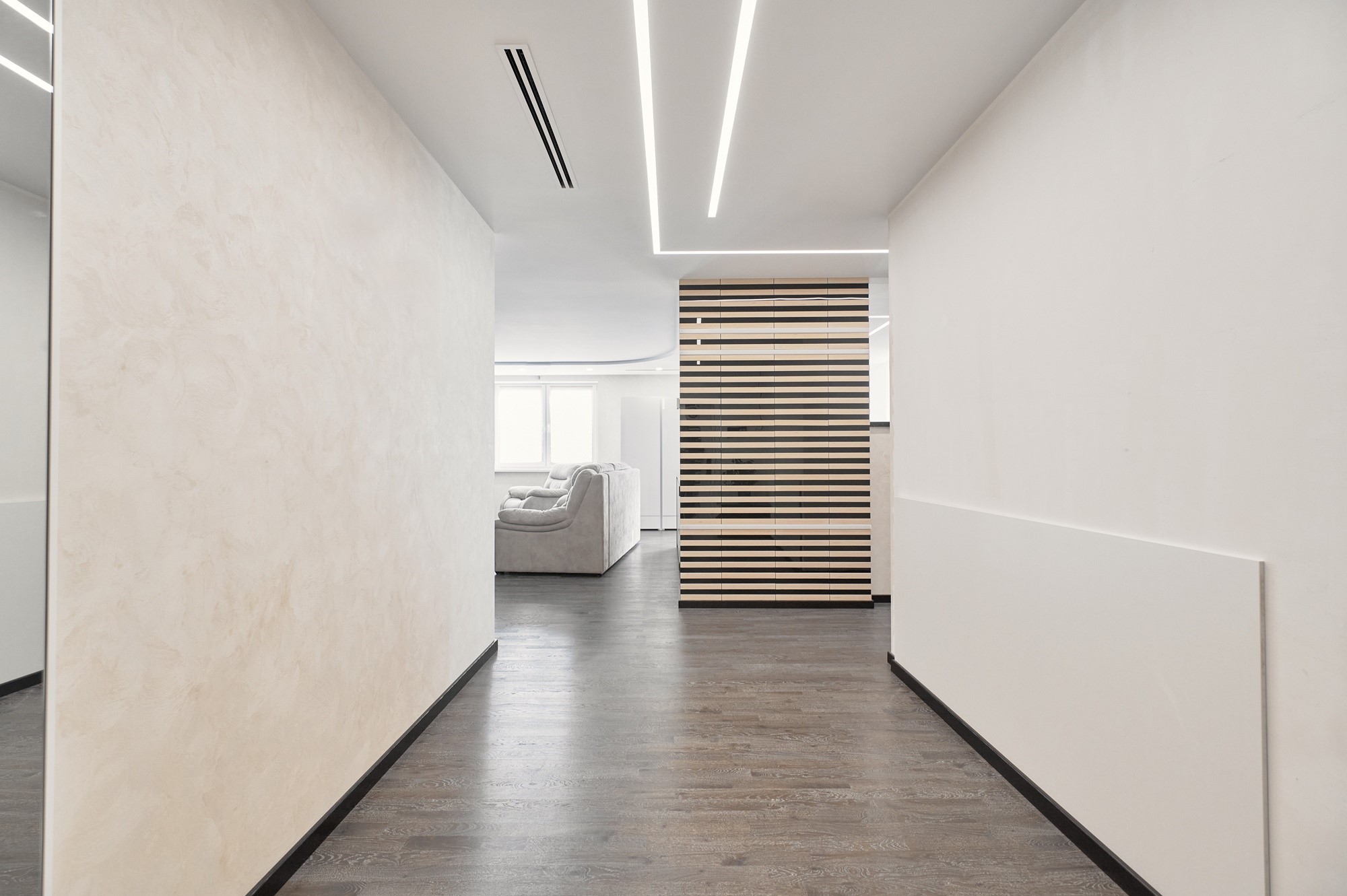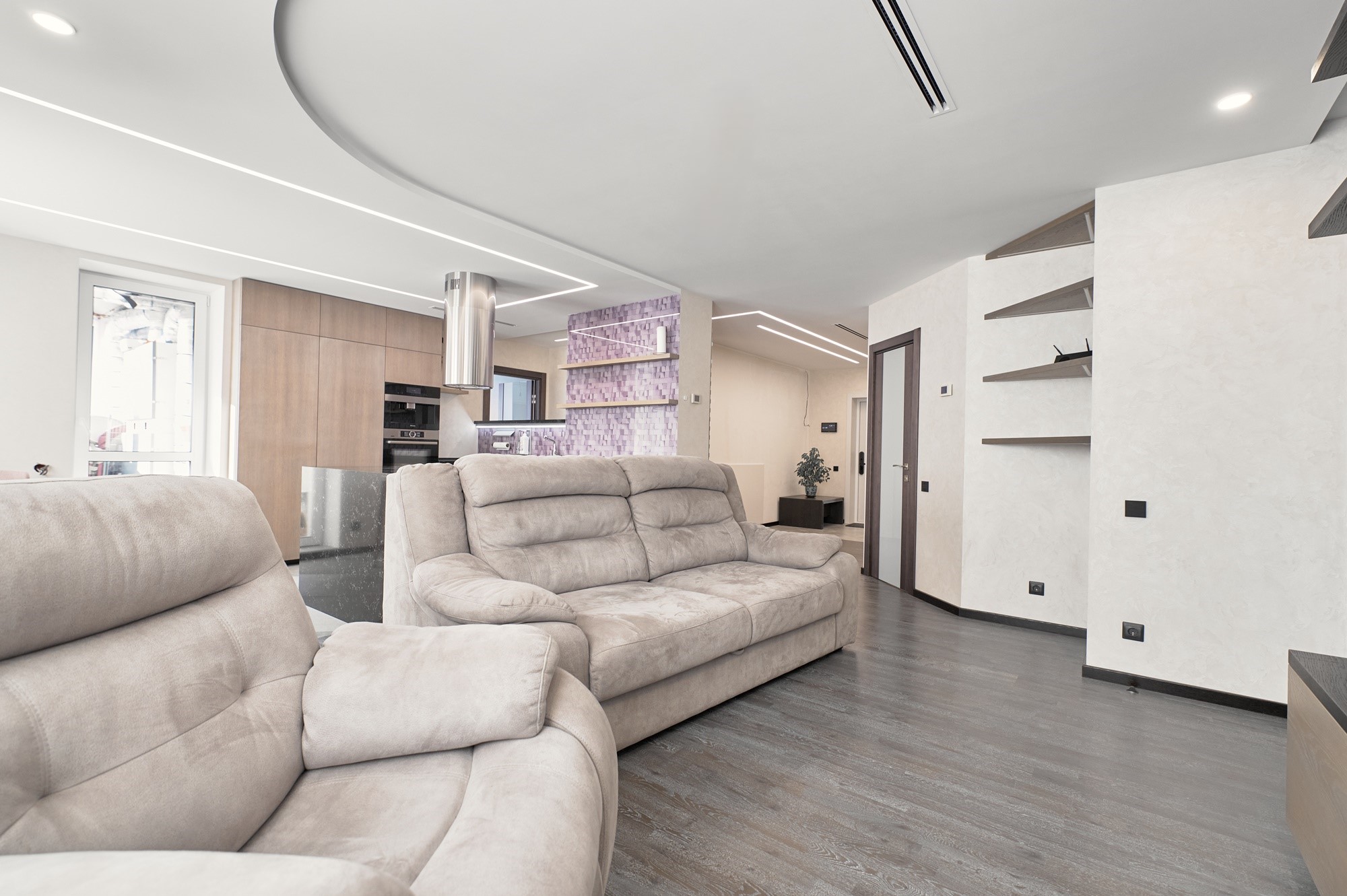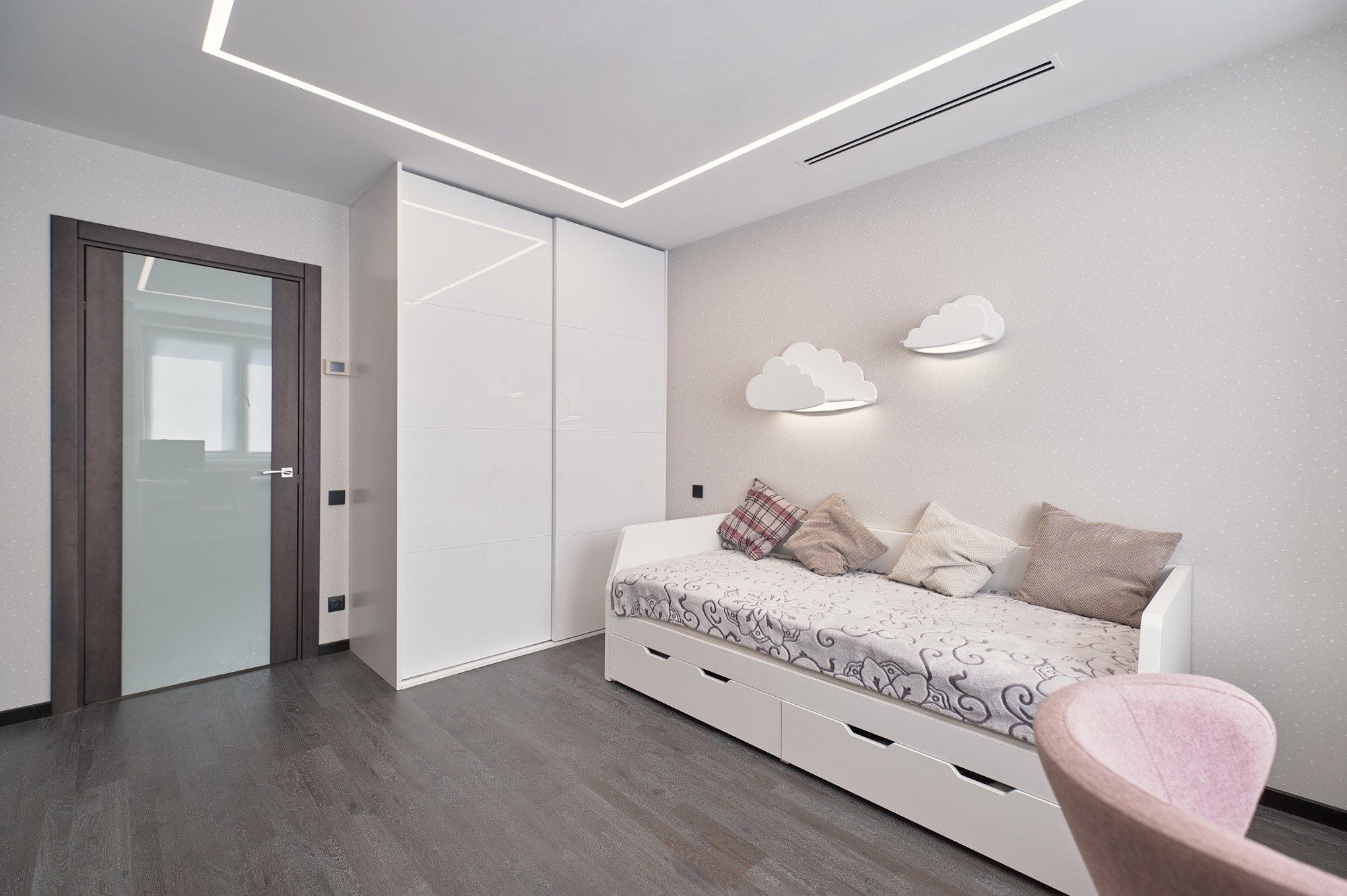Современный ремонт, выполненный по дизайн-проекту с использованием качественных строительных материалов и оборудования. Все элементы изготовлены по индивидуальному заказу.