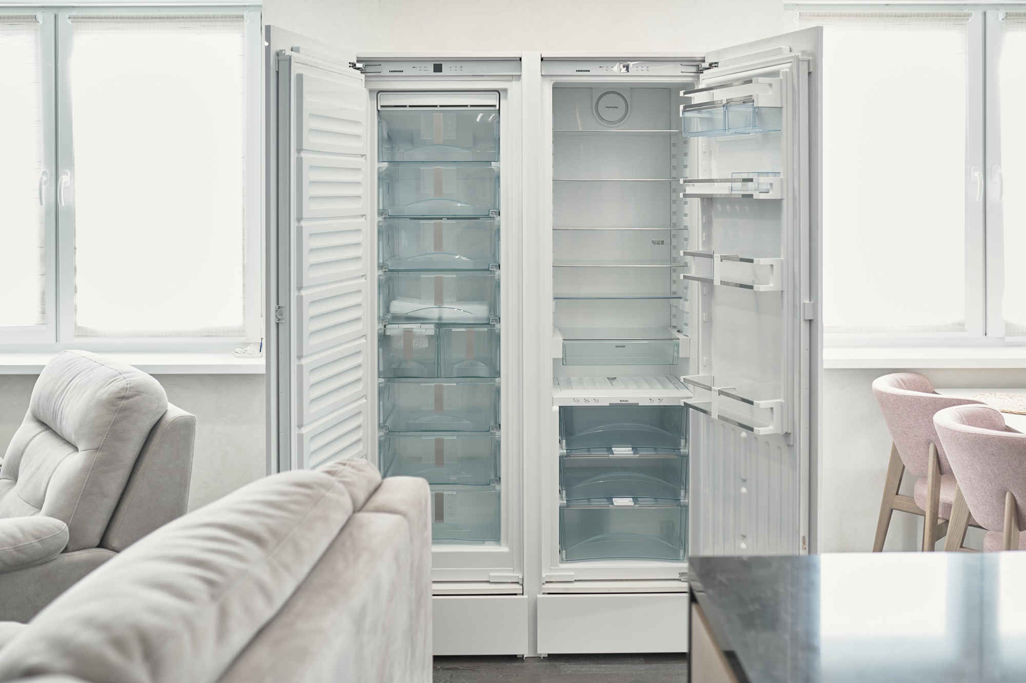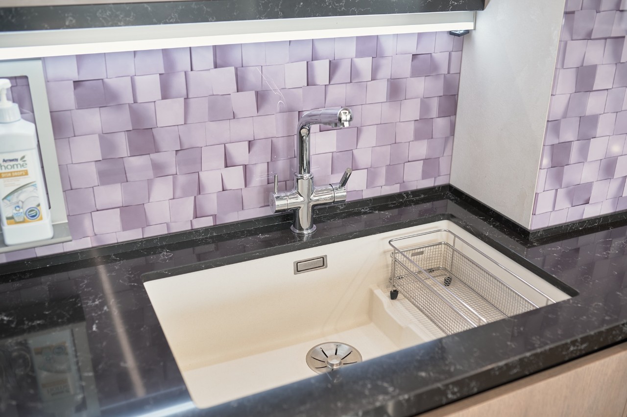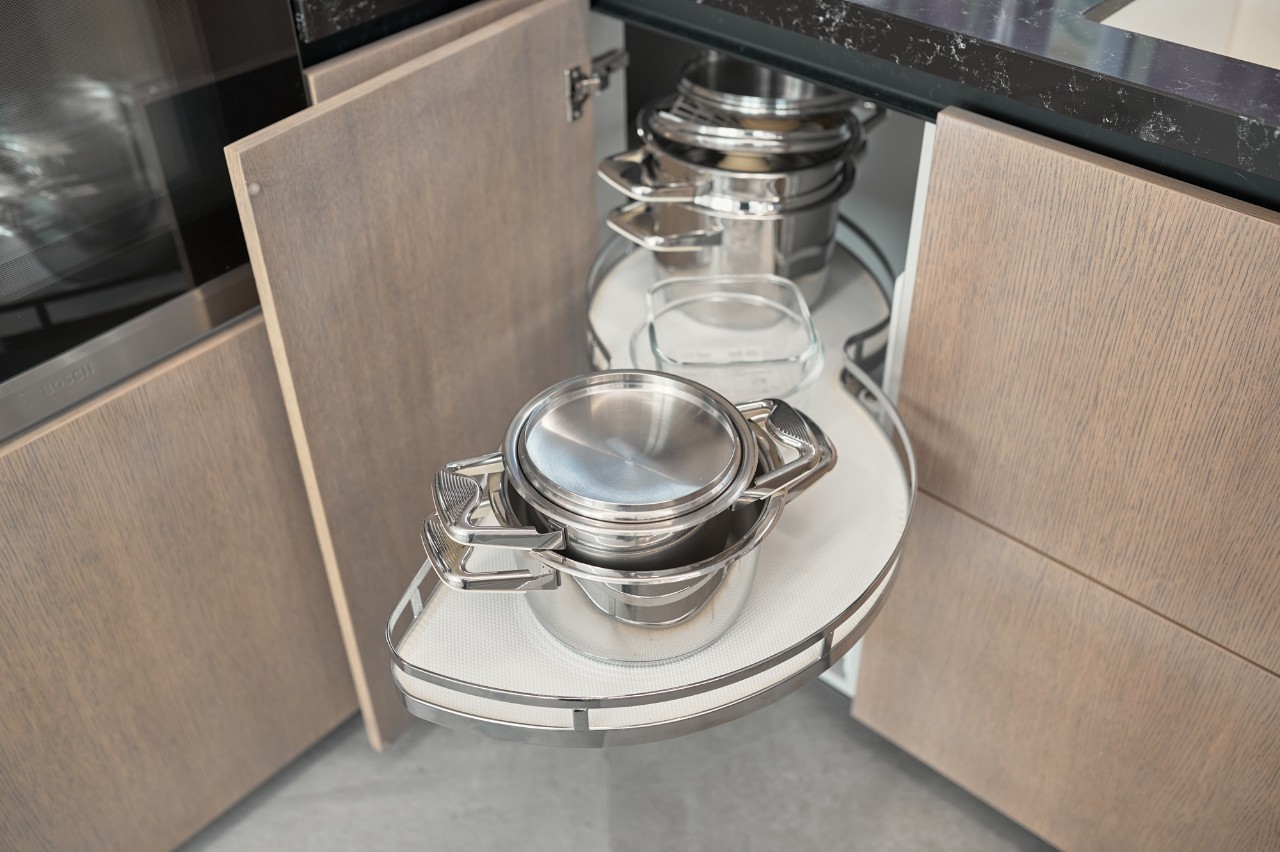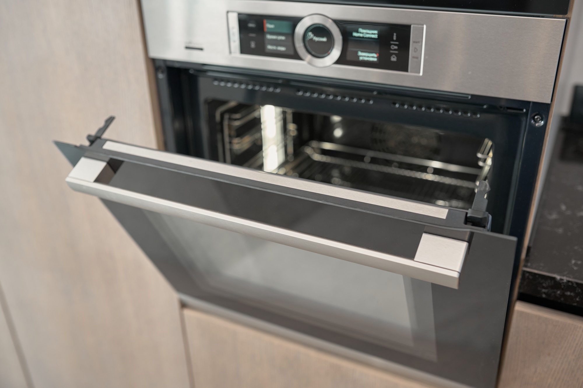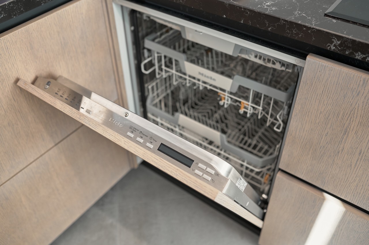 Встроенная кухня из шпона, вся гарнитура Blum. Бытовая техника премиум класса. Индукционная варочная панель Bosh (6 конфорок), духовой шкаф Bosh c функцией СВЧ, посудомоечная машина Mile, встроенная кофемашина Бренда Mile, встроенный холодильник из акрила side by side "Liebherr", стиральная машина Mile. Столешница из кварцевого камня (производитель Belenco spa Black). Мойка бренда BLANCO. Телевизор Samsung .