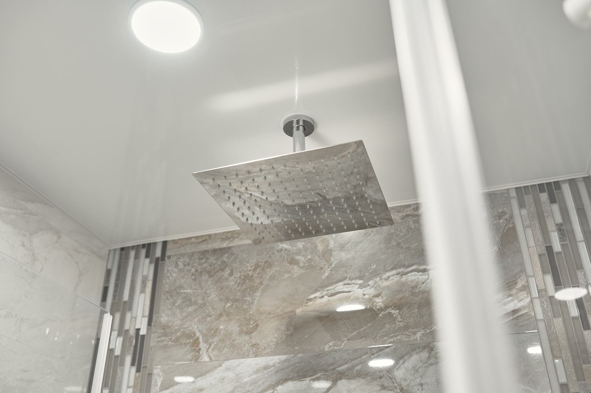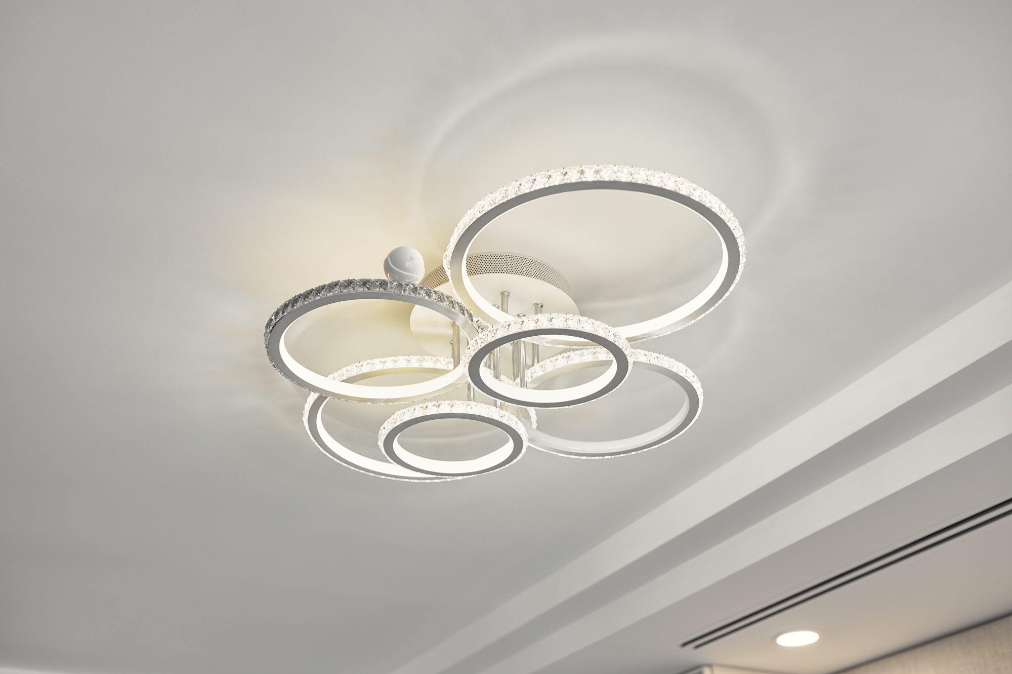 По всей квартире потолок из гипсокартона со встроенными светильниками, в ванных комнатах натяжные потолки.