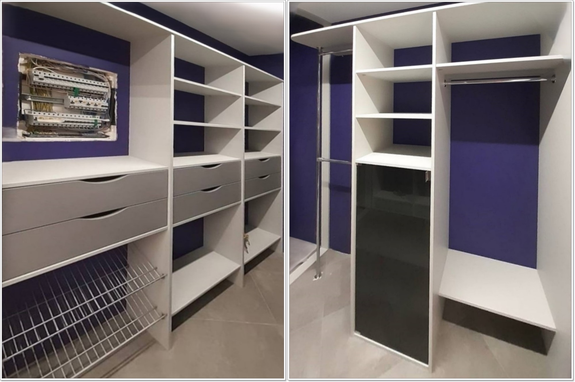 На стенах венецианская штукатурка «мокрый шелк», фурнитура с магнитными замками в межкомнатных дверях. На всех полках в мебели установлена подсветка.
