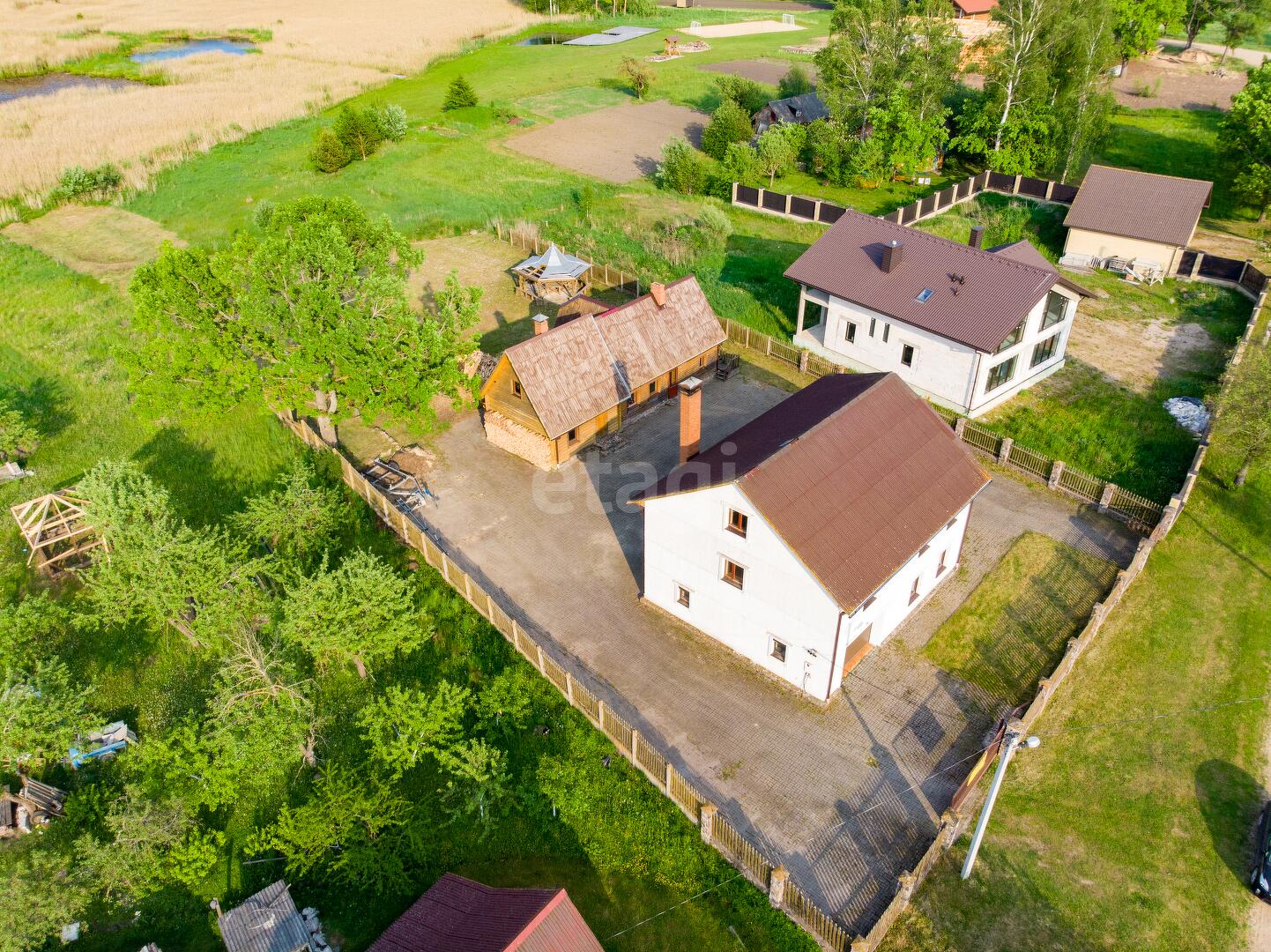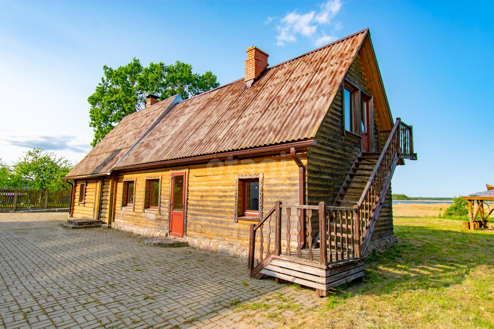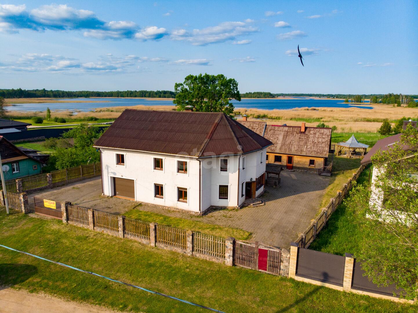 На участке гармонично расположились жилой хозяйский дом со всеми удобствами, гостевой дом с баней, банкетным залом, жилыми комнатами, беседка с барбекю и видом на озеро Снуды! Участок в зоне застройки вымощен тротуарной плиткой, его площадь позволяет реализовать любые ландшафтные решения.
