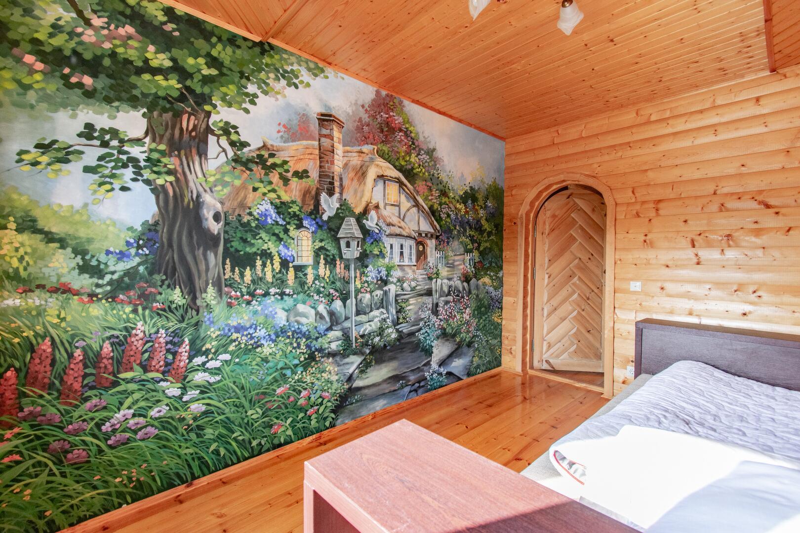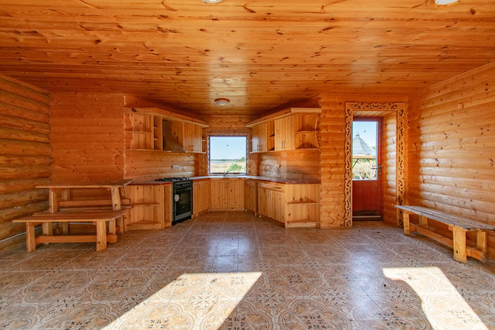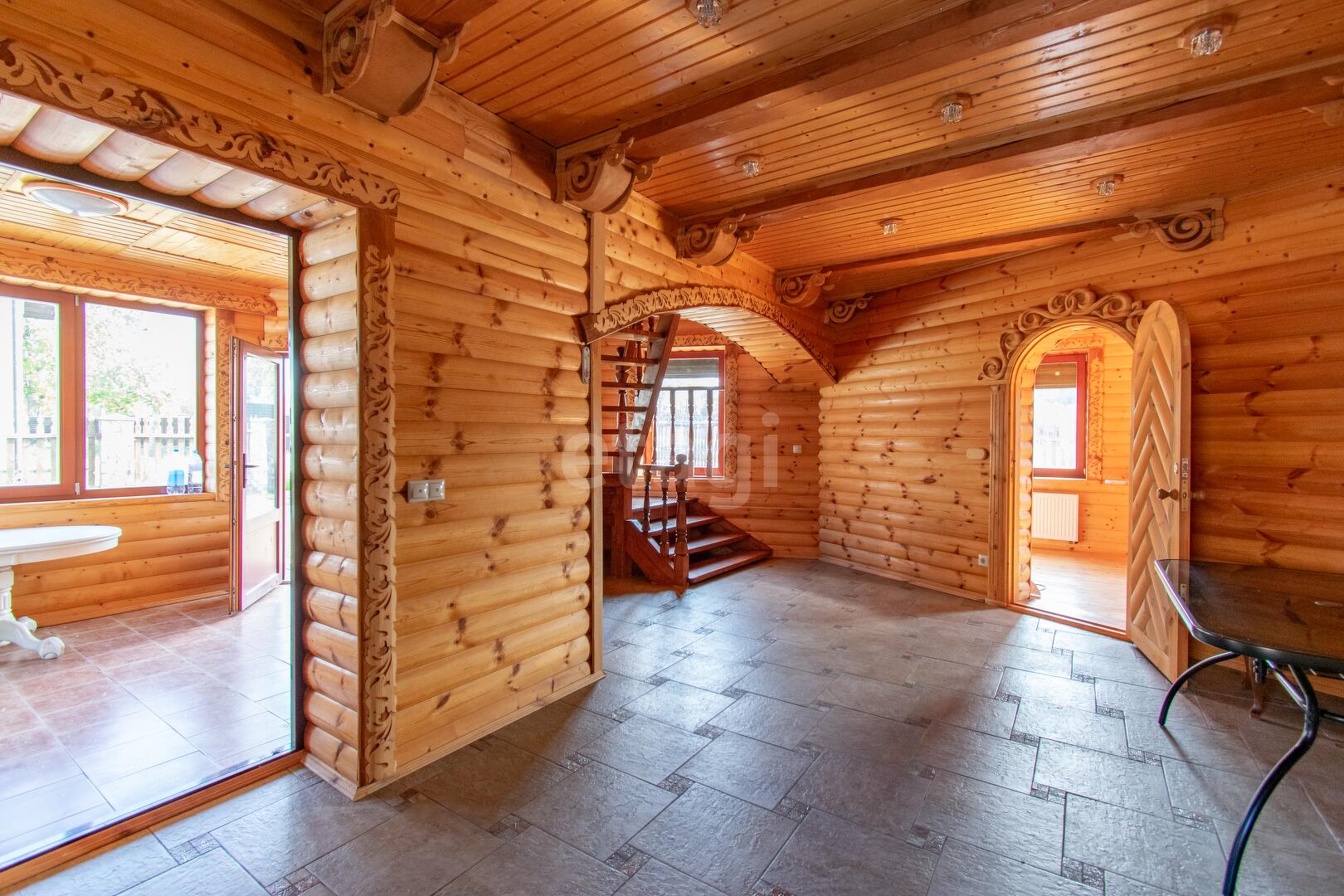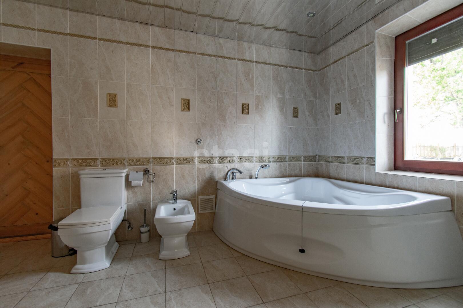 Жилой трехуровневый дом, общей площадью 220 м.кв. позволяет комфортно разместить большую семью, либо компанию друзей, здесь хватит места всем! Внутренняя отделка полностью выполнена из дерева, дверные и оконные проёмы декорированы изразцами ручной работы, межкомнатные двери деревянные ручной работы. Убранство трех спален на втором этаже представлено ручной росписью стен, выполненное профессиональным художником.