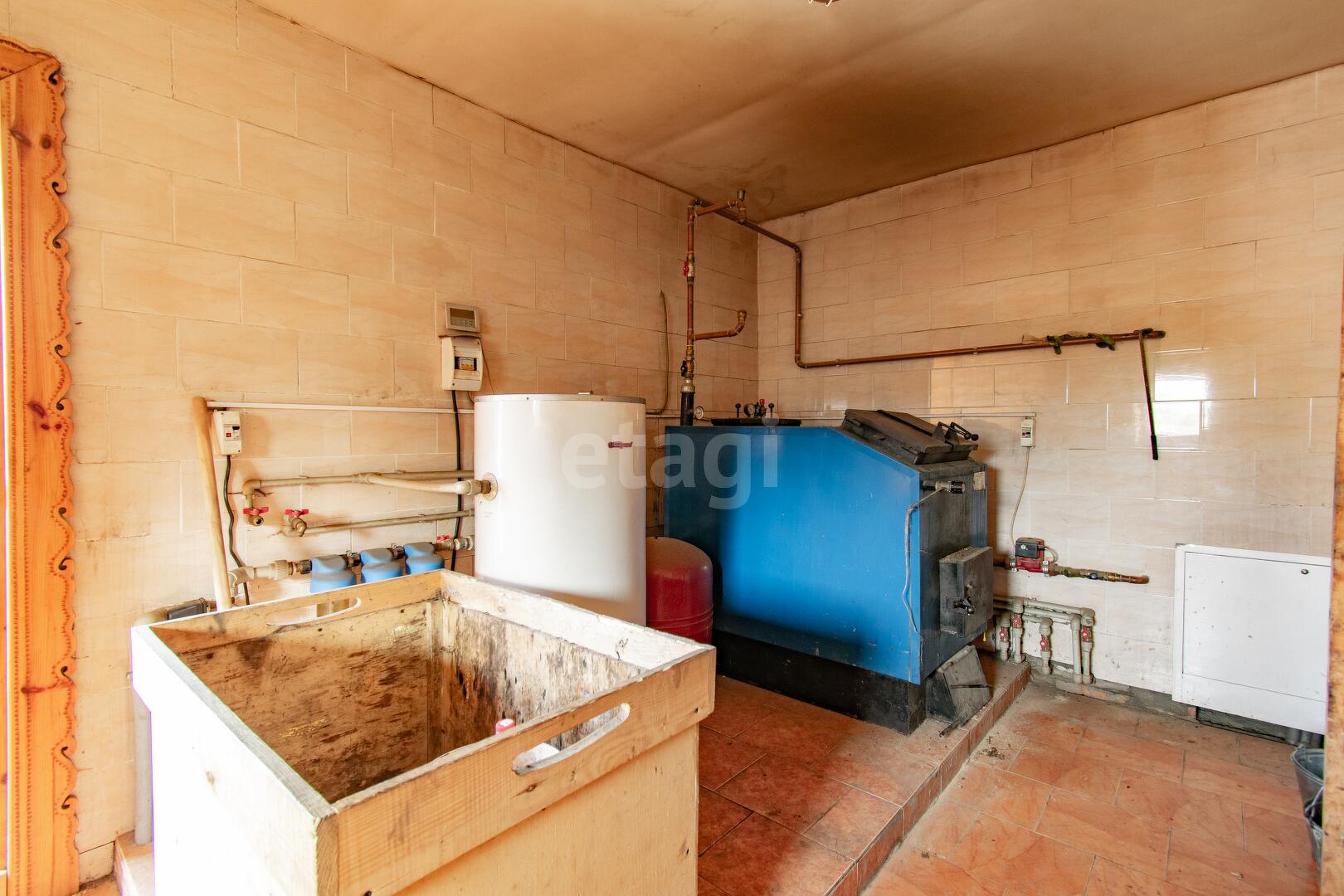 Дом полностью автономен, все необходимое оборудование установлено в котельной 13 м. кв. на первом этаже: автоматизированный котел на твердом топливе, бойлер для горячего водоснабжения, расширительный бачок. Водоснабжение дома организовано из собственной скважины с системой фильтрации, канализационная система местная, электроснабжение центральное