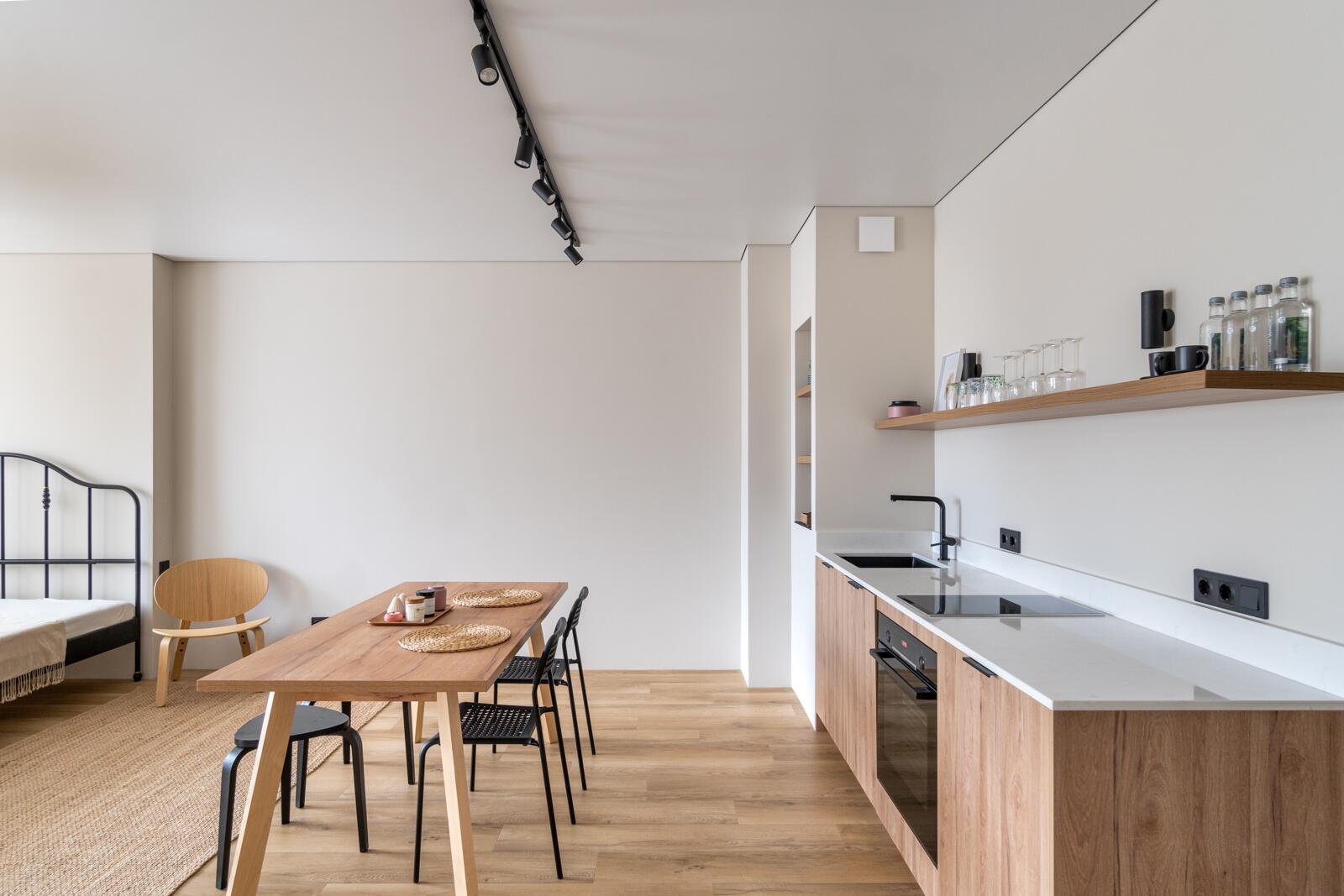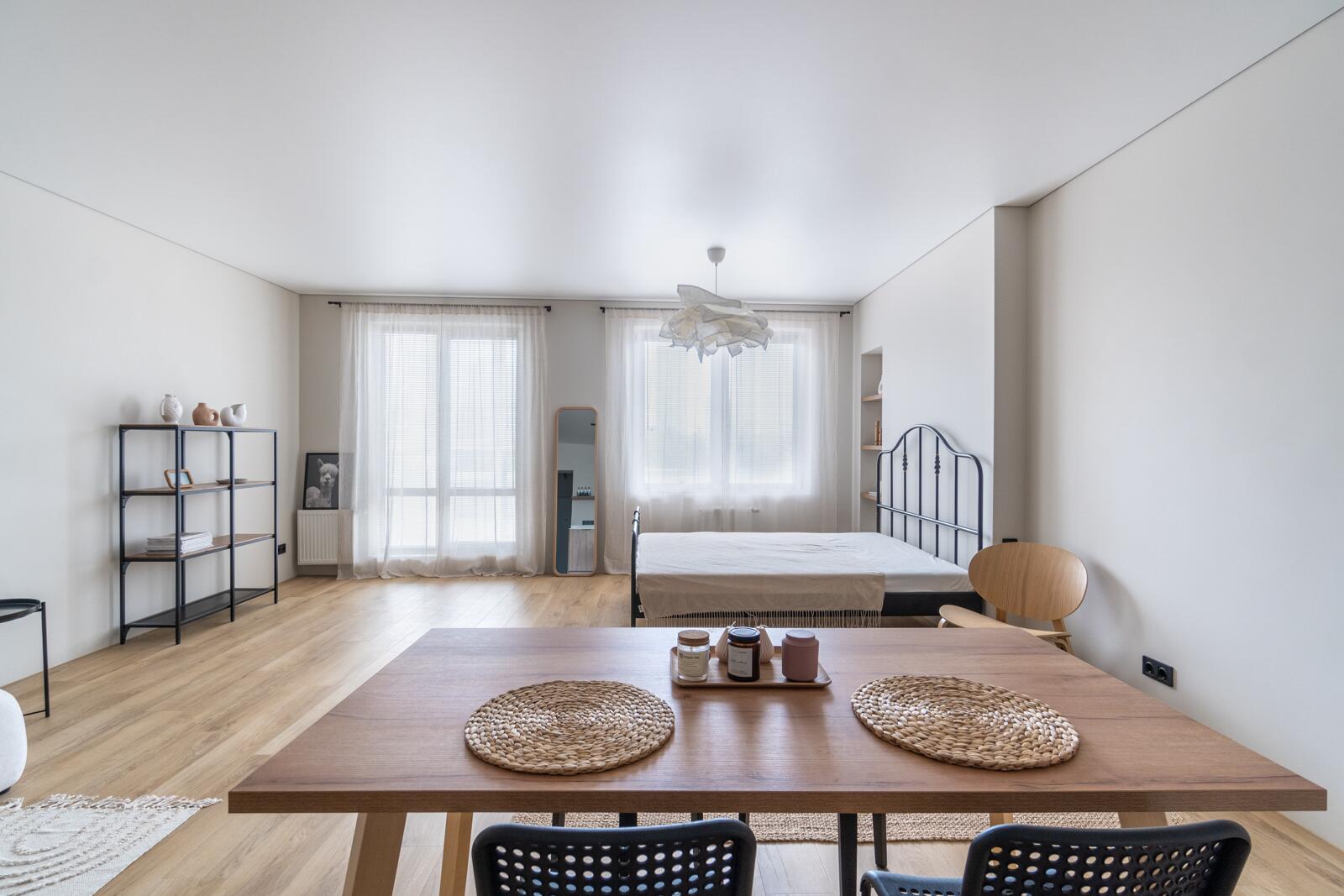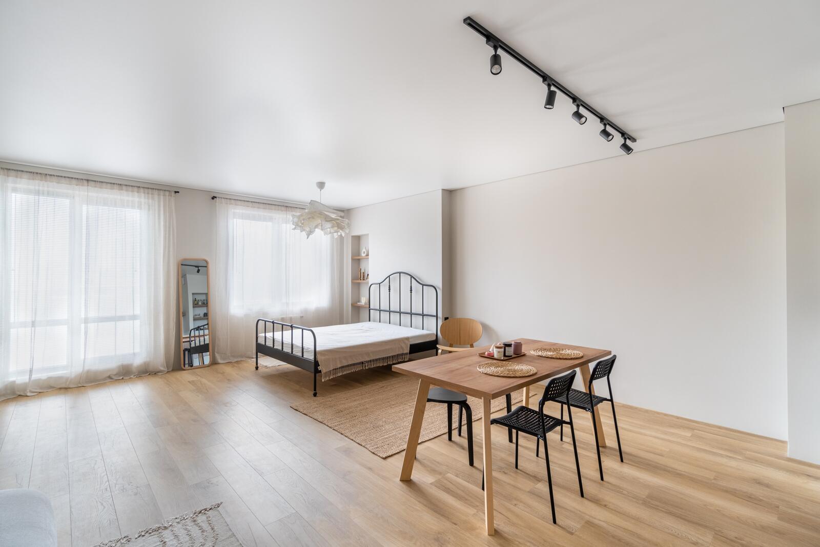Современная студия вцентре города с хорошо развитой инфраструктурой и наличием зеленых зон для отдыха и прогулок.