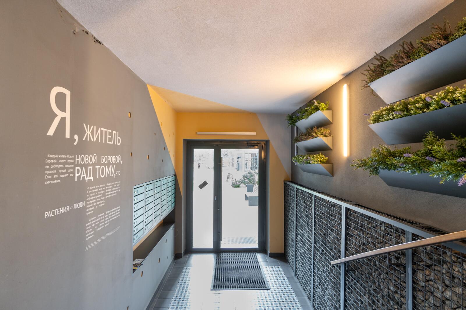 Дворовая территория огорожена. Парковочные места, организованные для жителей дома, закрываются шлагбаумом. Для удобства здесь установлены зарядные станции для электромобилей. Возле дома имеется открытый гостевой паркинг.