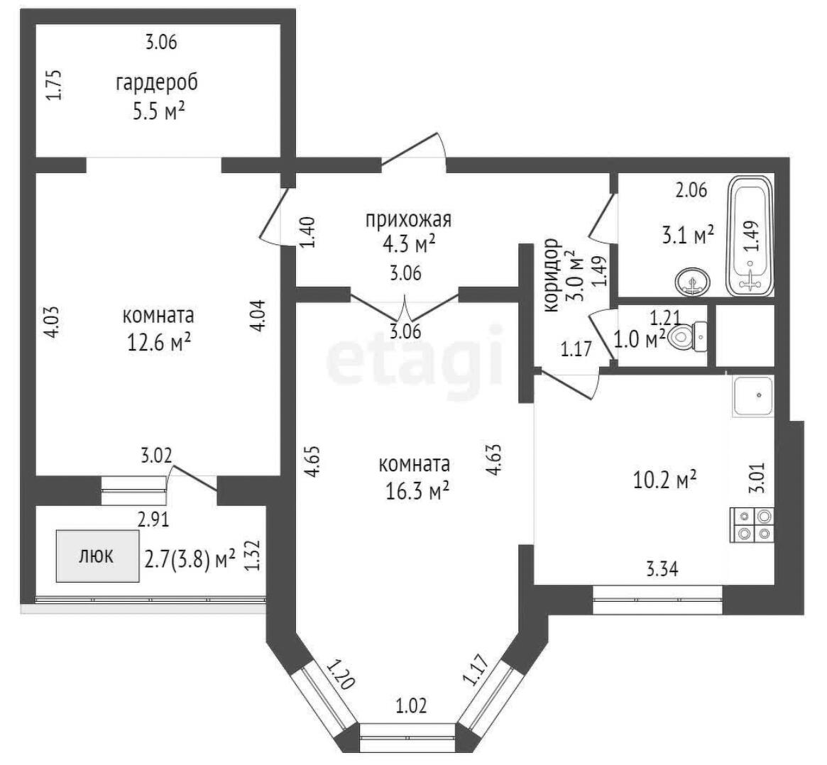 Квартира имеет интересную планировку и полностью готова к проживанию.