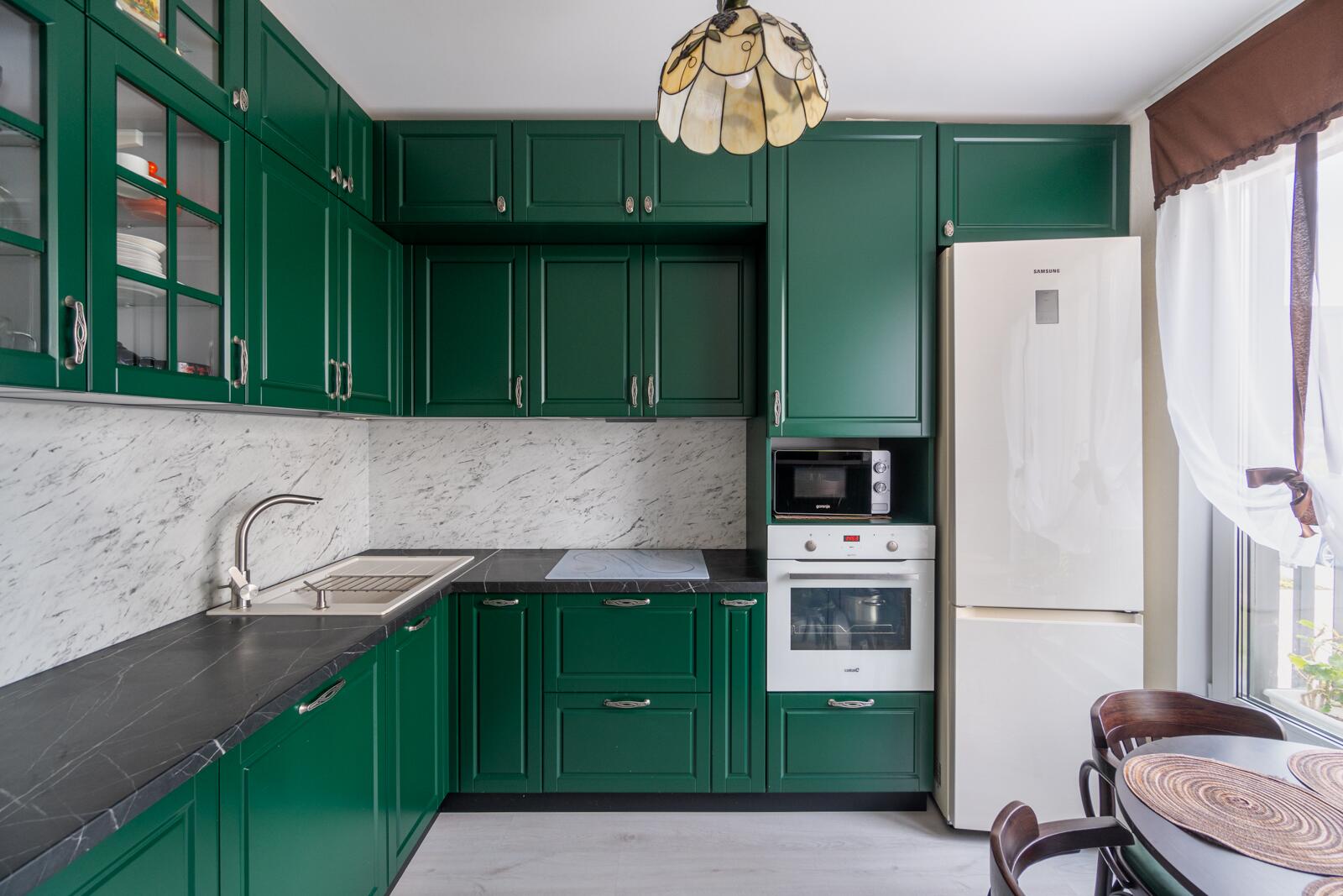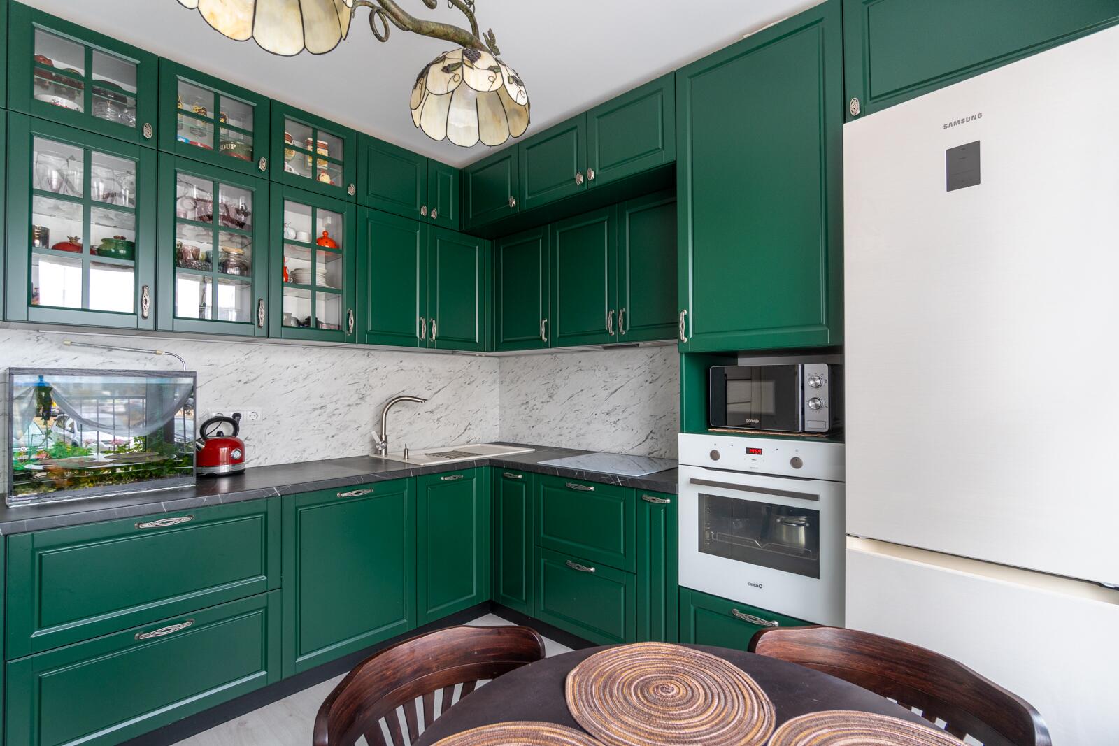 Имеется холодильник Samsung, посудомоечная машина Maunfeld, варочная панель Cata, вытяжка Exiteq, СВЧ Gorenje, стиральная машина LG, телевизор LG.