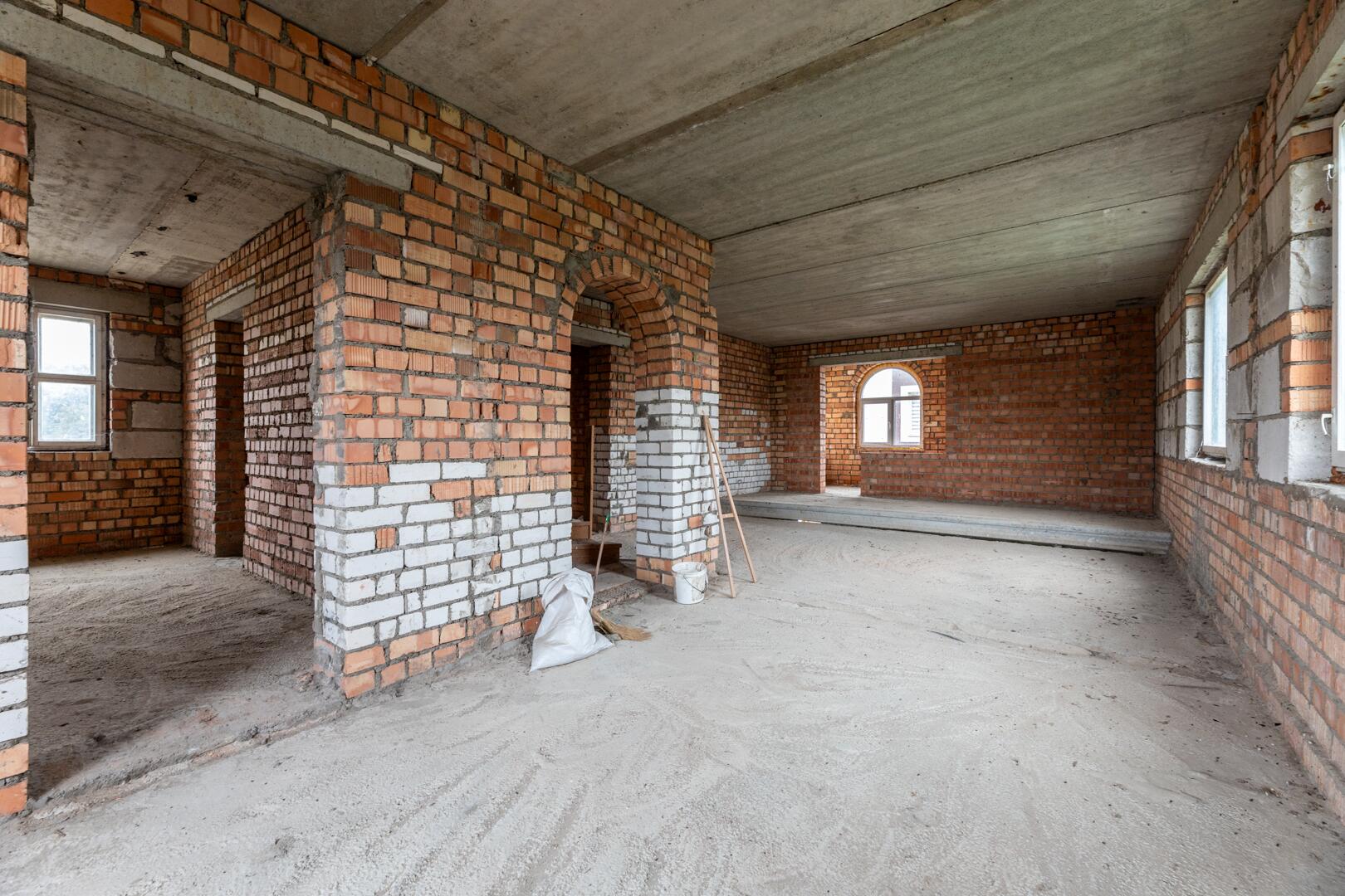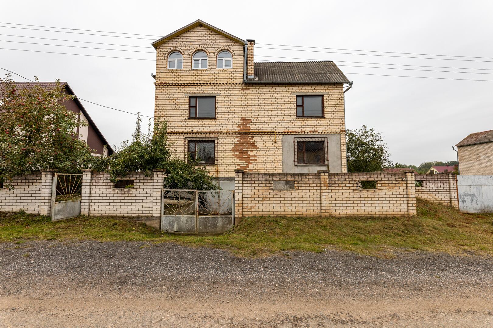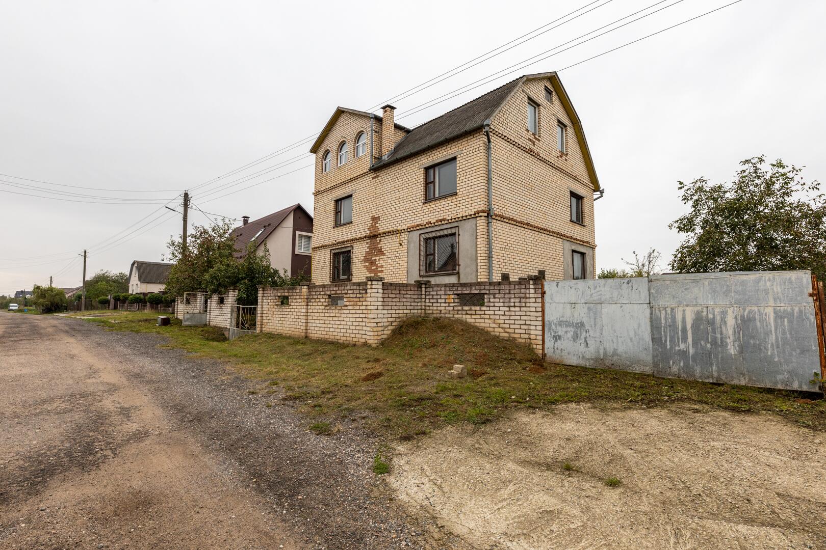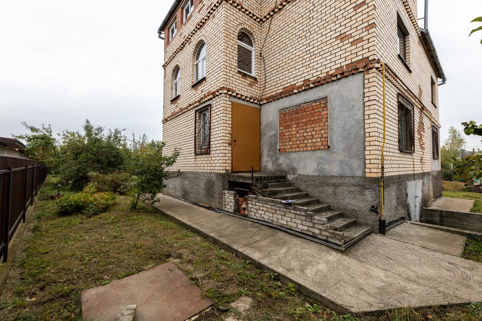 Дом состоит из 3 этажей с подвалом и гаражом. Общая площадь дома 268,4 м2. В доме 8 больших комнат. Фундамент дома построен из железобетонных блоков, стены из кирпича.Перекрытие между этажами – железобетонные плиты (заводские). Лестница деревянная. Электричество введено в дом.