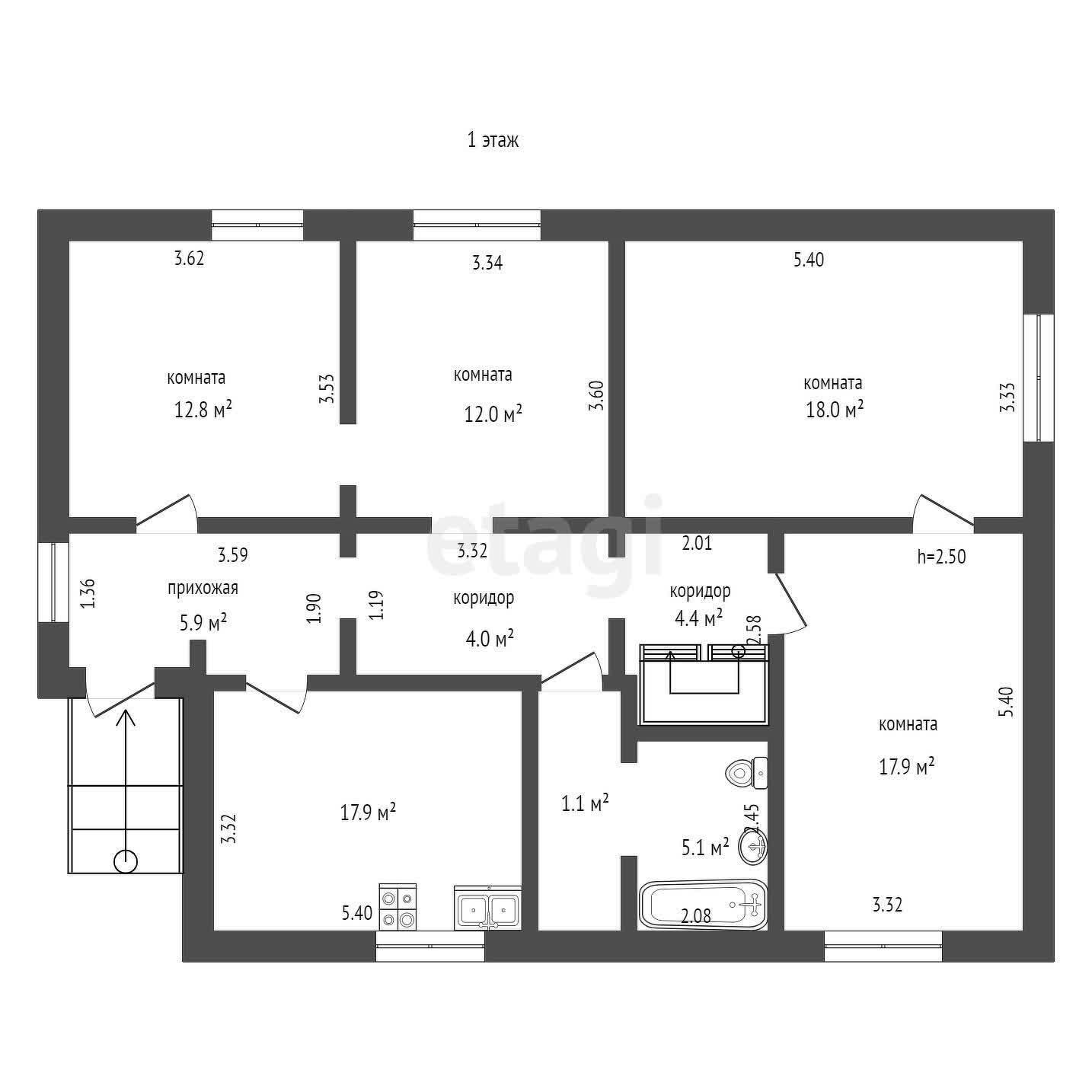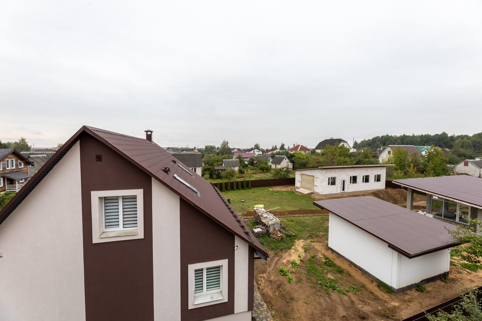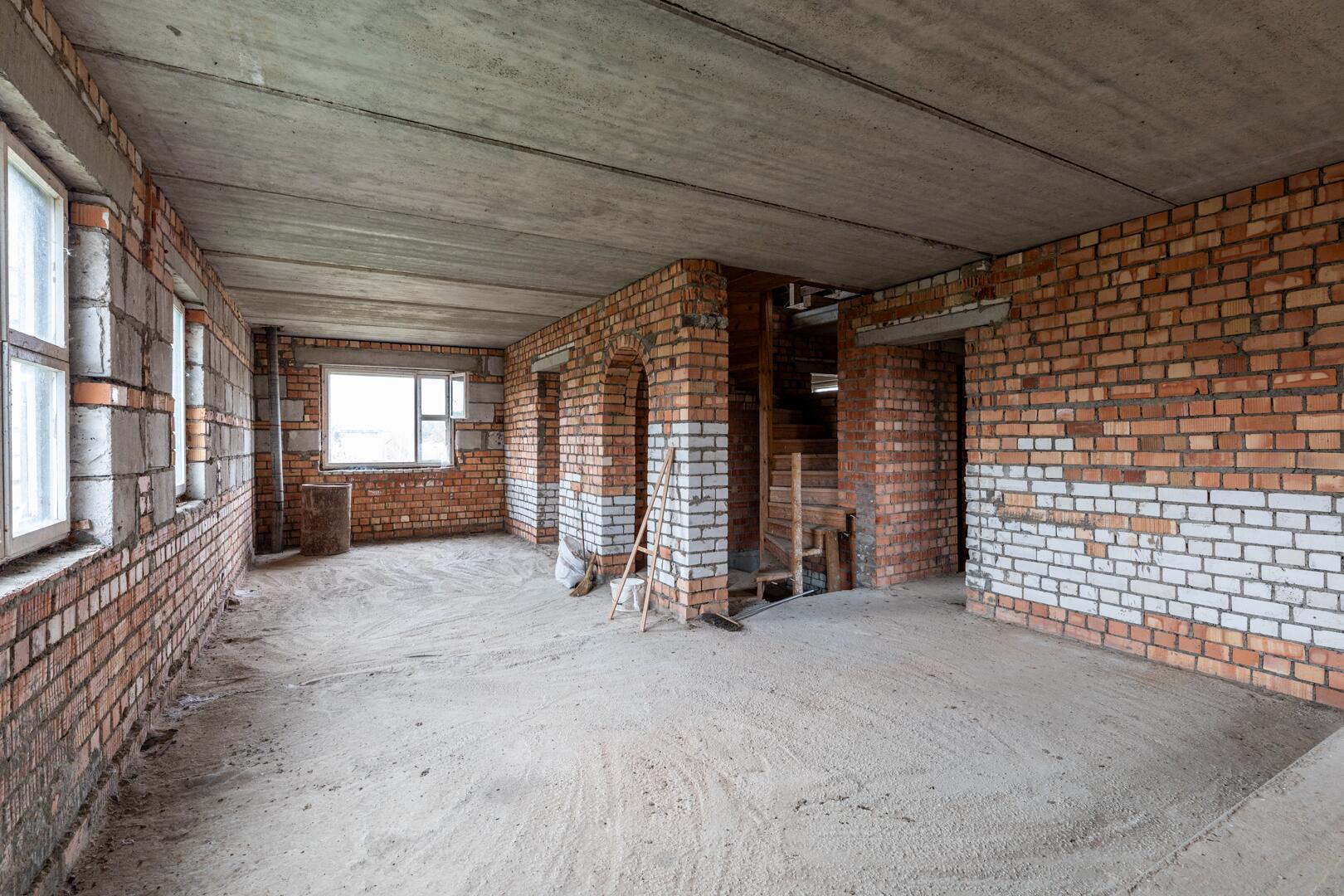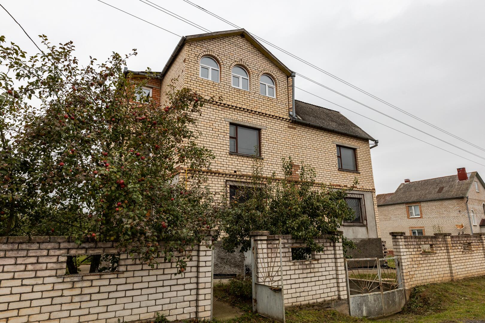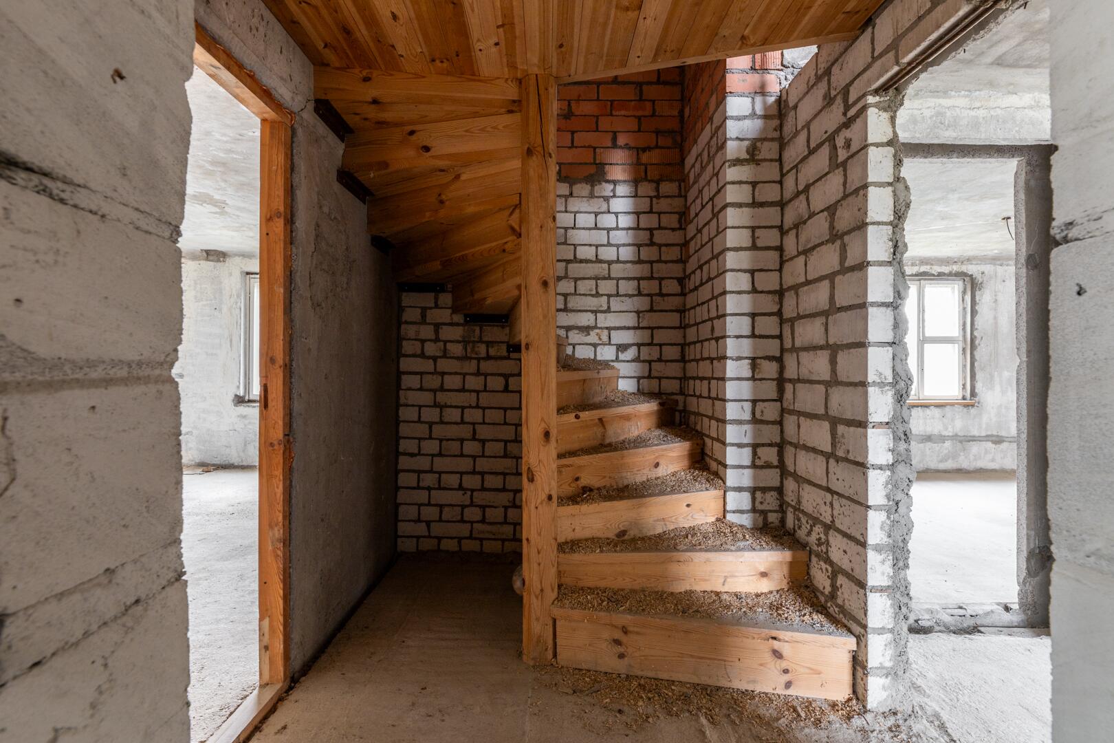 Дом состоит из 3 этажей с подвалом и гаражом. Общая площадь дома 268,4 м2. В доме 8 больших комнат. Фундамент дома построен из железобетонных блоков, стены из кирпича.Перекрытие между этажами – железобетонные плиты (заводские). Лестница деревянная. Электричество введено в дом.