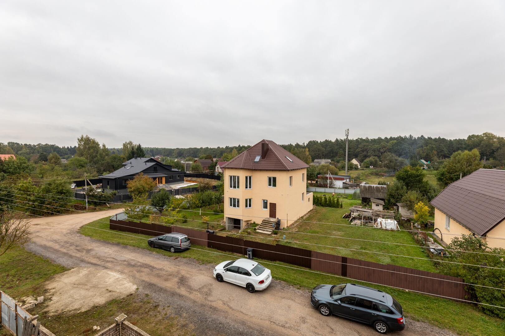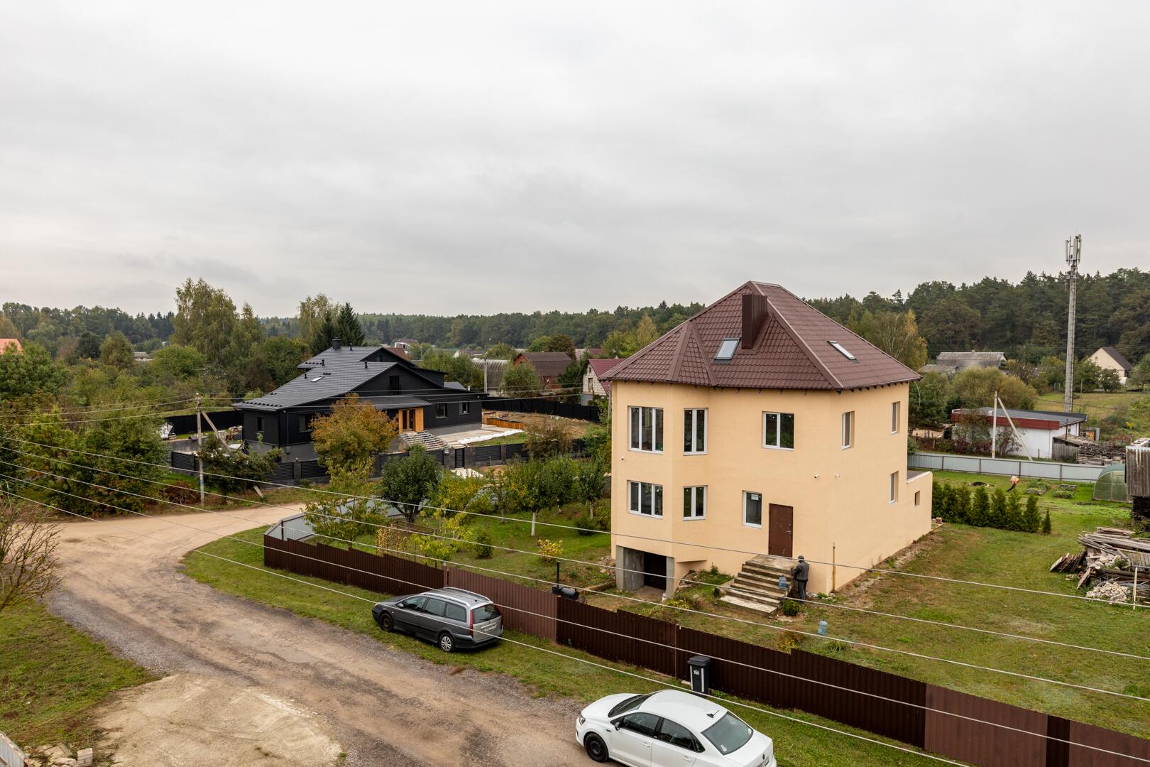 Дом в д. Волковичи в 5 км от Фаниполя, рядом МКАД-2 и остановка маршрутки. В 15 минутах ходьбы станция электрички Волковичи (по расписанию каждый час до ст. Курасовщина, ст. Институт Культуры).
