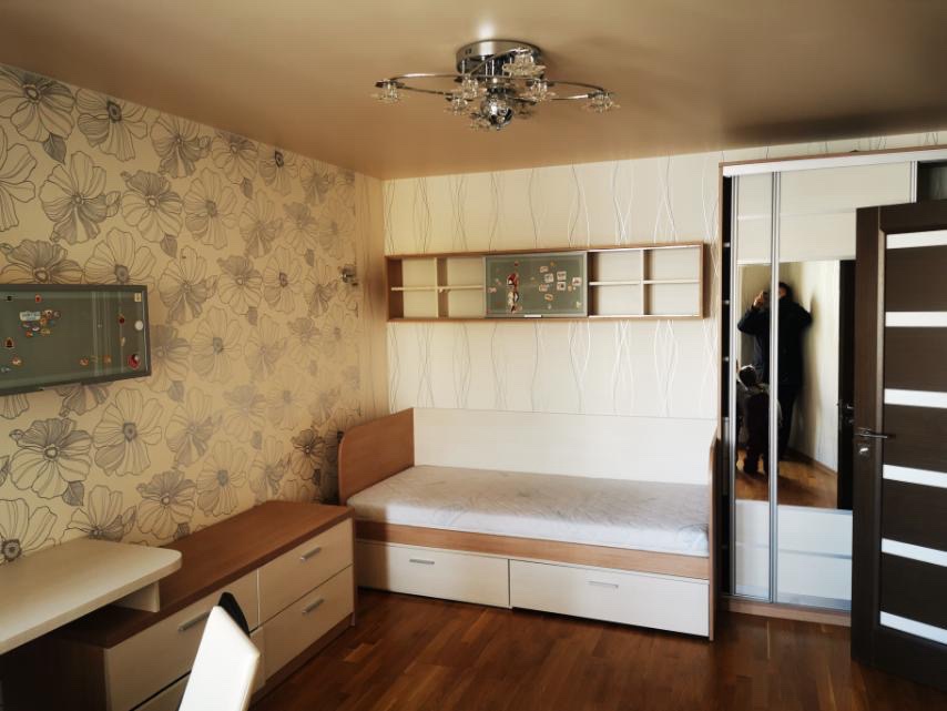 В отделке квартиры использованы качественные строительные материалы, установлены стеклопакеты ПВХ, на полу – паркетная доска, плитка ( на кухне- подогрев пола). Входная дверь металлическая.