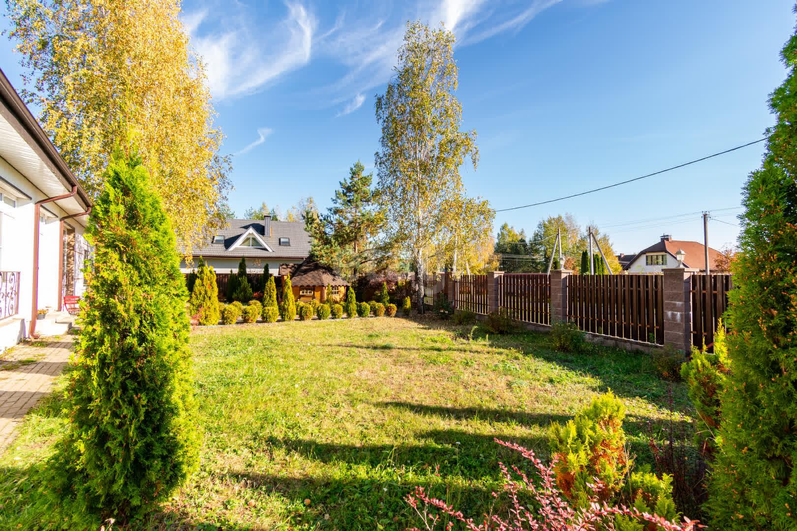 На участке сделан ландшафтный дизайн, ограждение участка по периметру с откатными воротами, стоянка перед домом, есть место зоны барбекю